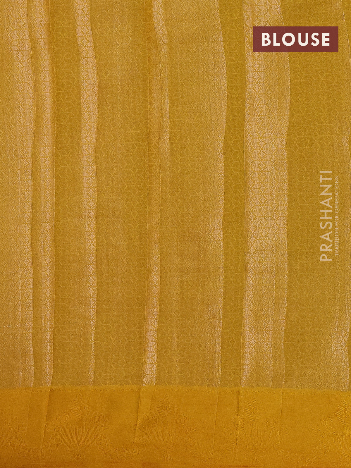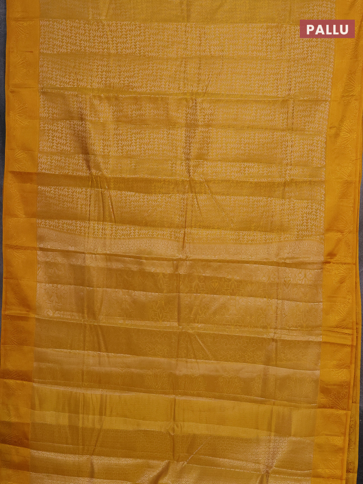 Semi raw silk saree mango yellow with allover zari weaves and simple border