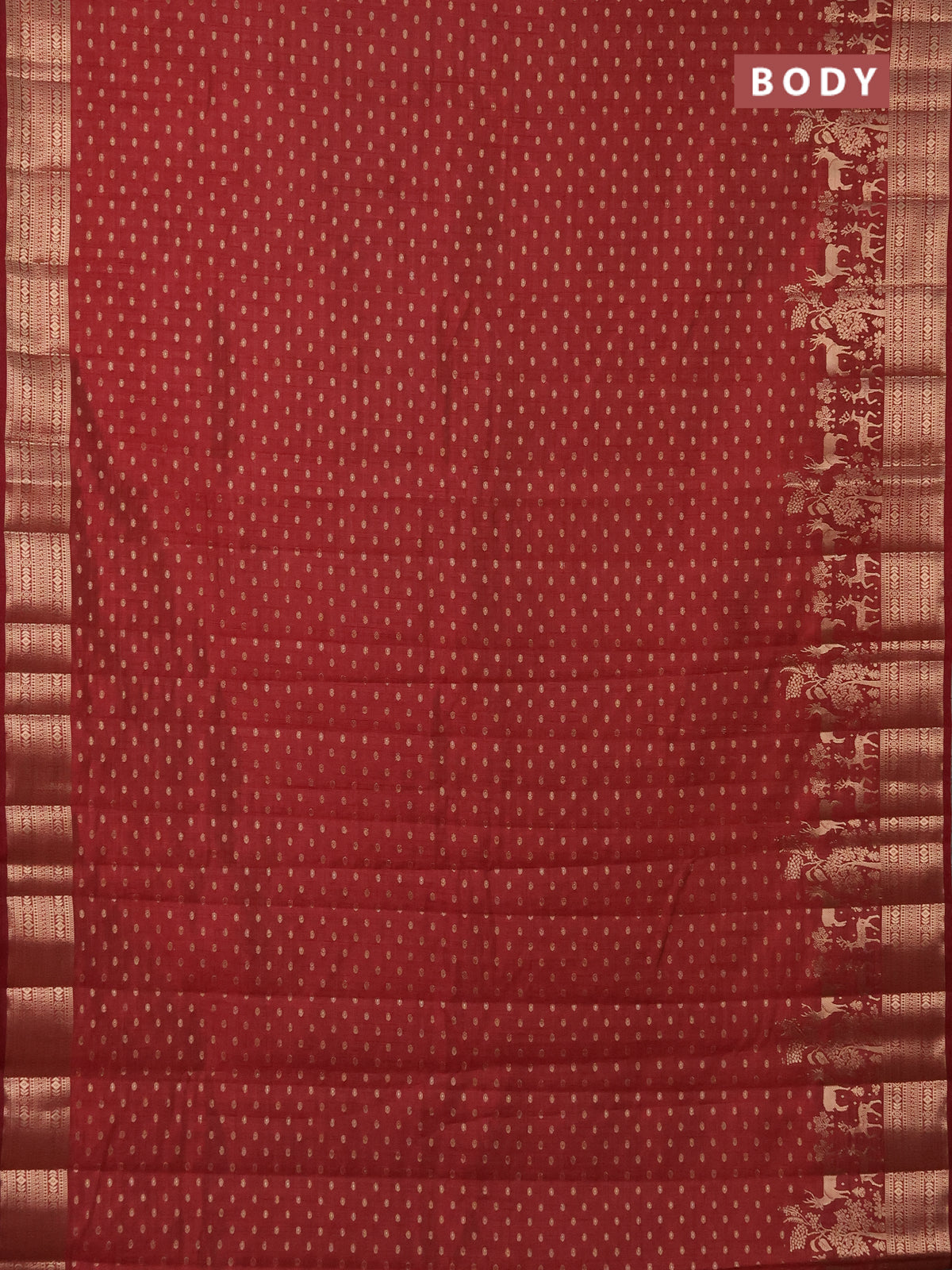 Semi raw silk saree maroon with allover zari woven 1000 buttas and rich zari woven border