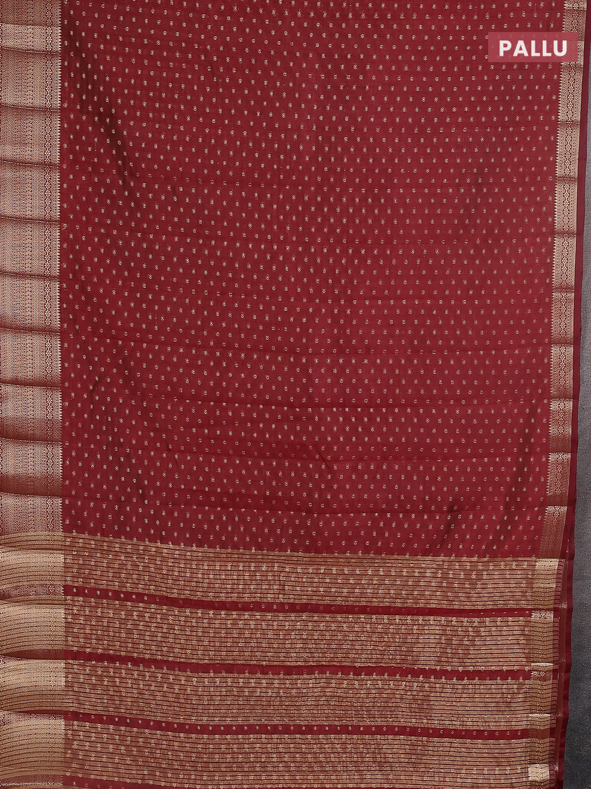Semi raw silk saree maroon with allover zari woven 1000 buttas and rich zari woven border