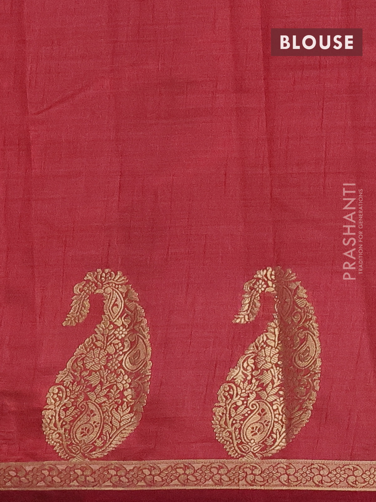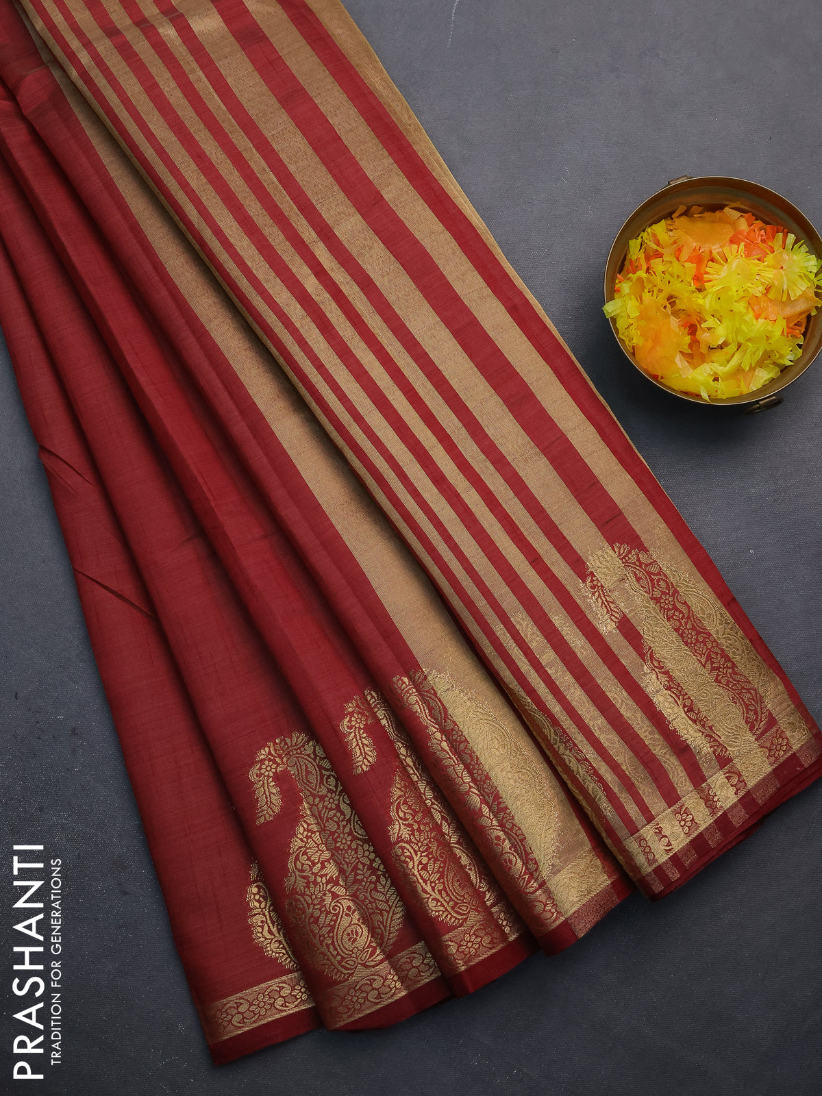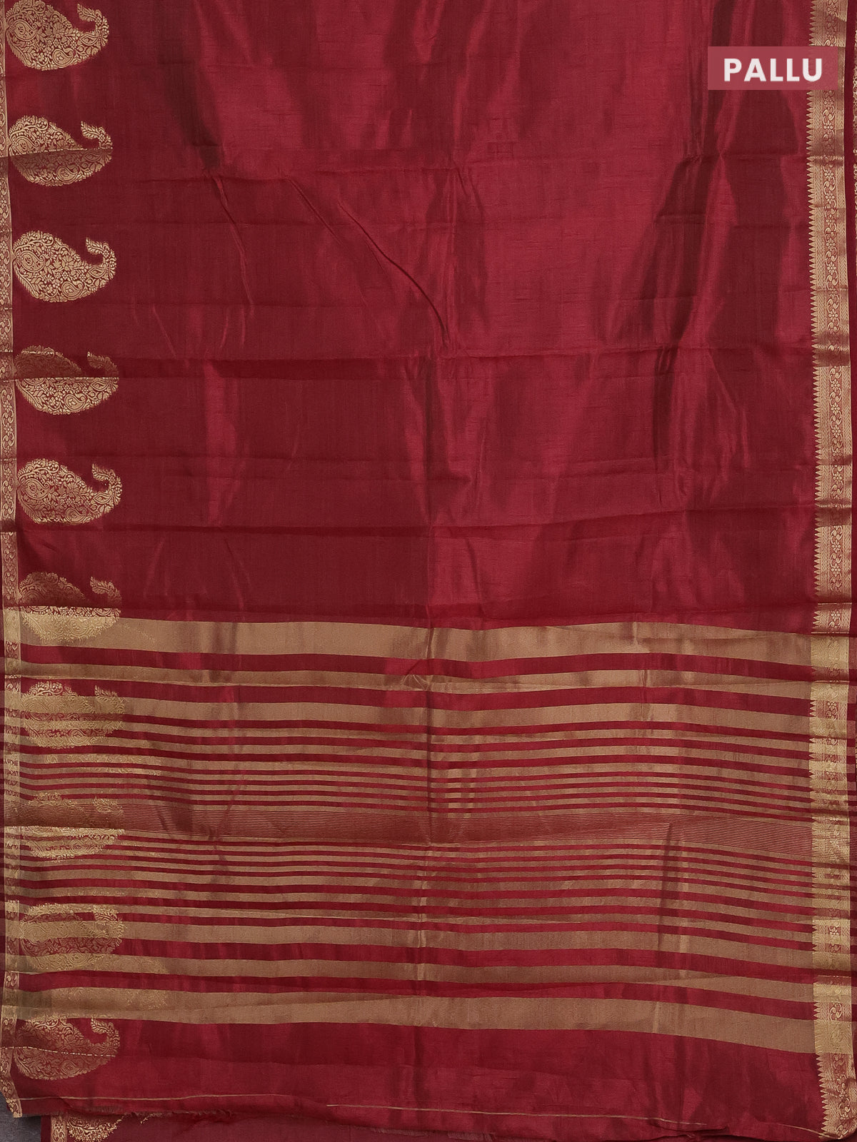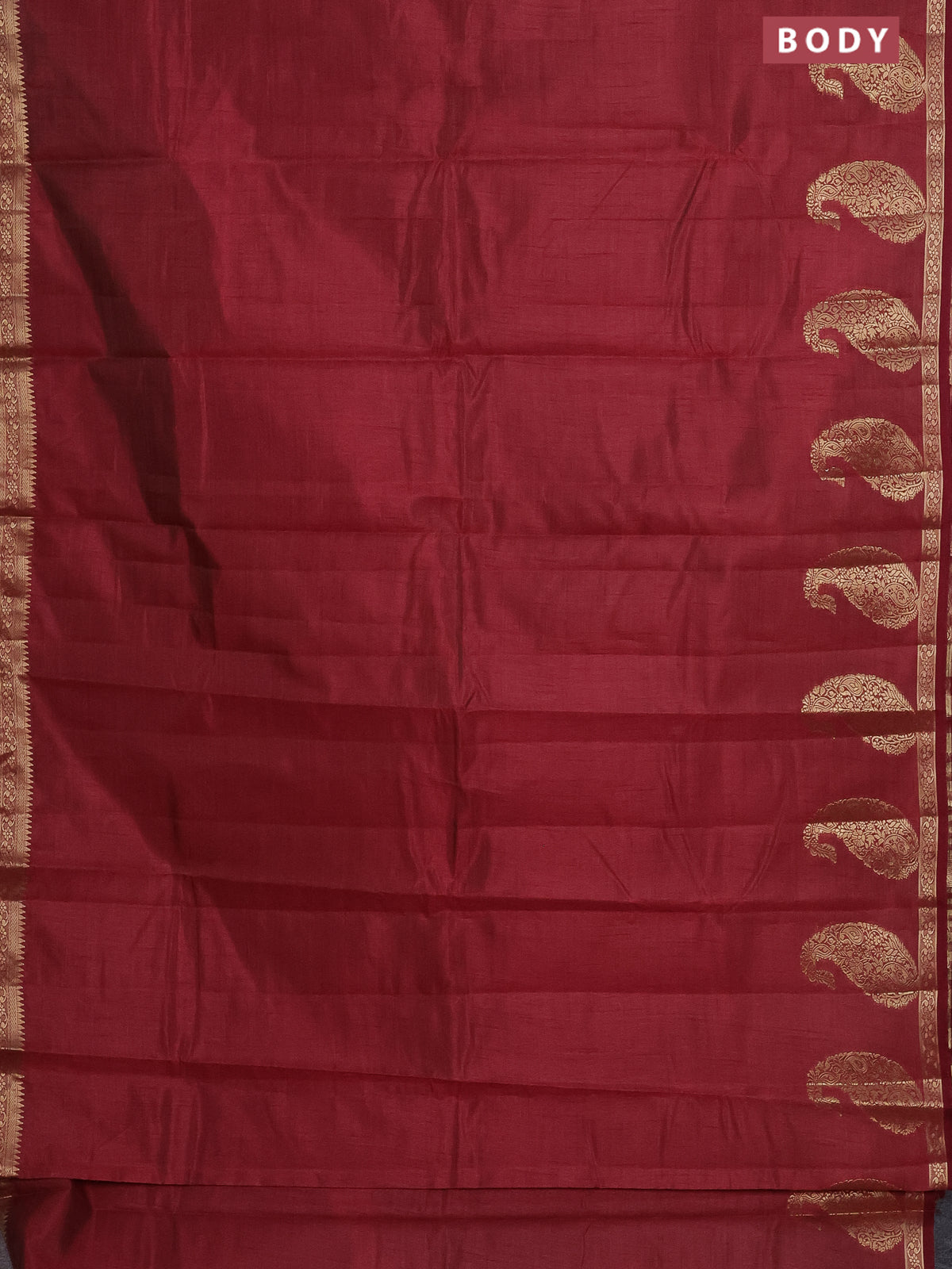 Semi raw silk saree maroon with plain body and paisley design zari woven butta border