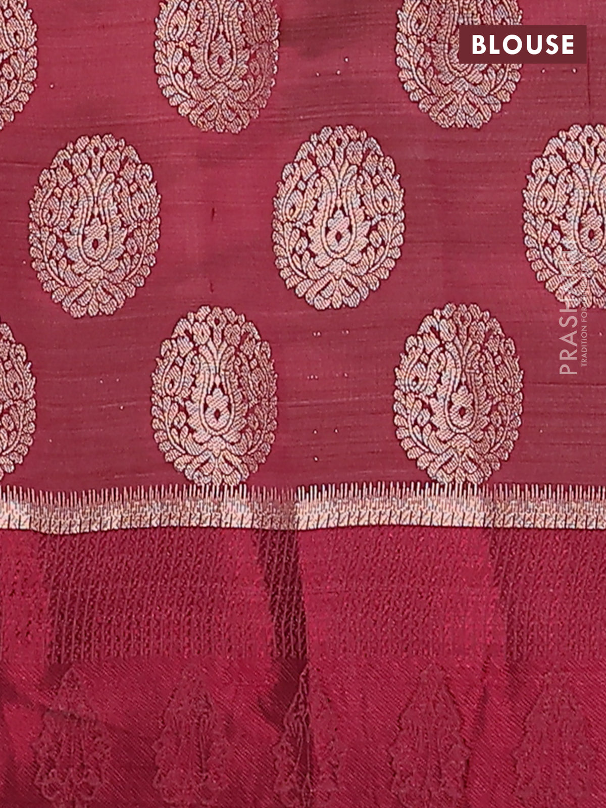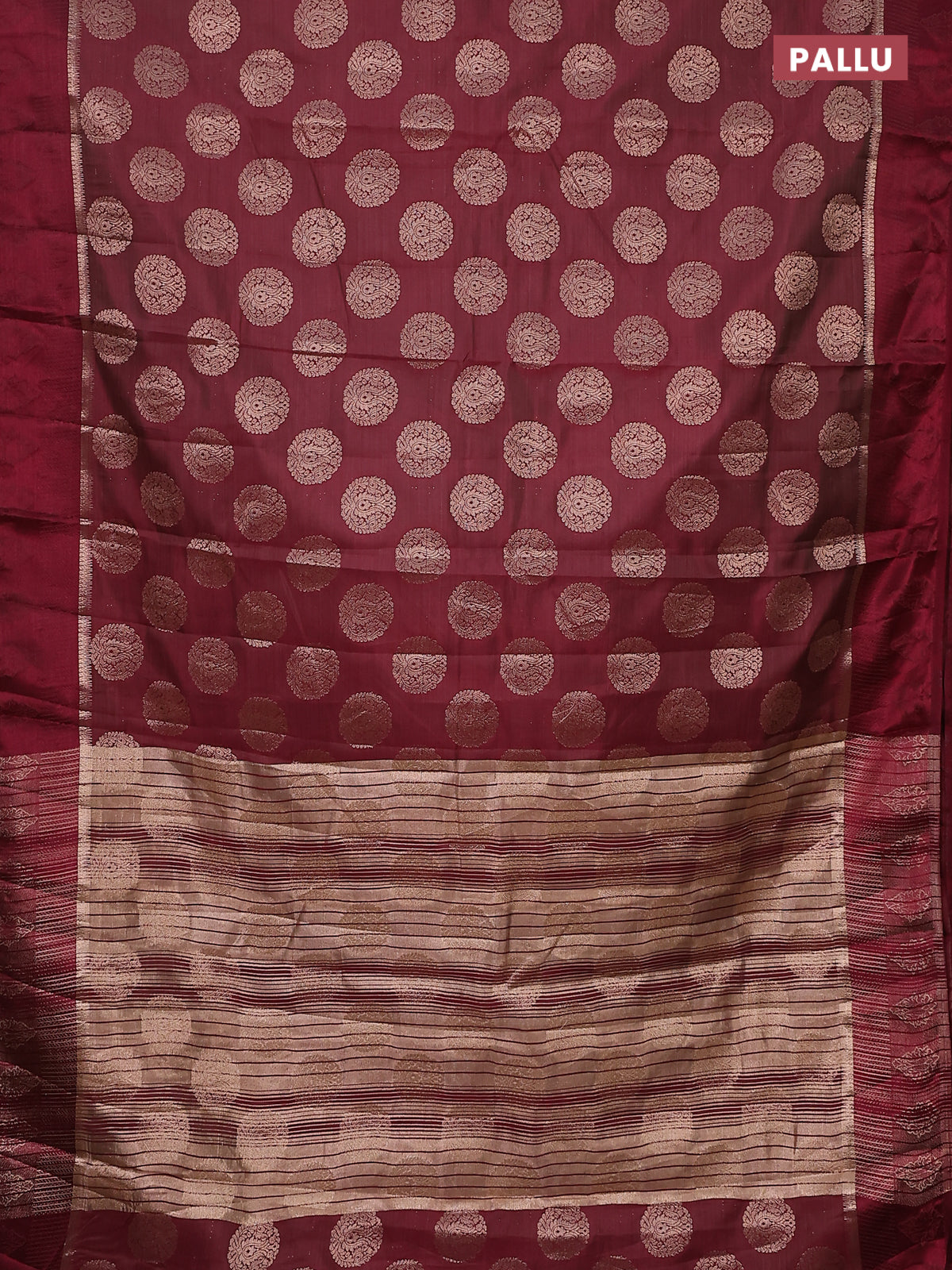 Semi raw silk saree maroon with zari woven buttas and zari woven simple border