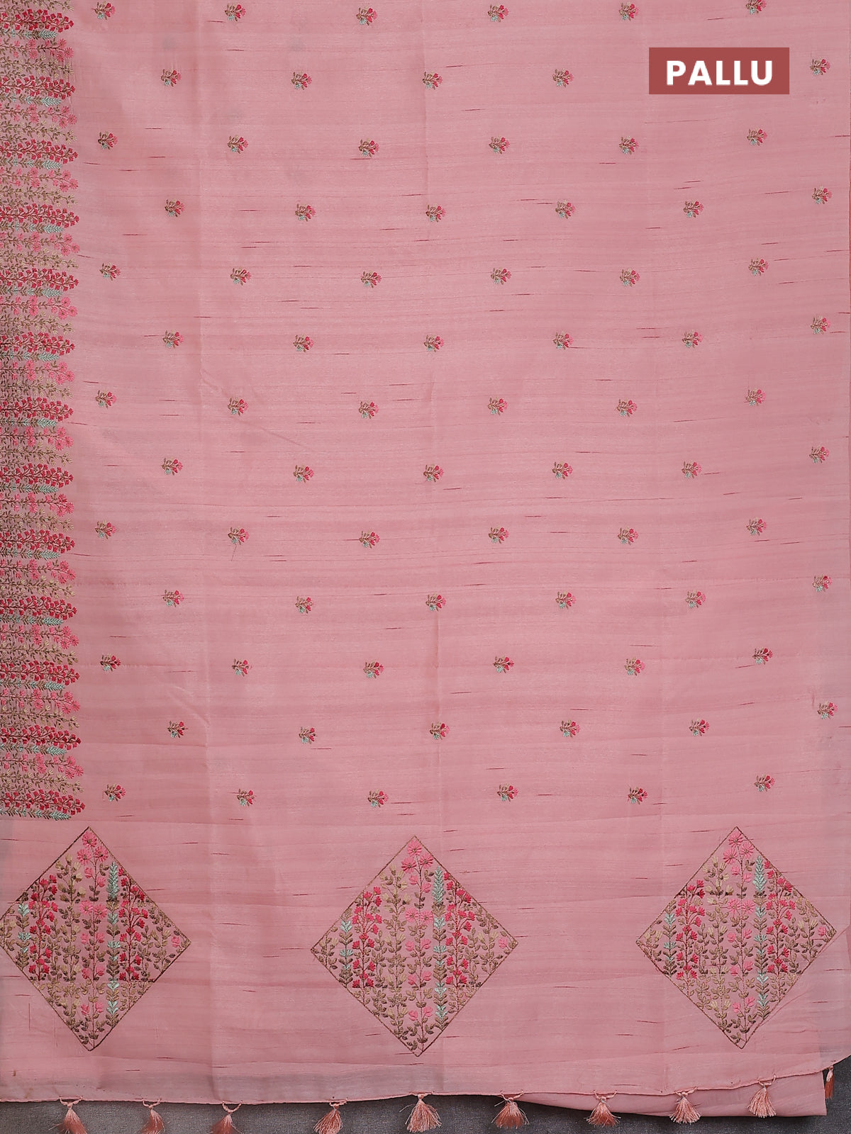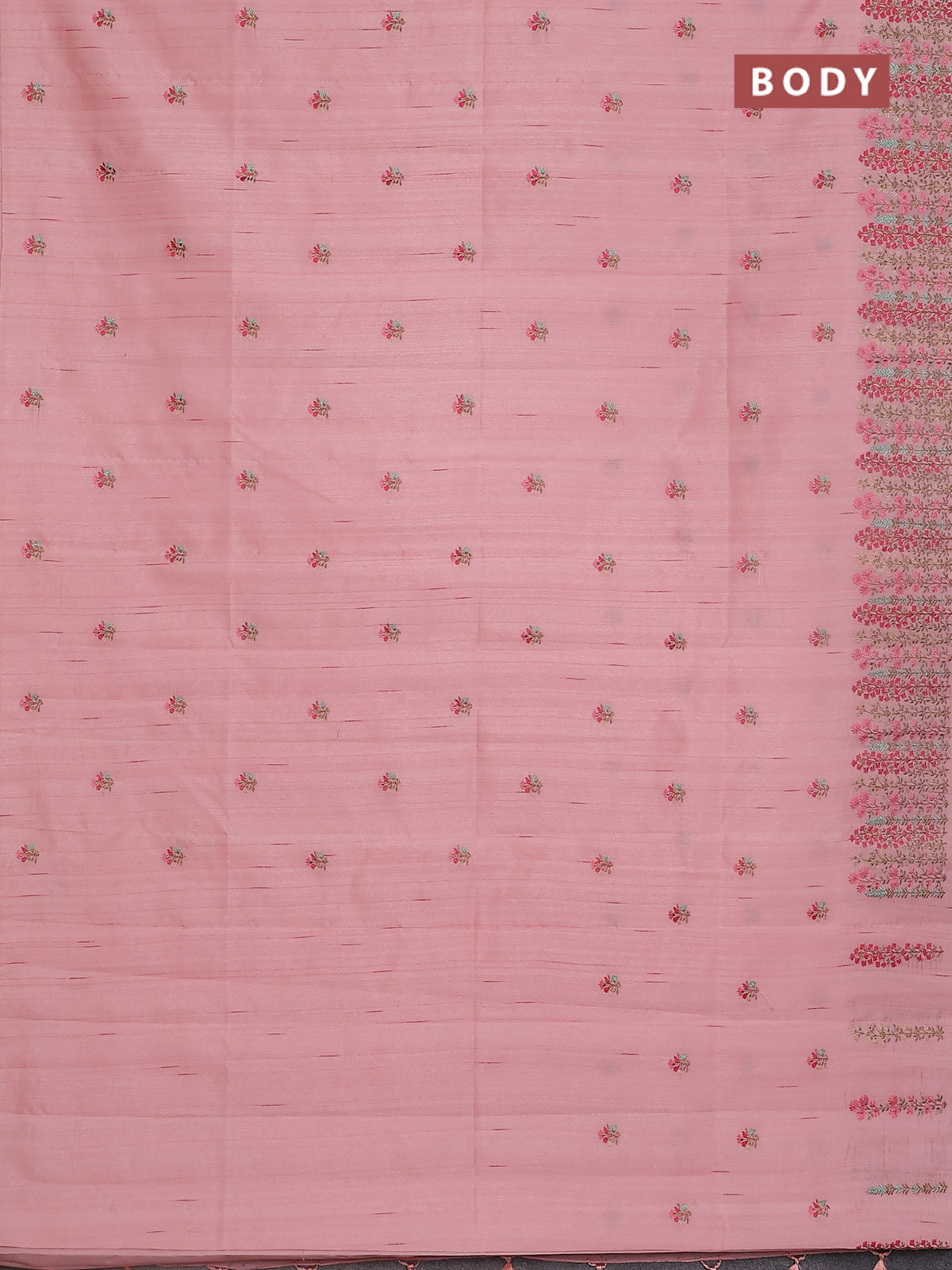 Semi raw silk saree mild peach with embroidery buttas and floral embroidery border