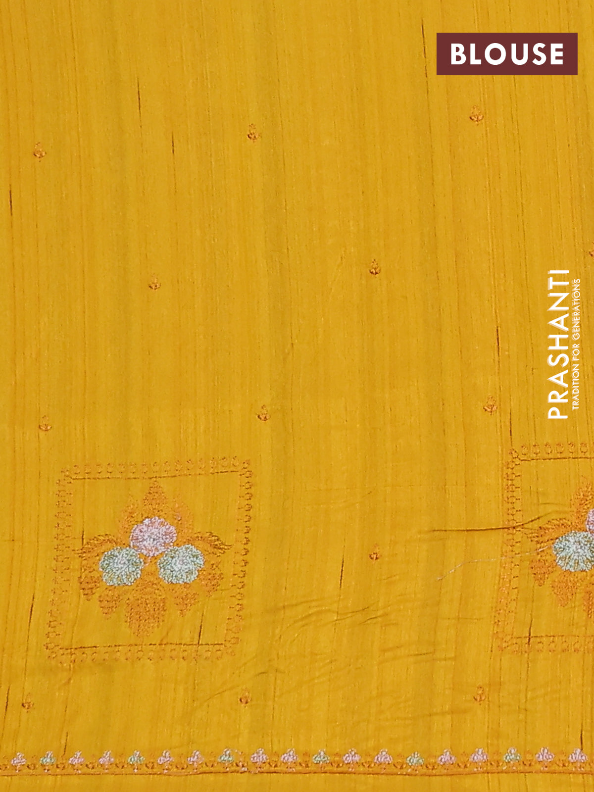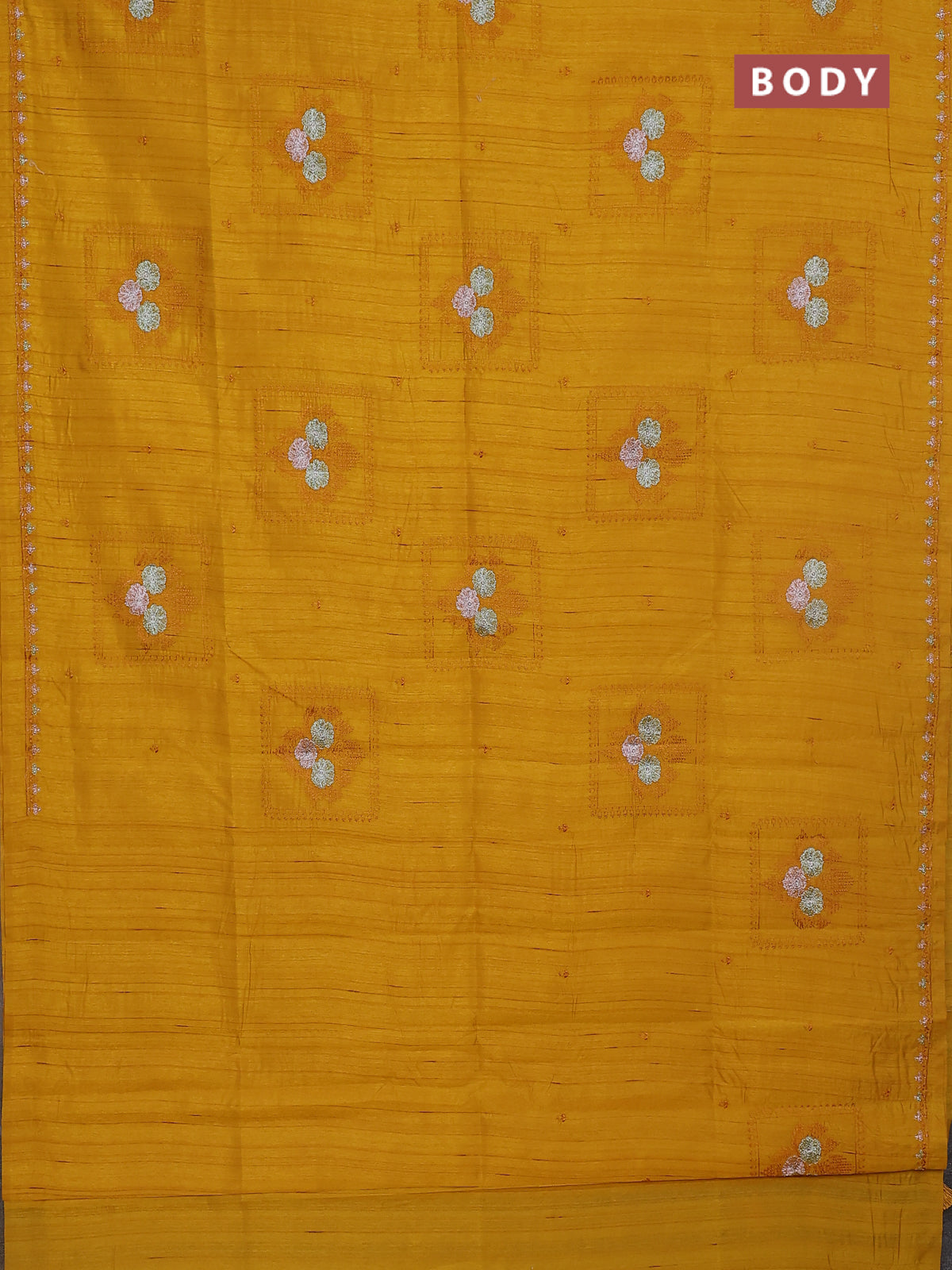 Semi raw silk saree mustard yellow with allover embroidery buttas and embroidery border