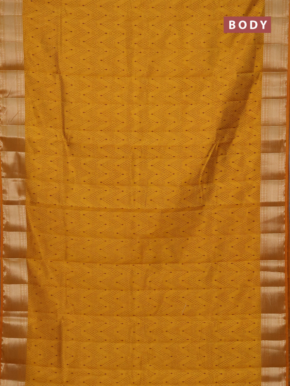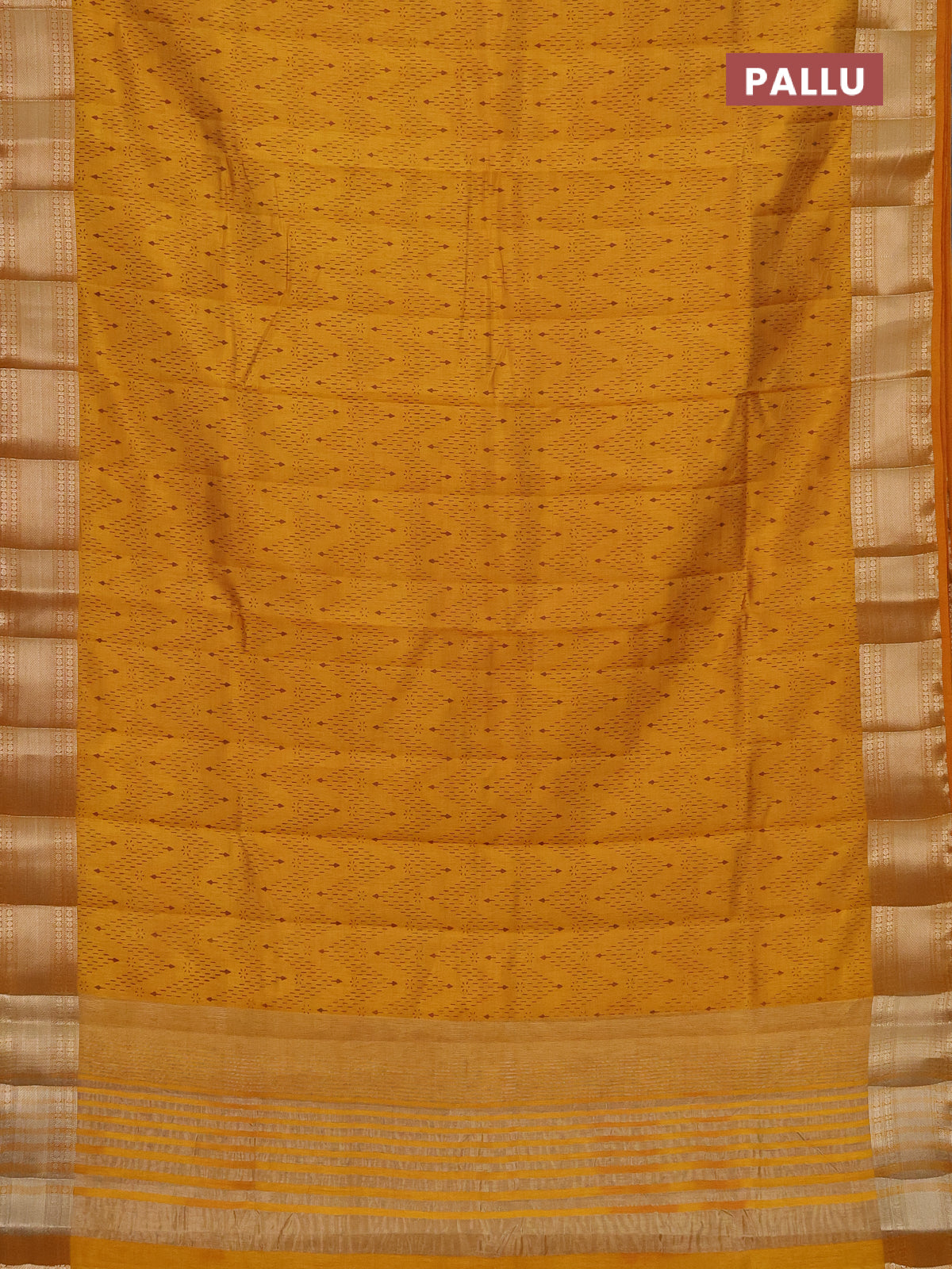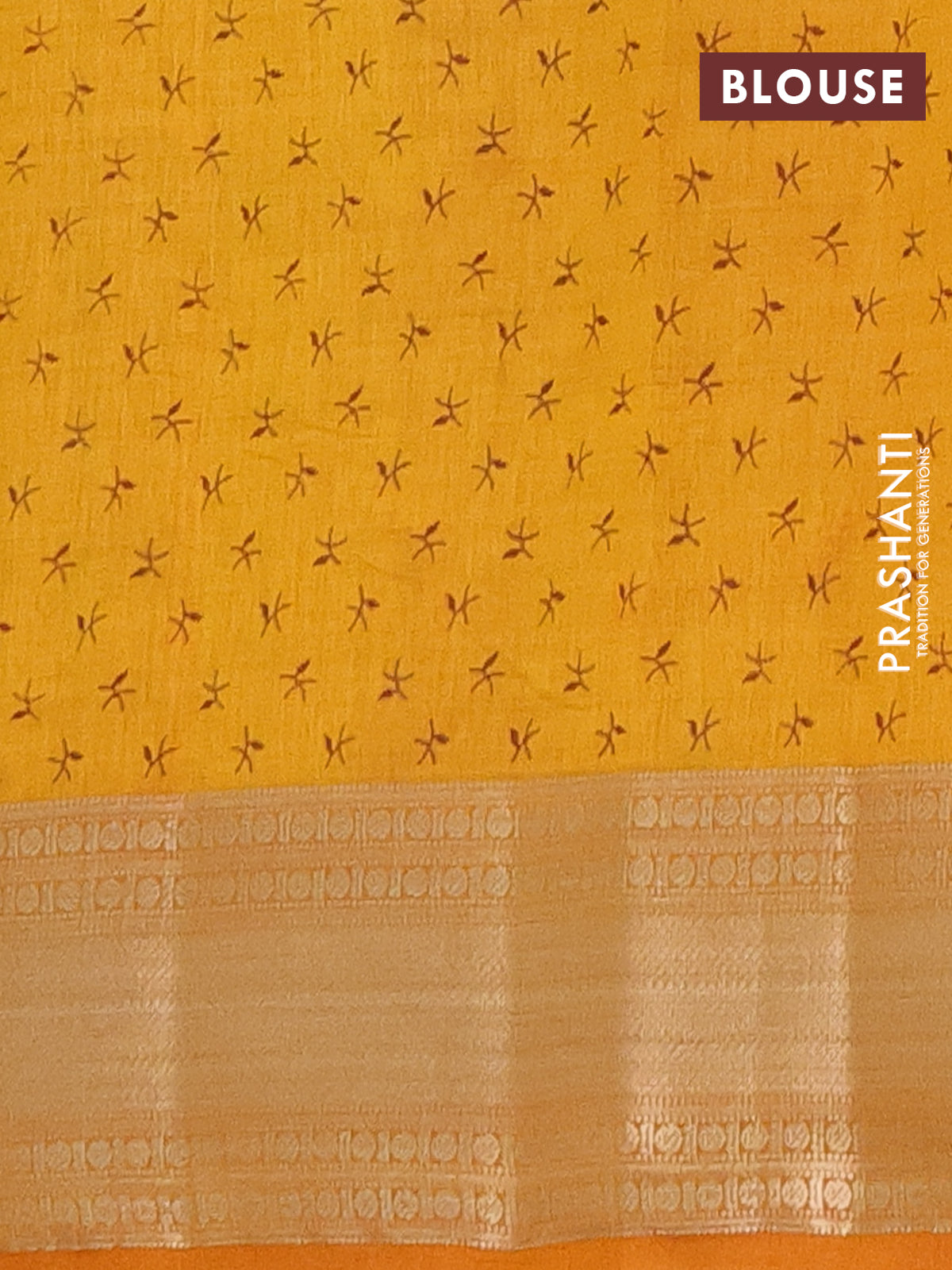 Semi raw silk saree mustard yellow with allover prints and zari woven border