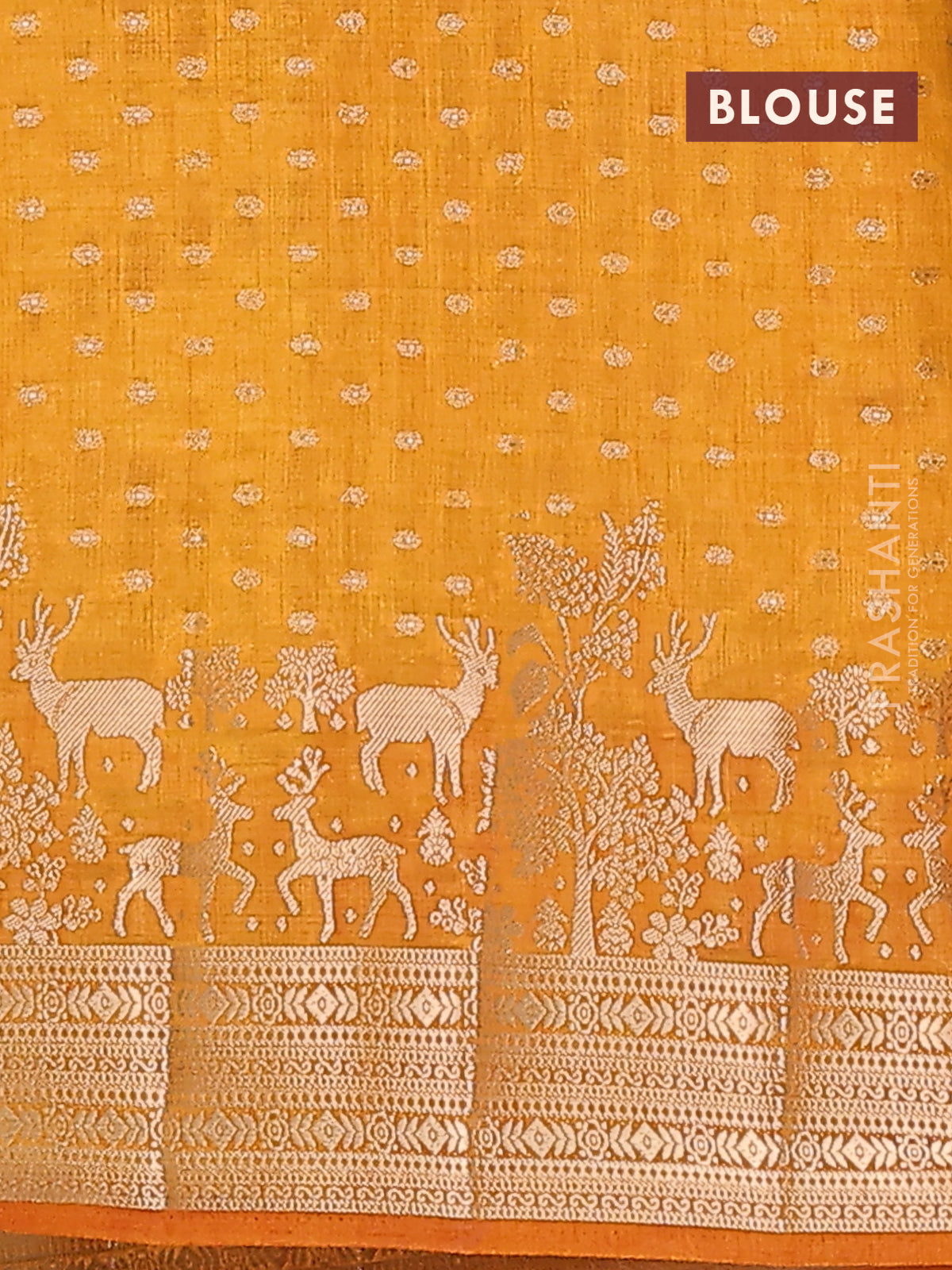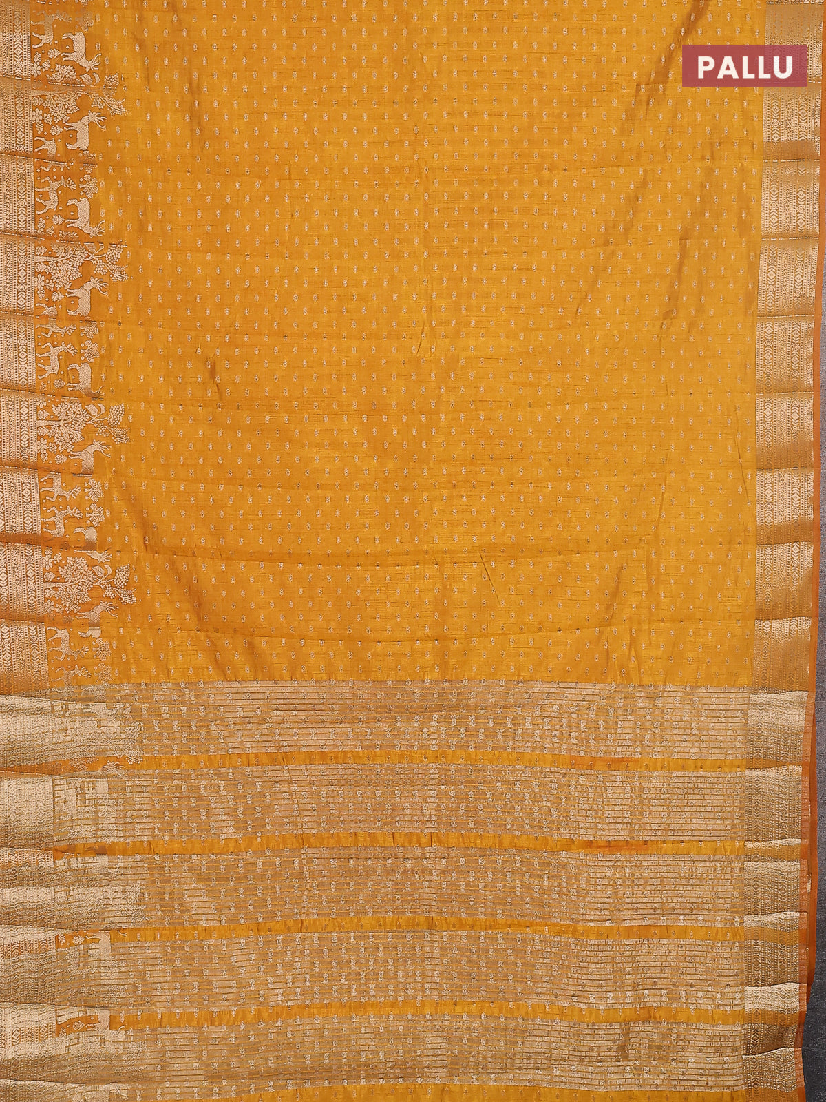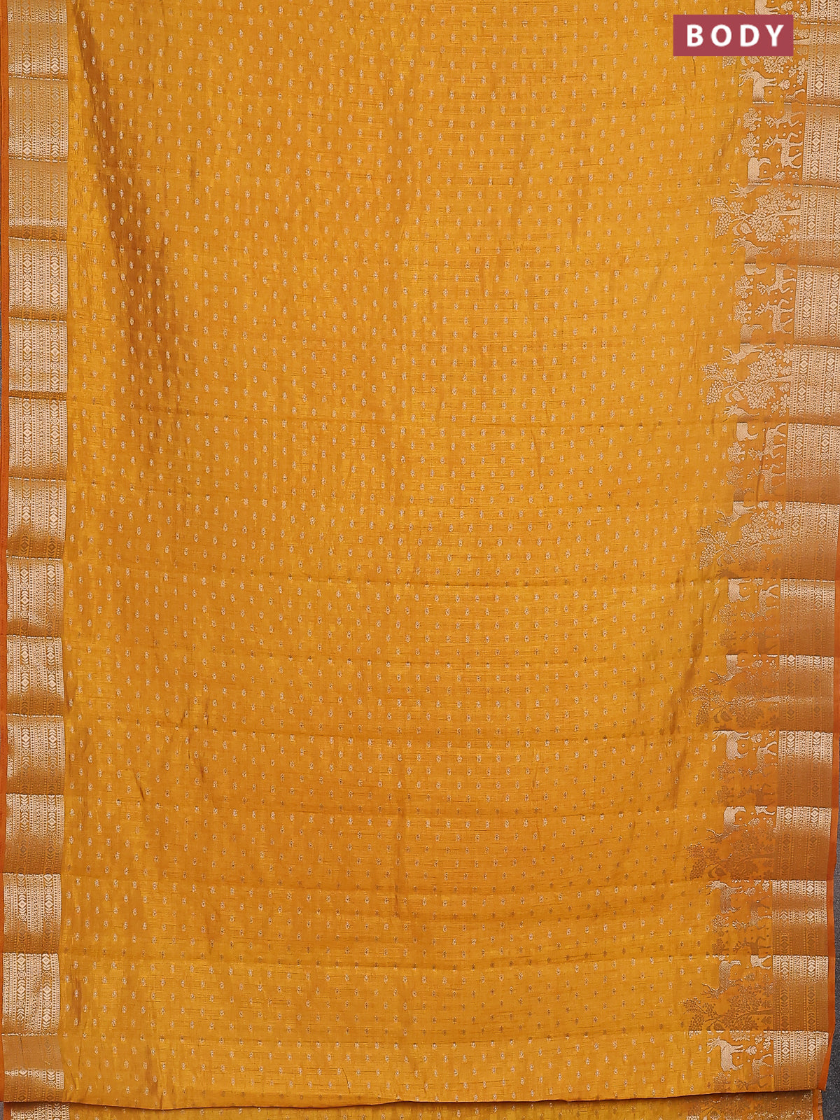 Semi raw silk saree mustard yellow with allover zari woven 1000 buttas and rich zari woven border