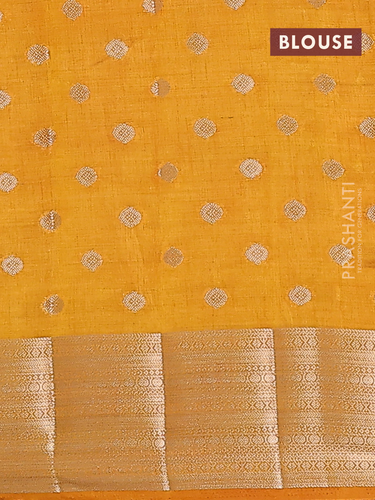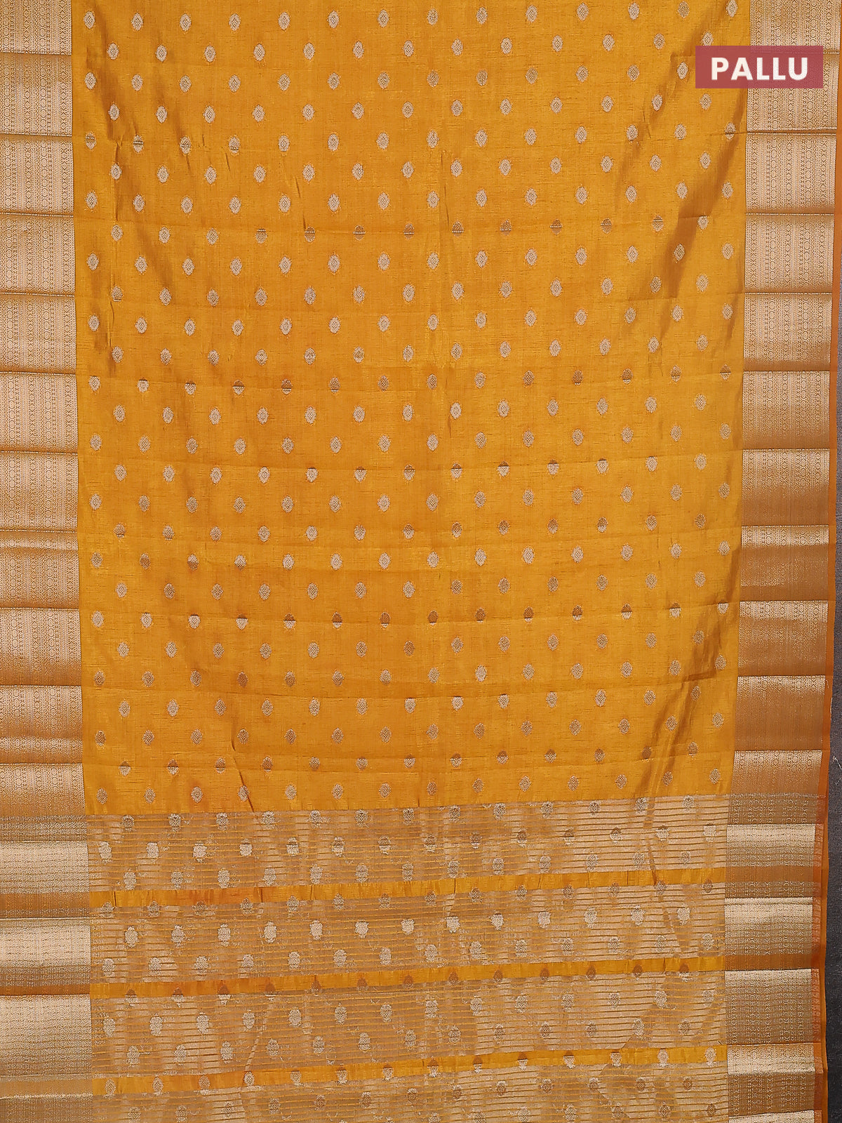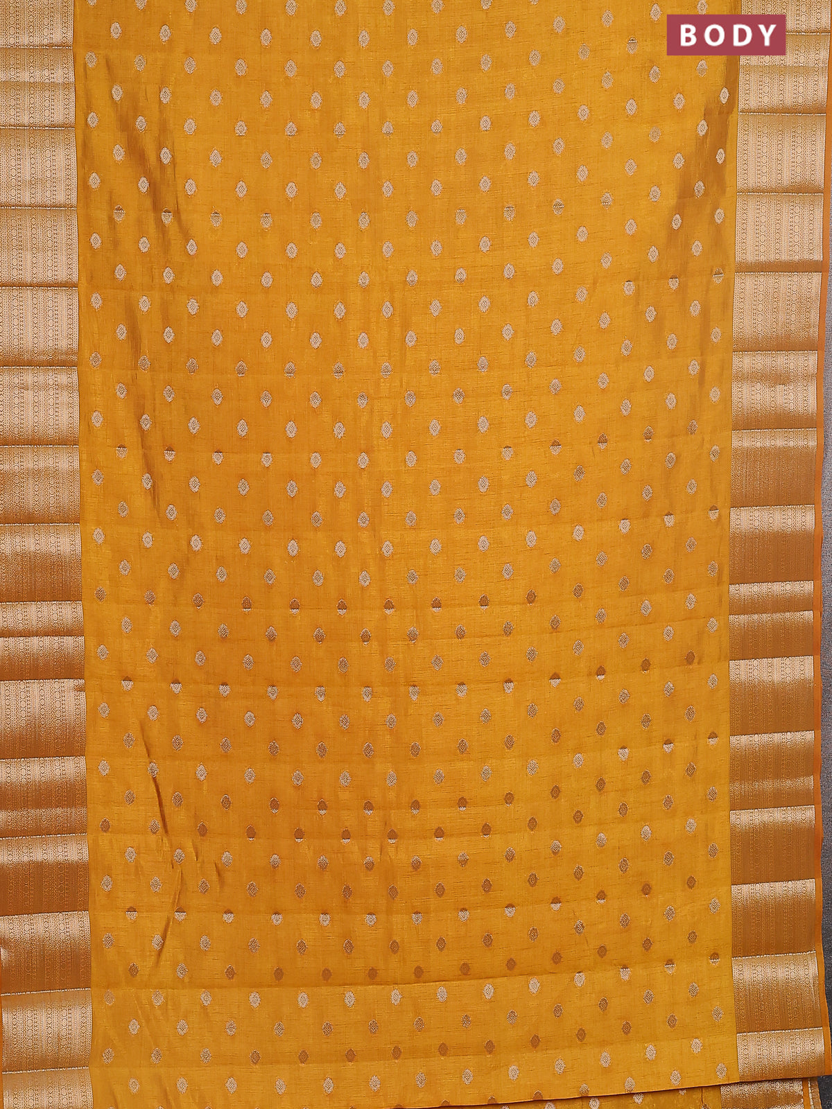 Semi raw silk saree mustard yellow with allover zari woven 1000 buttas and zari woven border