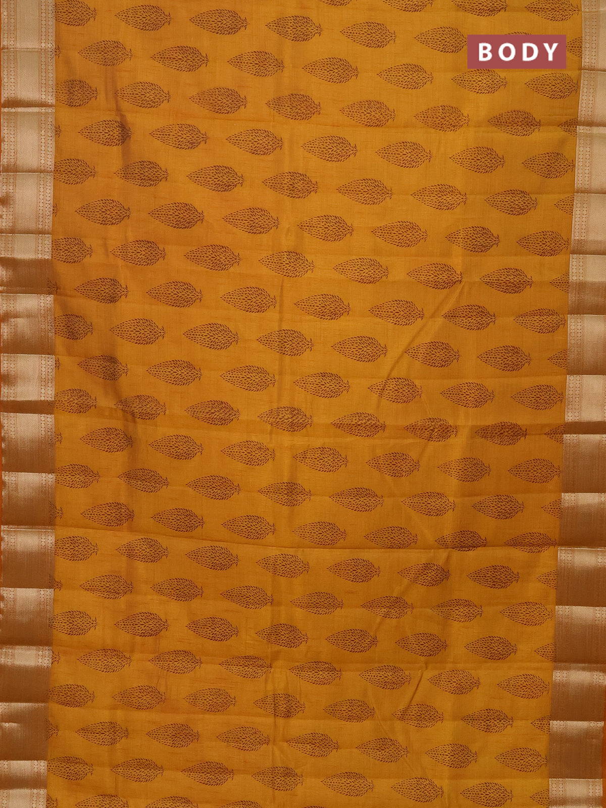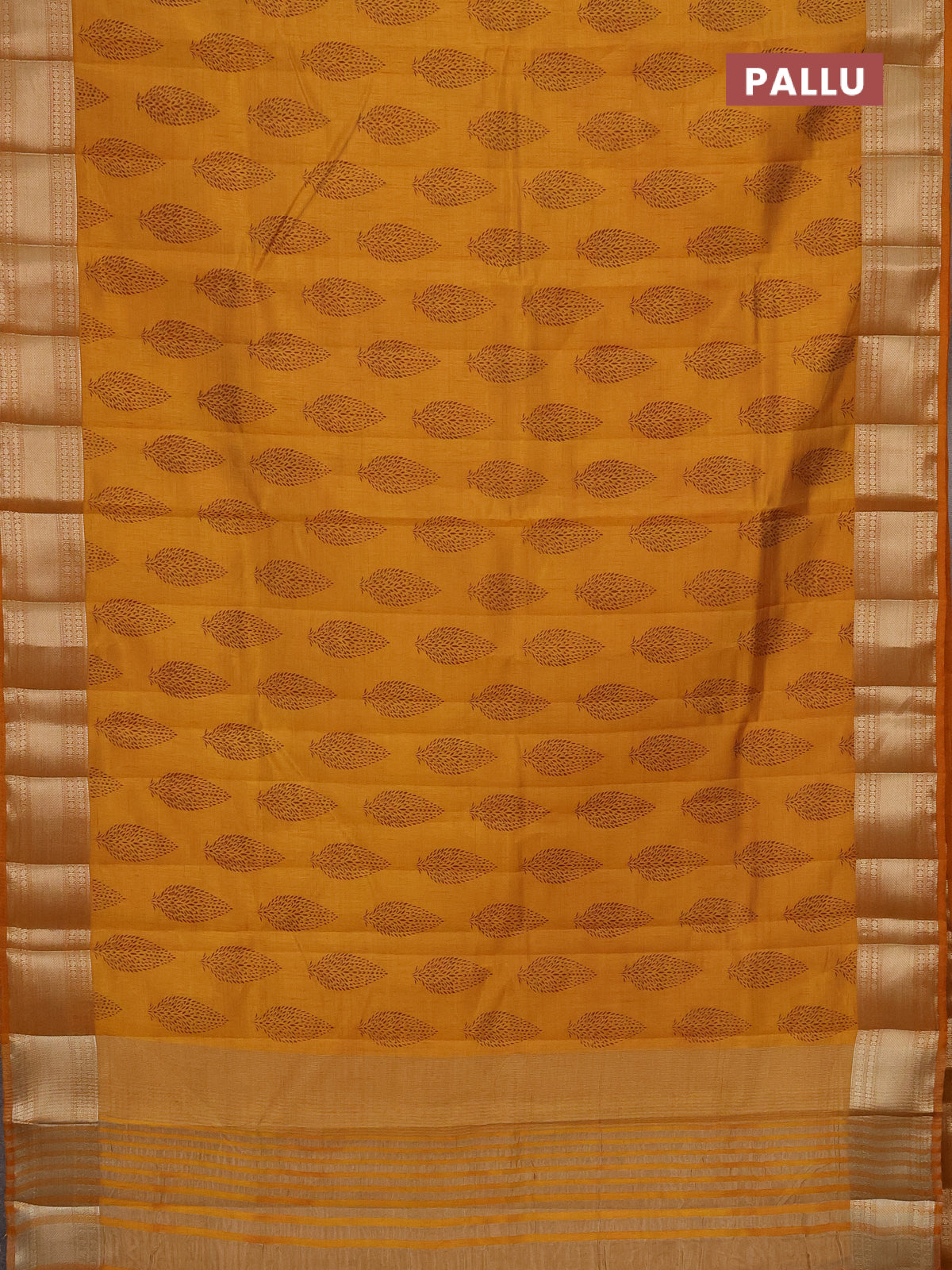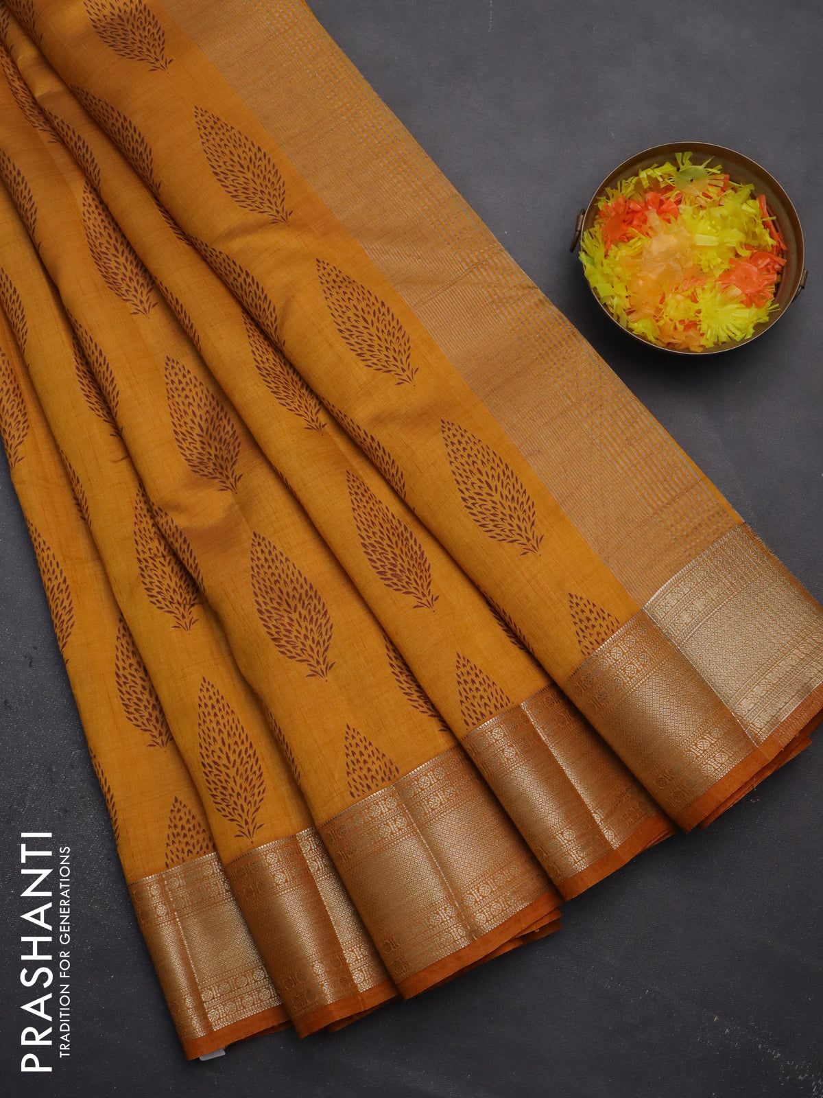 Semi raw silk saree mustard yellow with butta prints and zari woven border