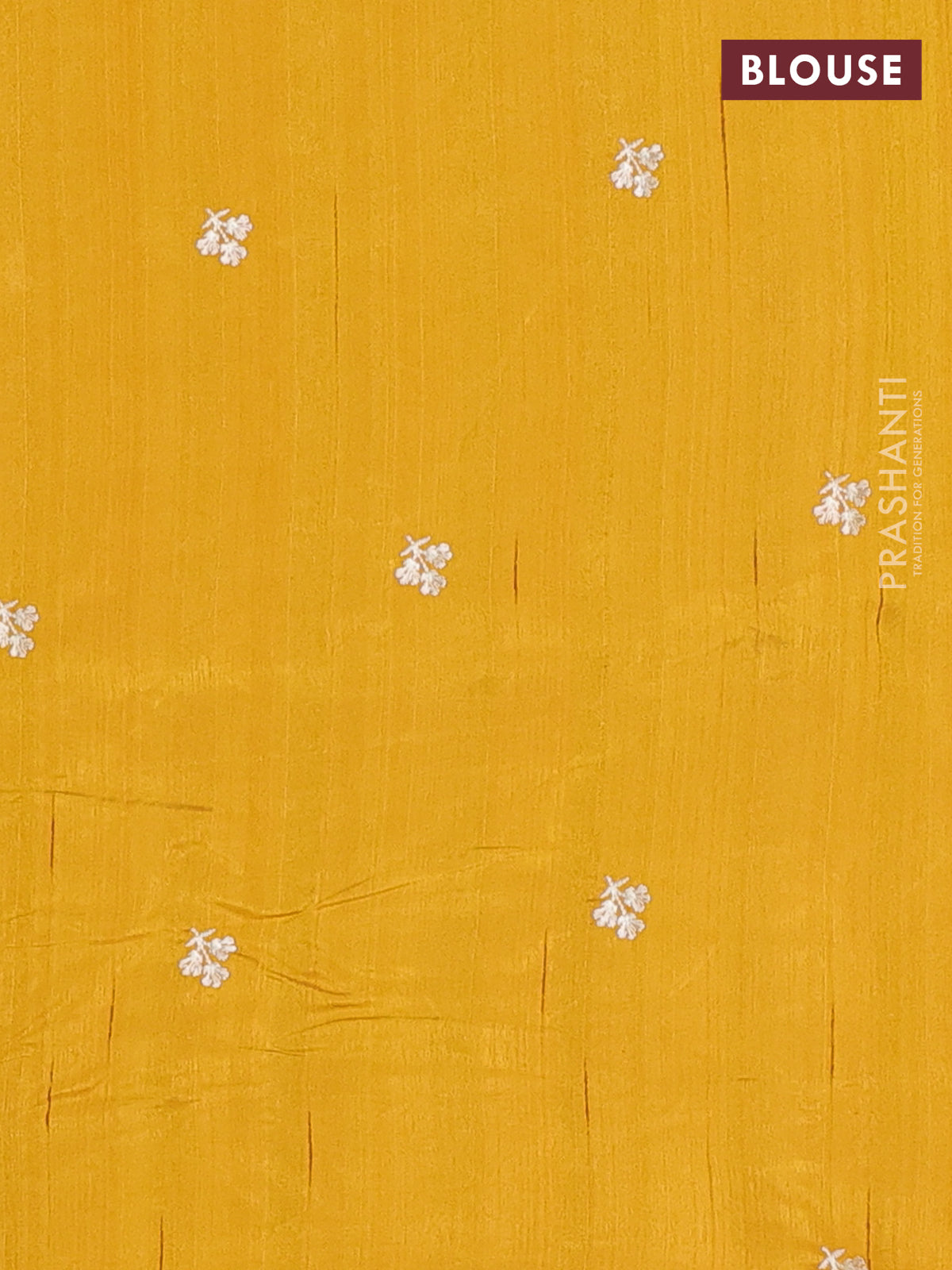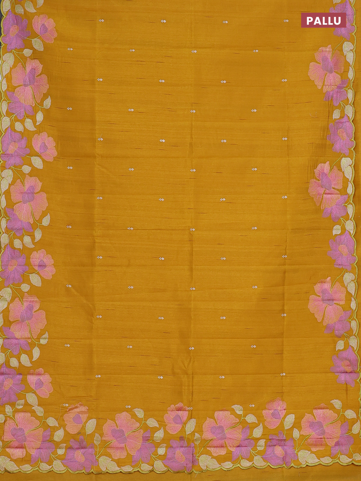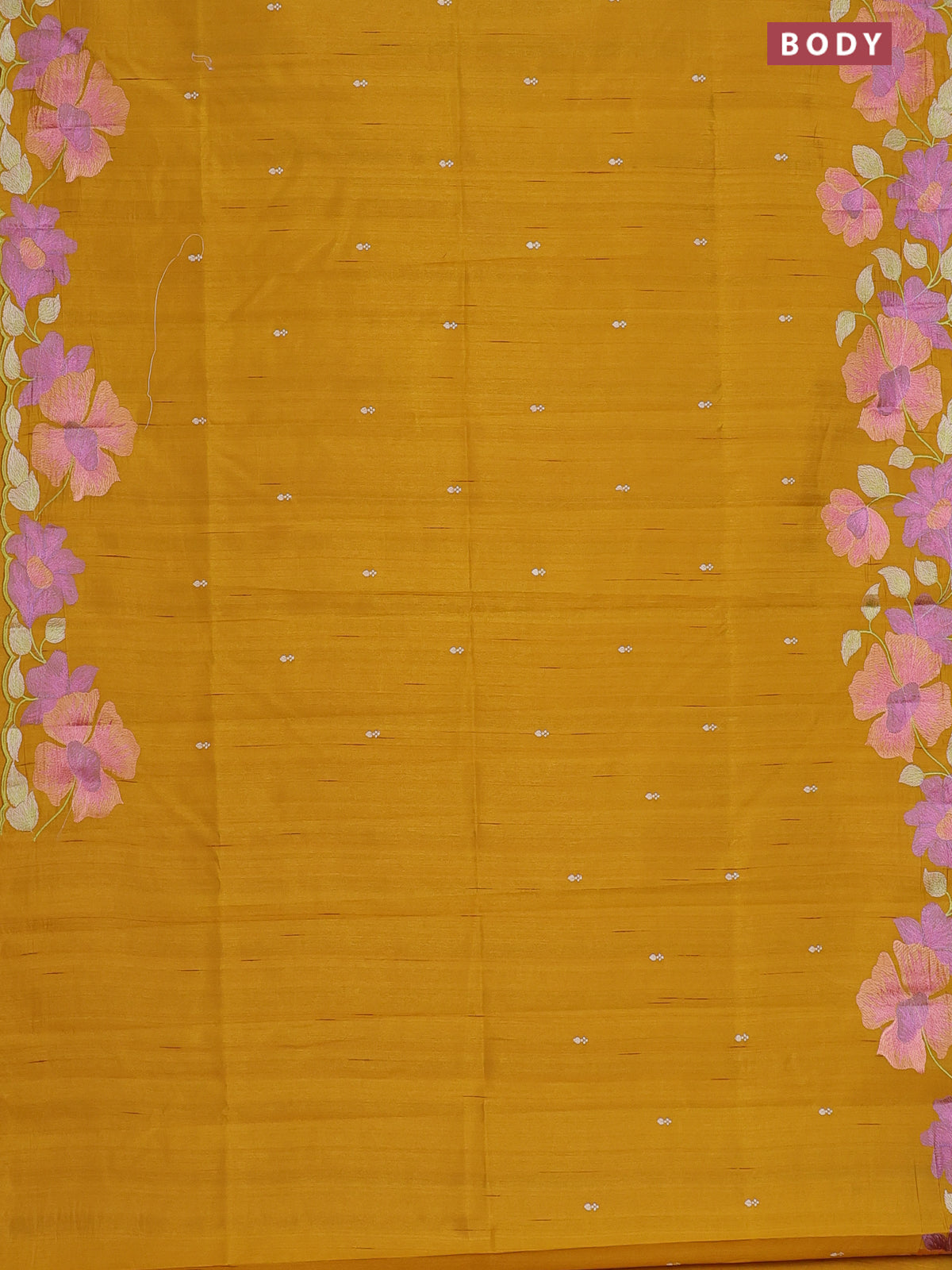 Semi raw silk saree mustard yellow with embroidery work buttas and floral embroidery border