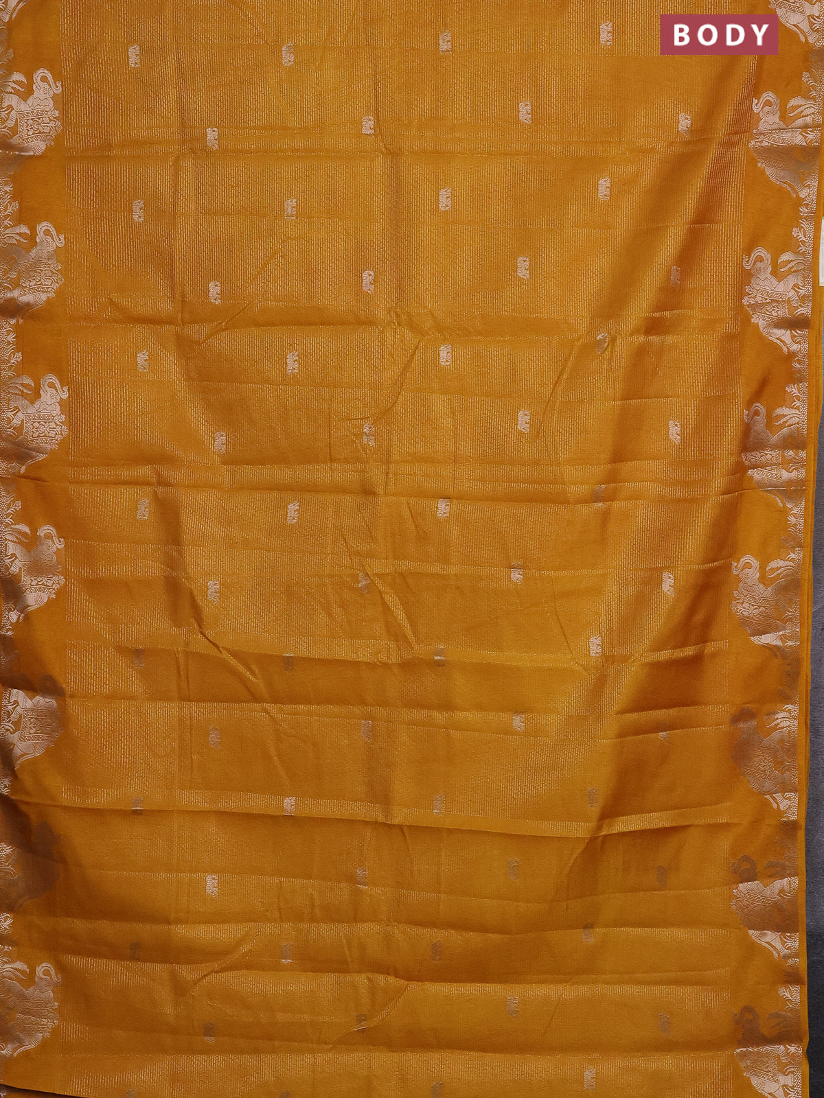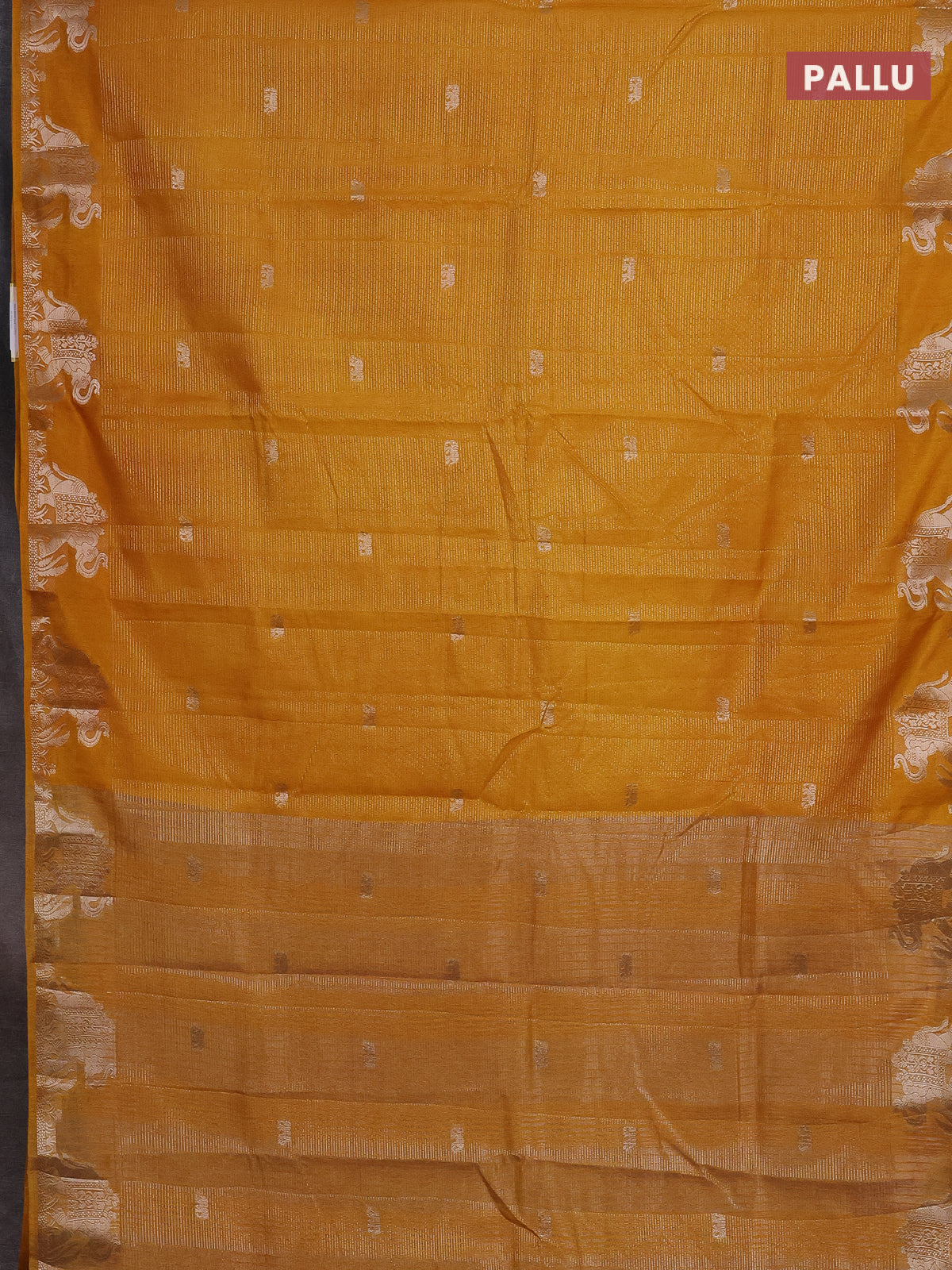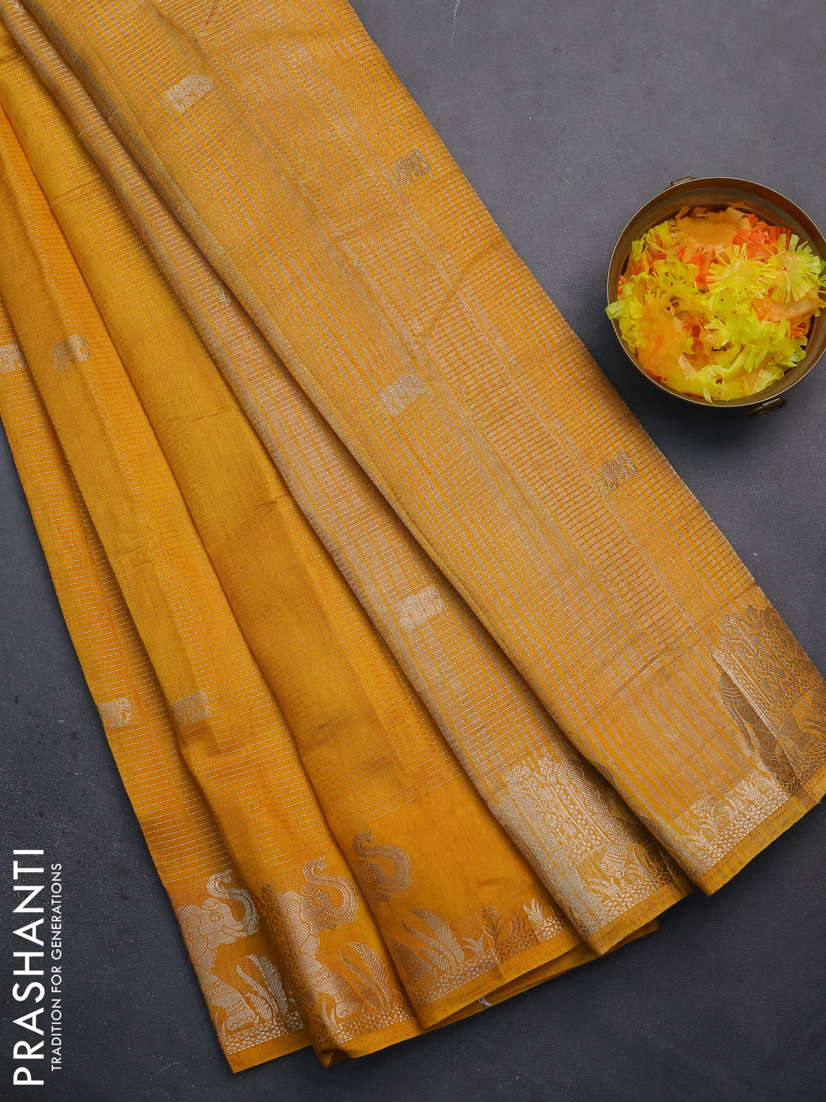 Semi raw silk saree mustard yellow with zari weaves & elephant buttas and elephant design zari woven border