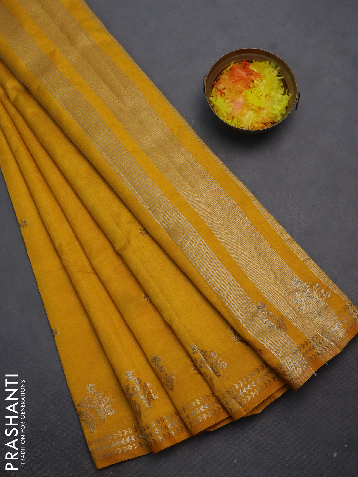 Semi raw silk saree mustard yellow with zari woven buttas and zari woven border