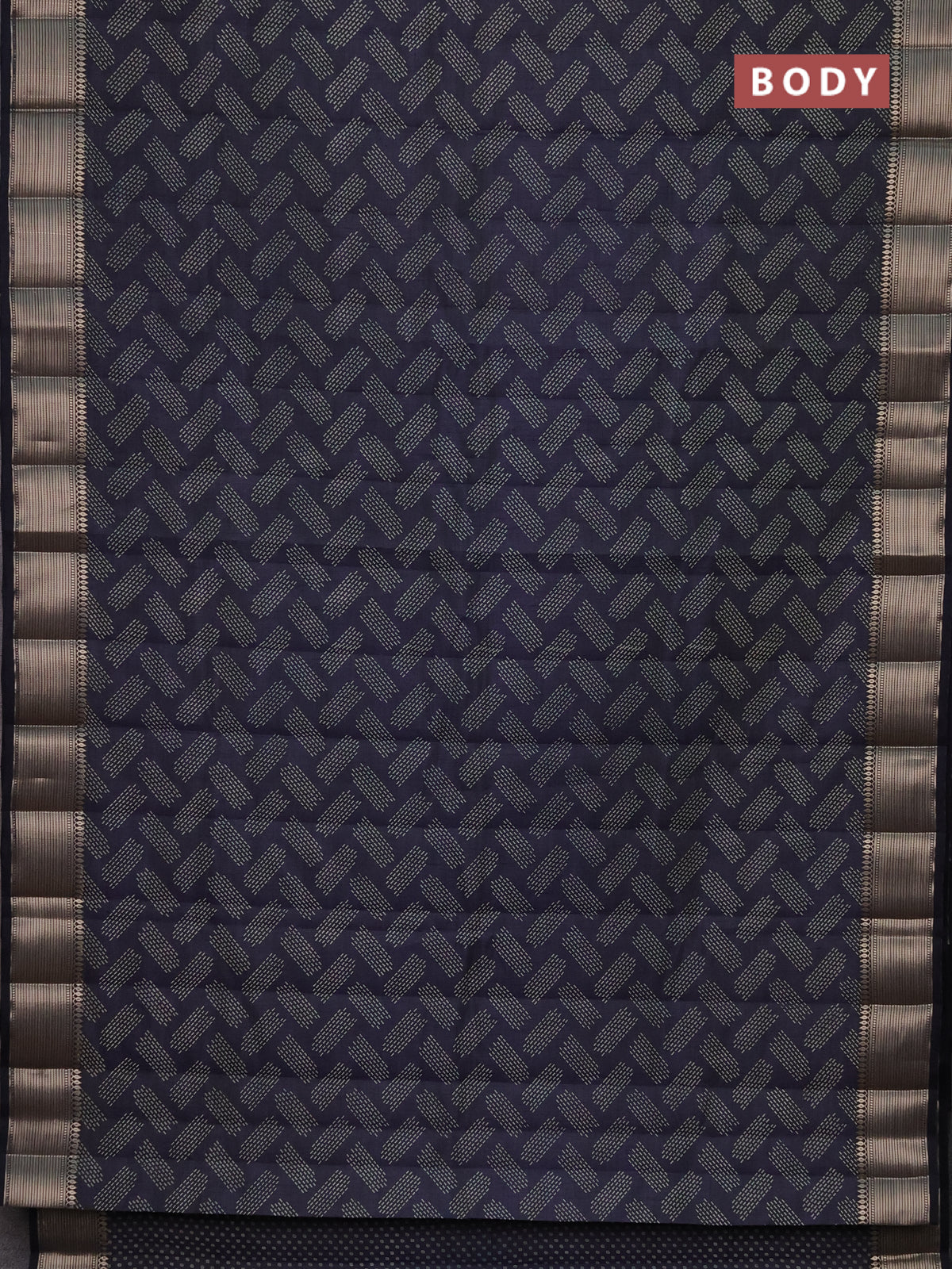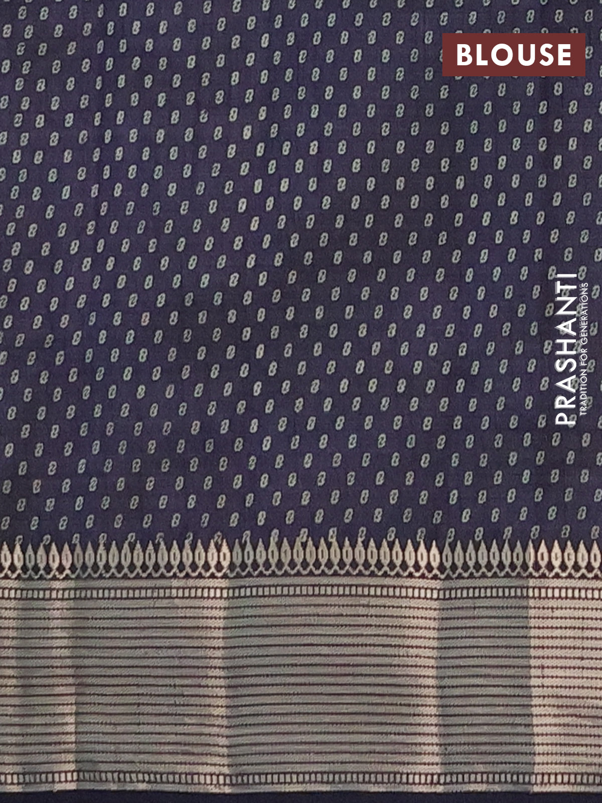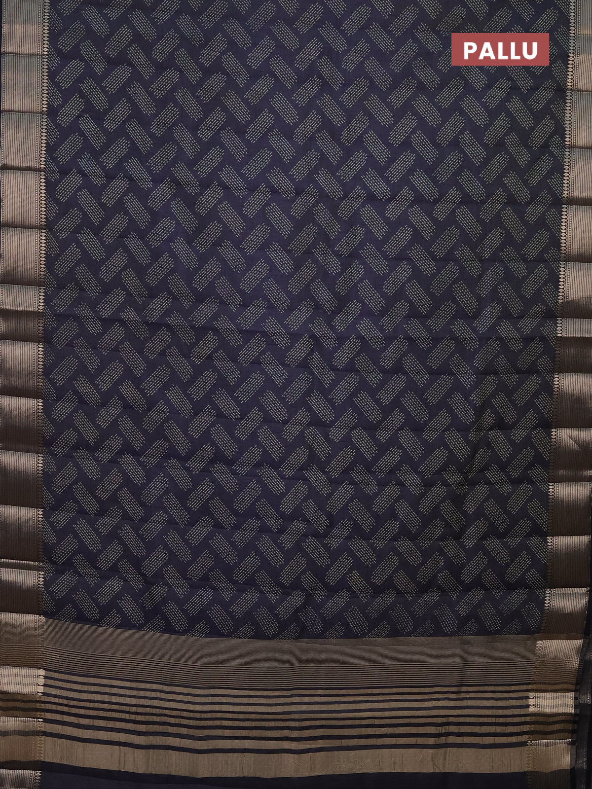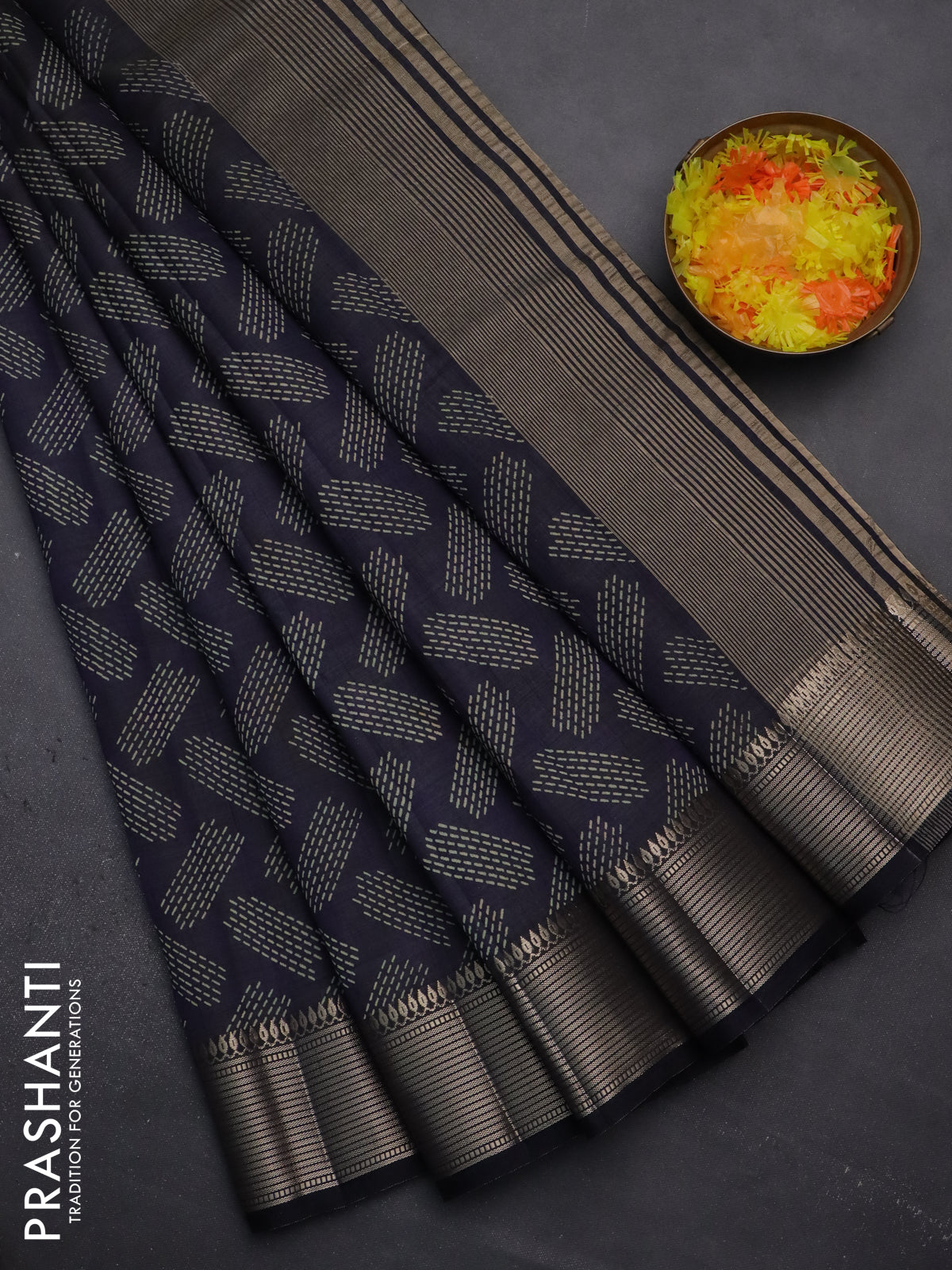 Semi raw silk saree navy blue with allover prints and zari woven border