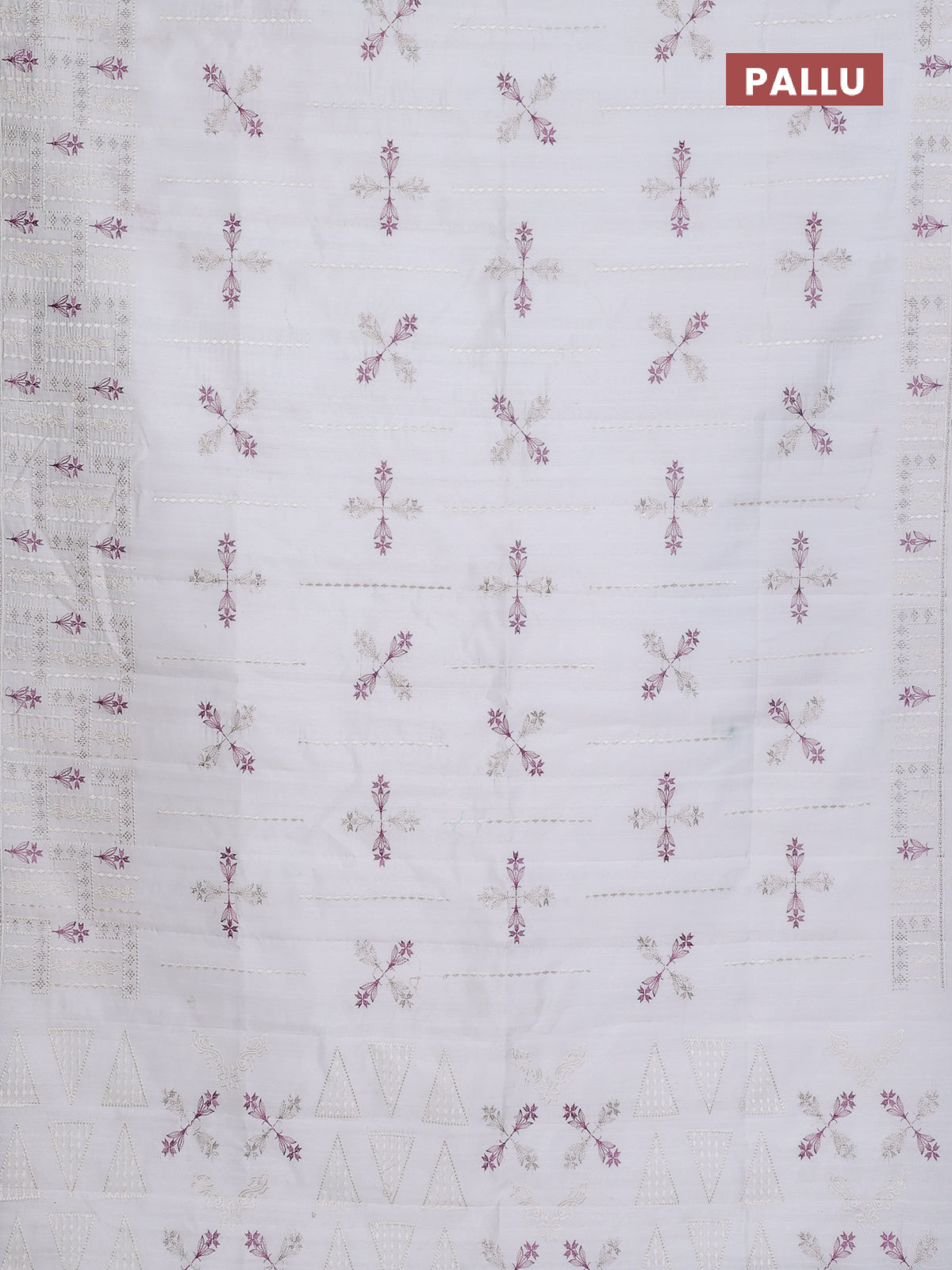 Semi raw silk saree off white with allover embroidery work and embroidery border