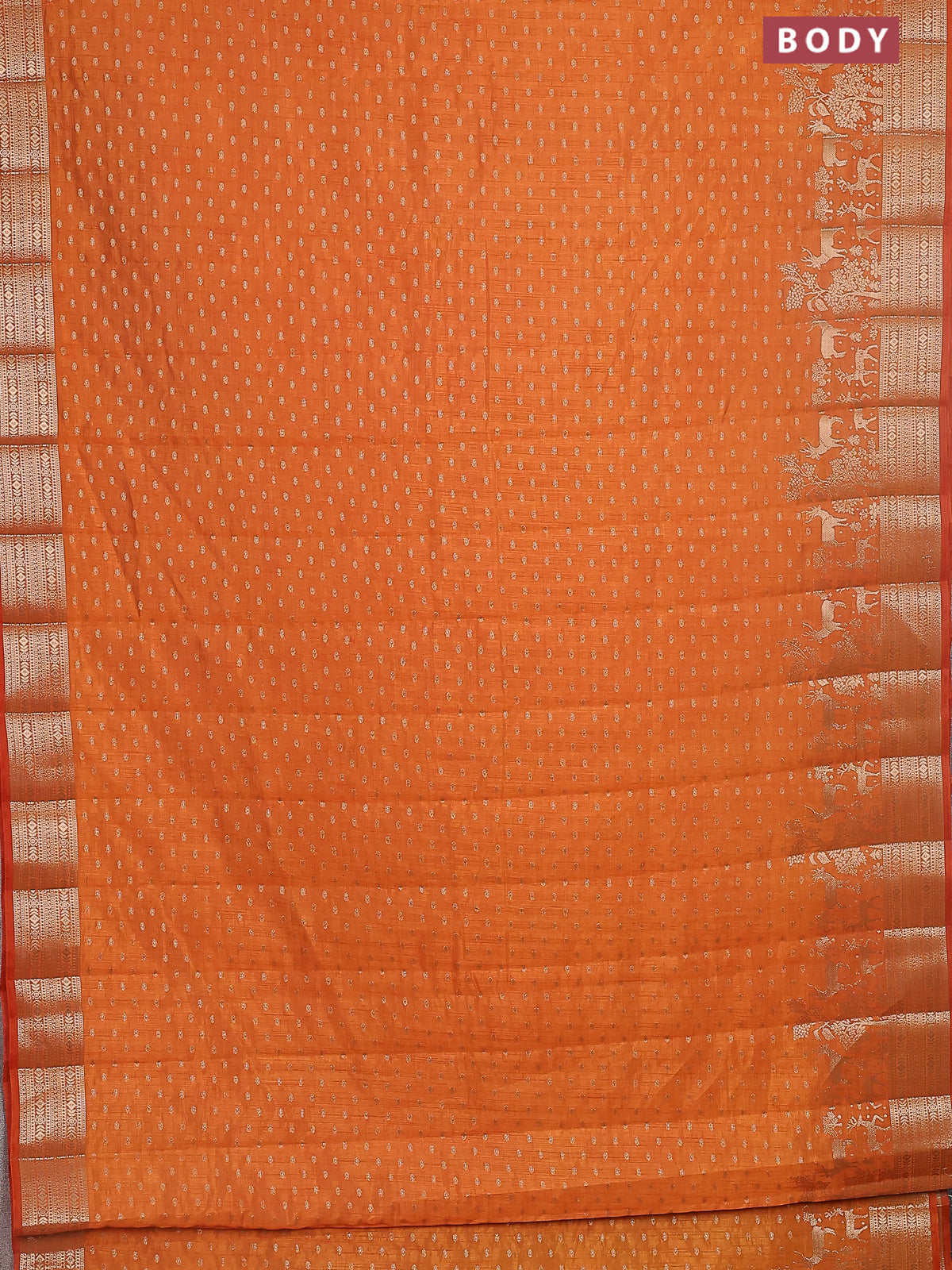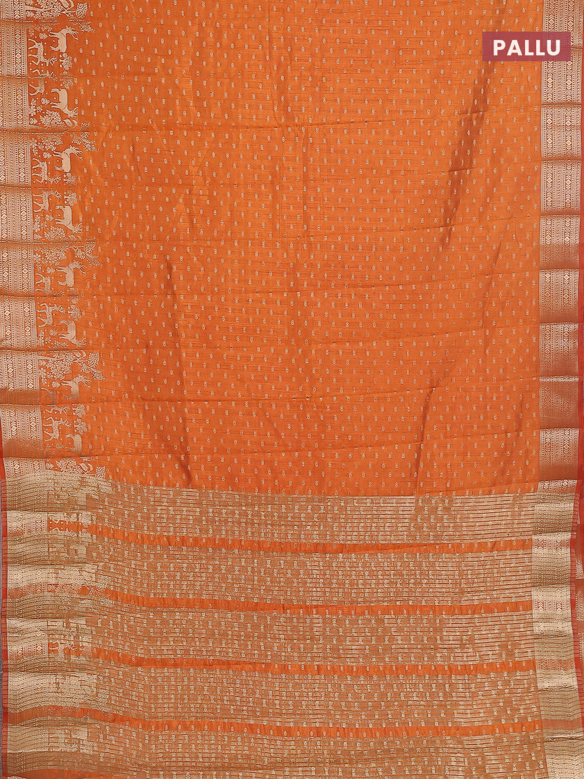 Semi raw silk saree orange with allover zari woven 1000 buttas and rich zari woven border