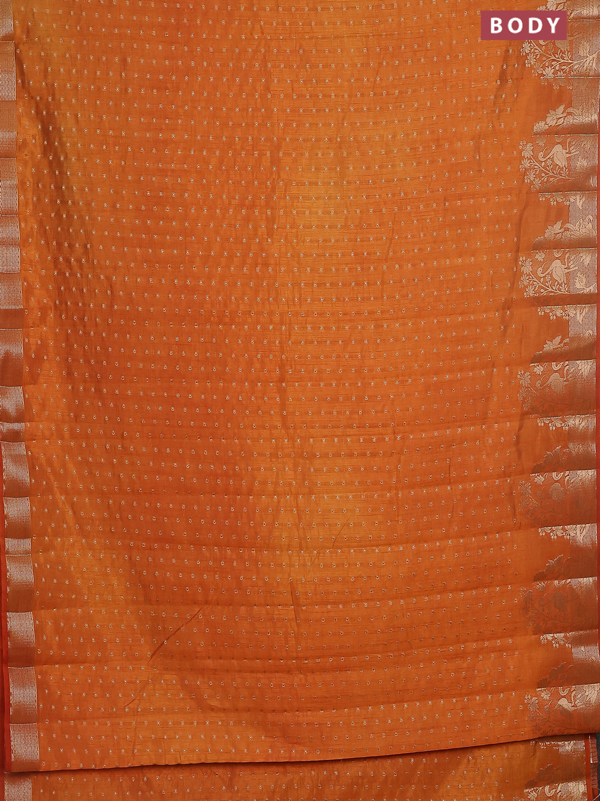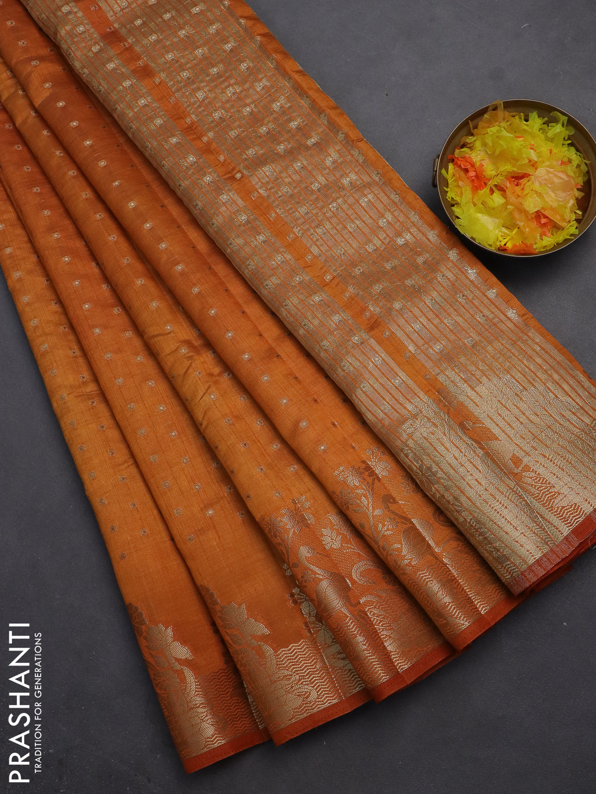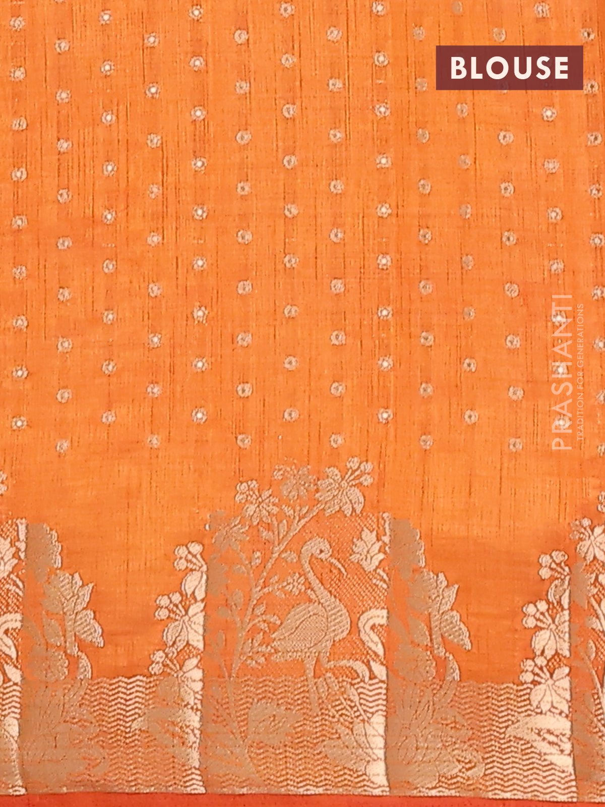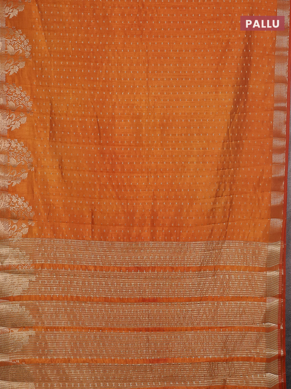 Semi raw silk saree orange with allover zari woven 1000 buttas and rich zari woven border