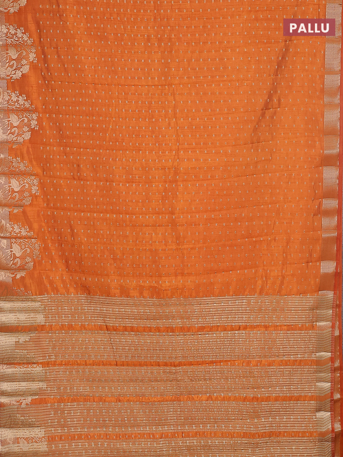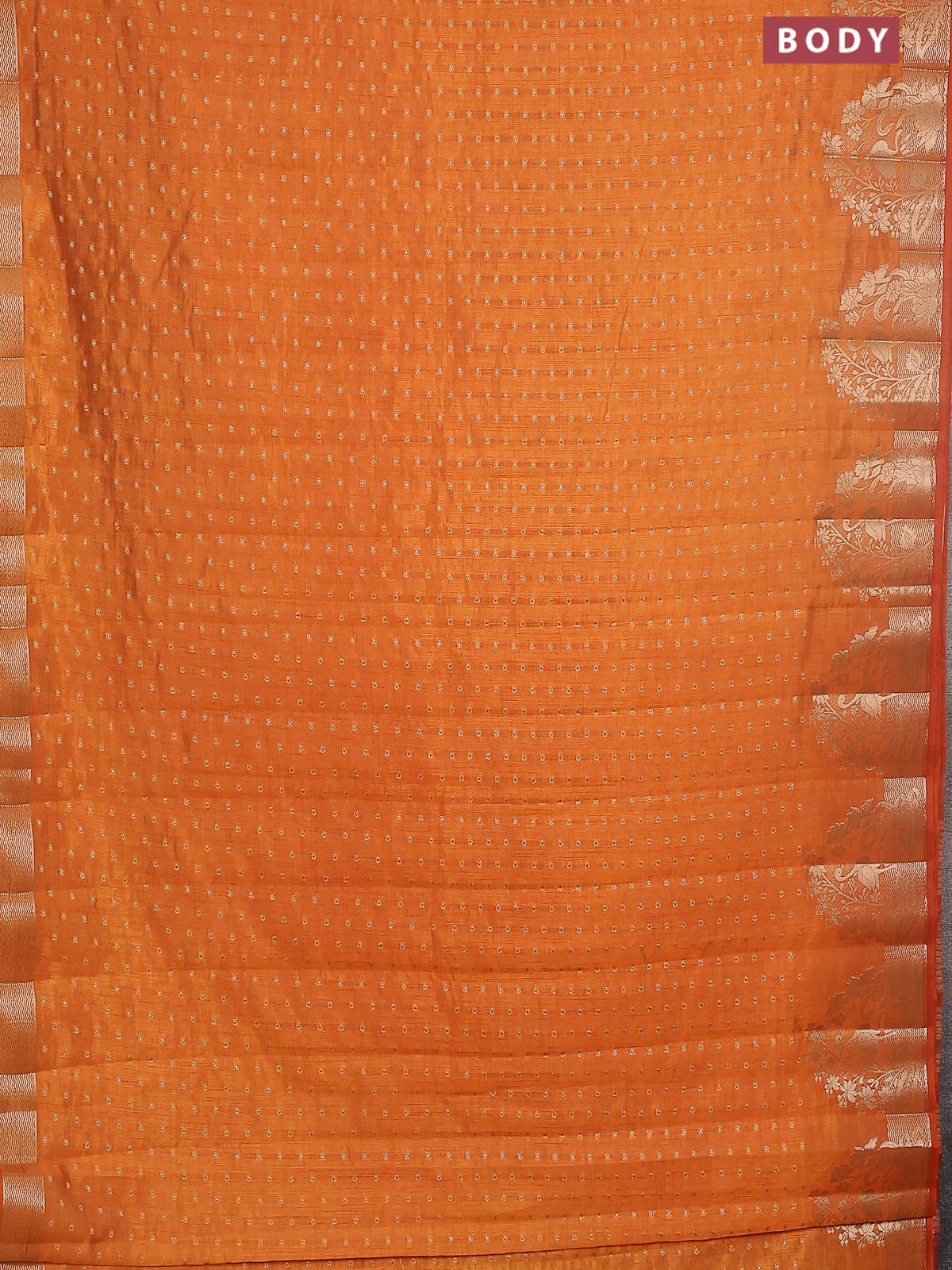 Semi raw silk saree orange with allover zari woven 1000 buttas and rich zari woven border