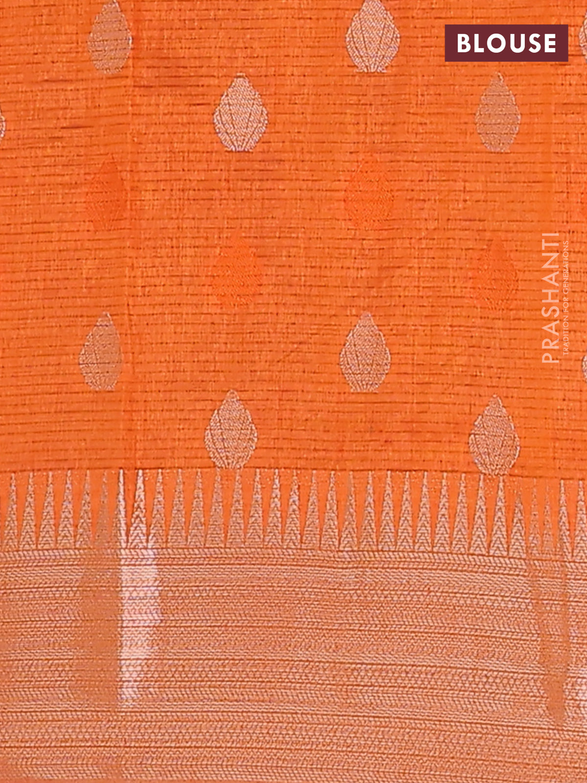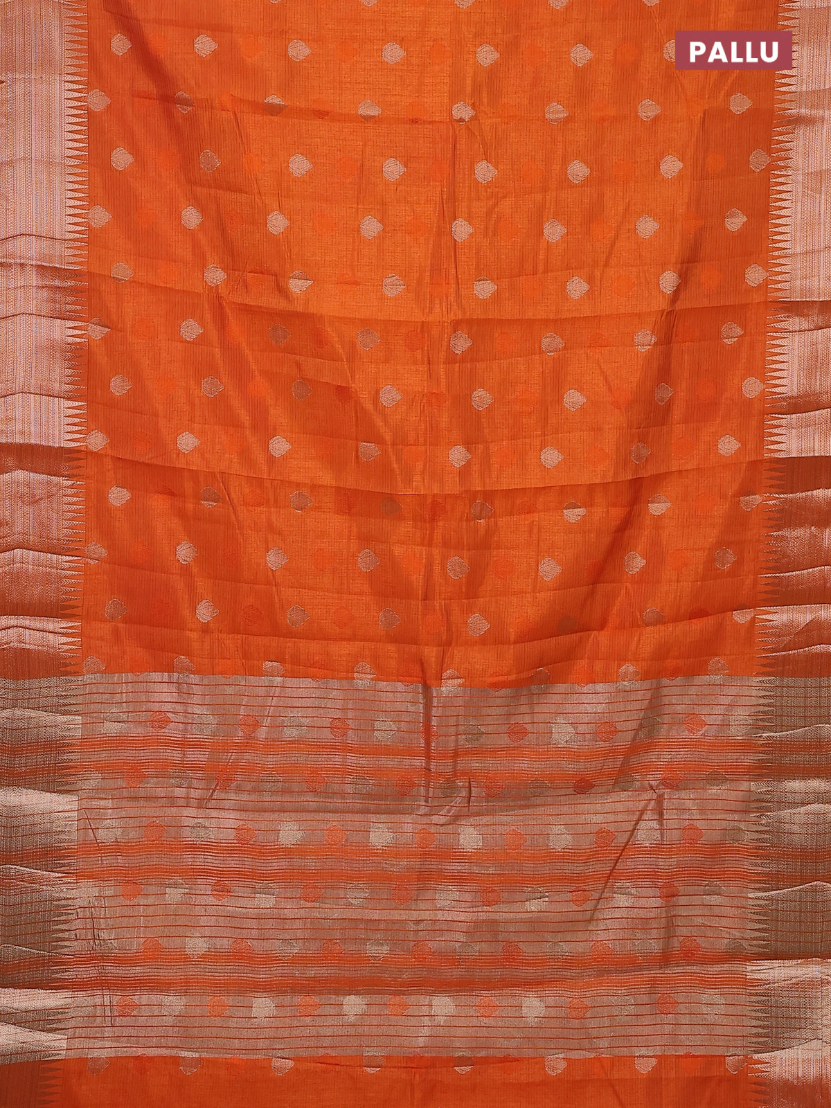 Semi raw silk saree orange with thread & zari woven buttas and temple design zari woven border