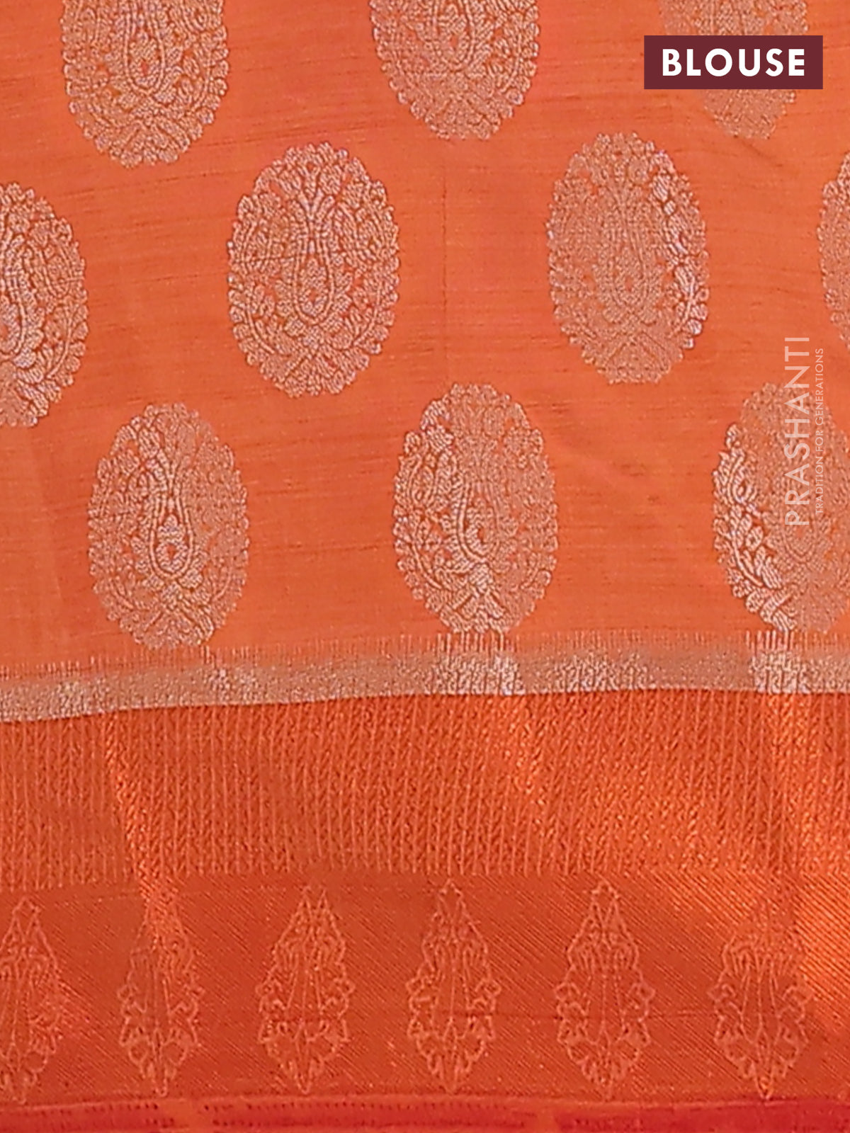 Semi raw silk saree orange with zari woven buttas and zari woven simple border