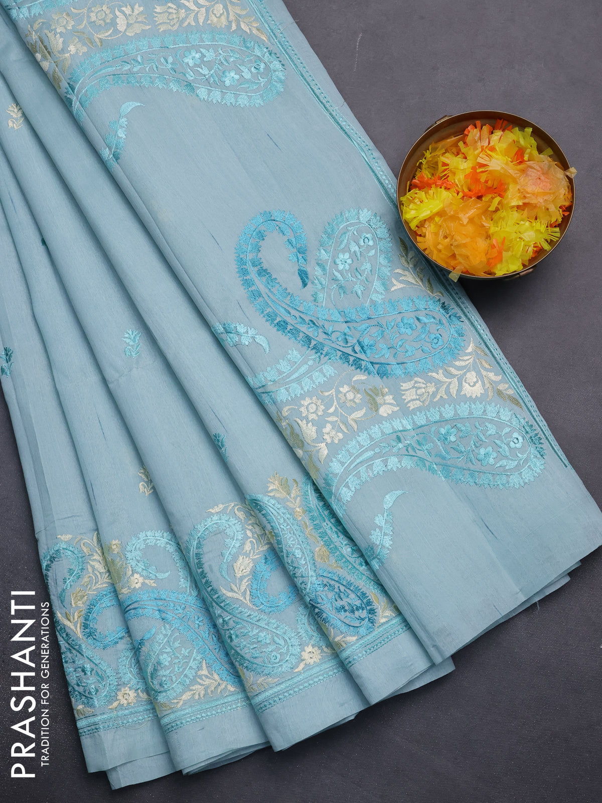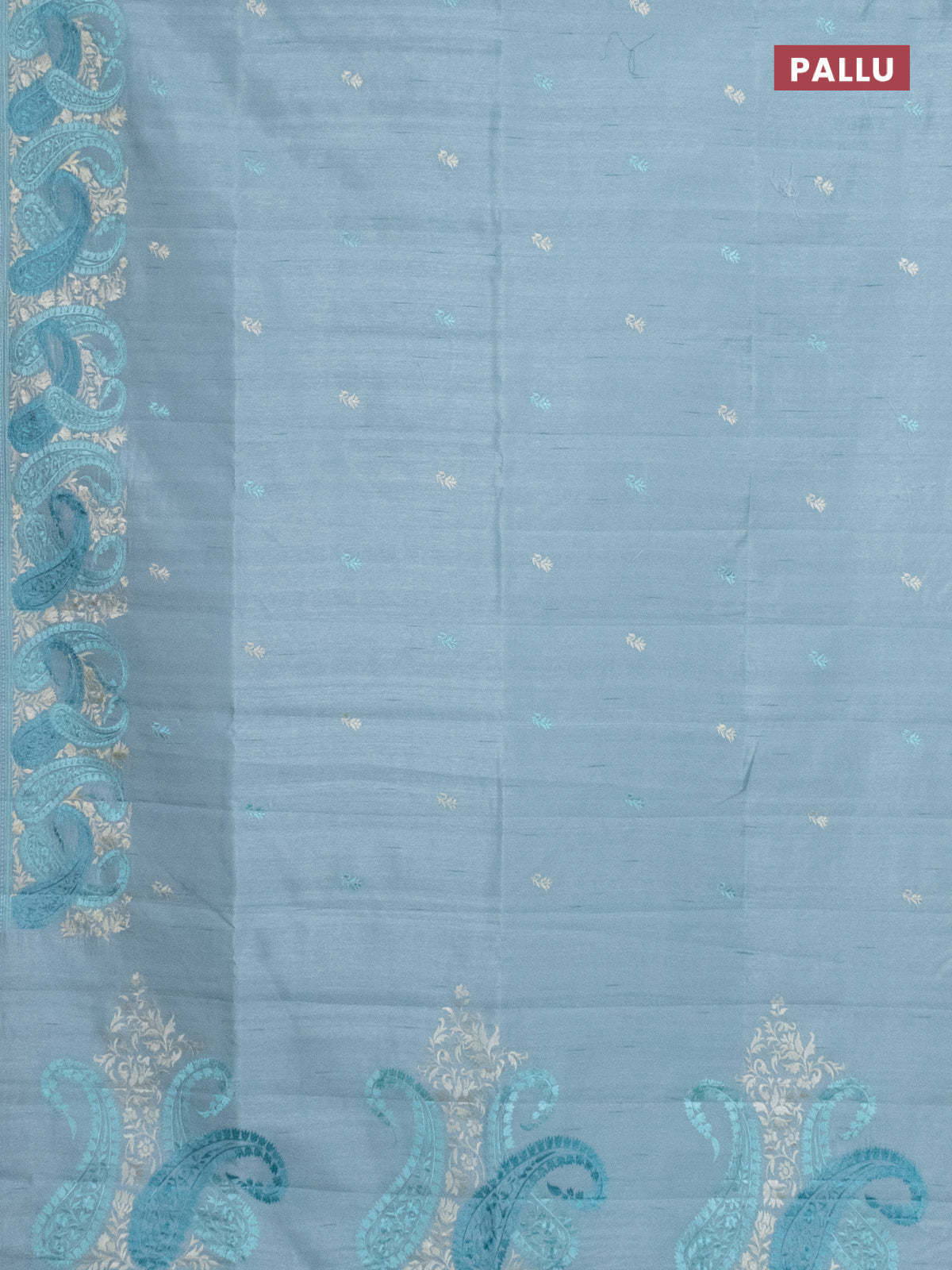 Semi raw silk saree pastel blue with embroidery work buttas and paisley design embroidery border