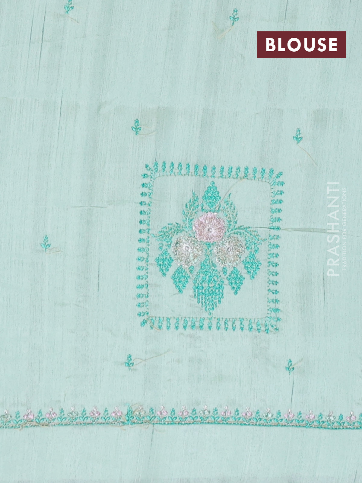 Semi raw silk saree pastel green with allover embroidery buttas and embroidery border