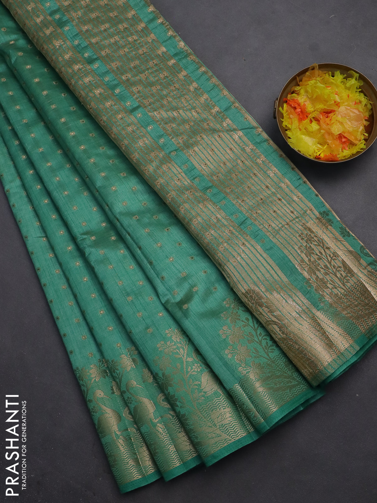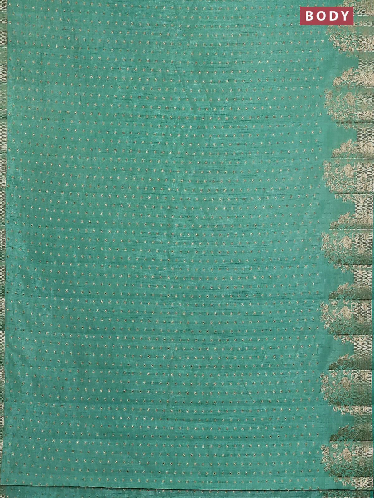 Semi raw silk saree pastel green with allover zari woven 1000 buttas and rich zari woven border