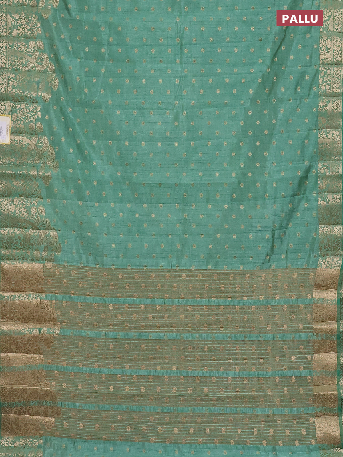 Semi raw silk saree pastel green with allover zari woven floral design 1000 buttas and rich zari woven border