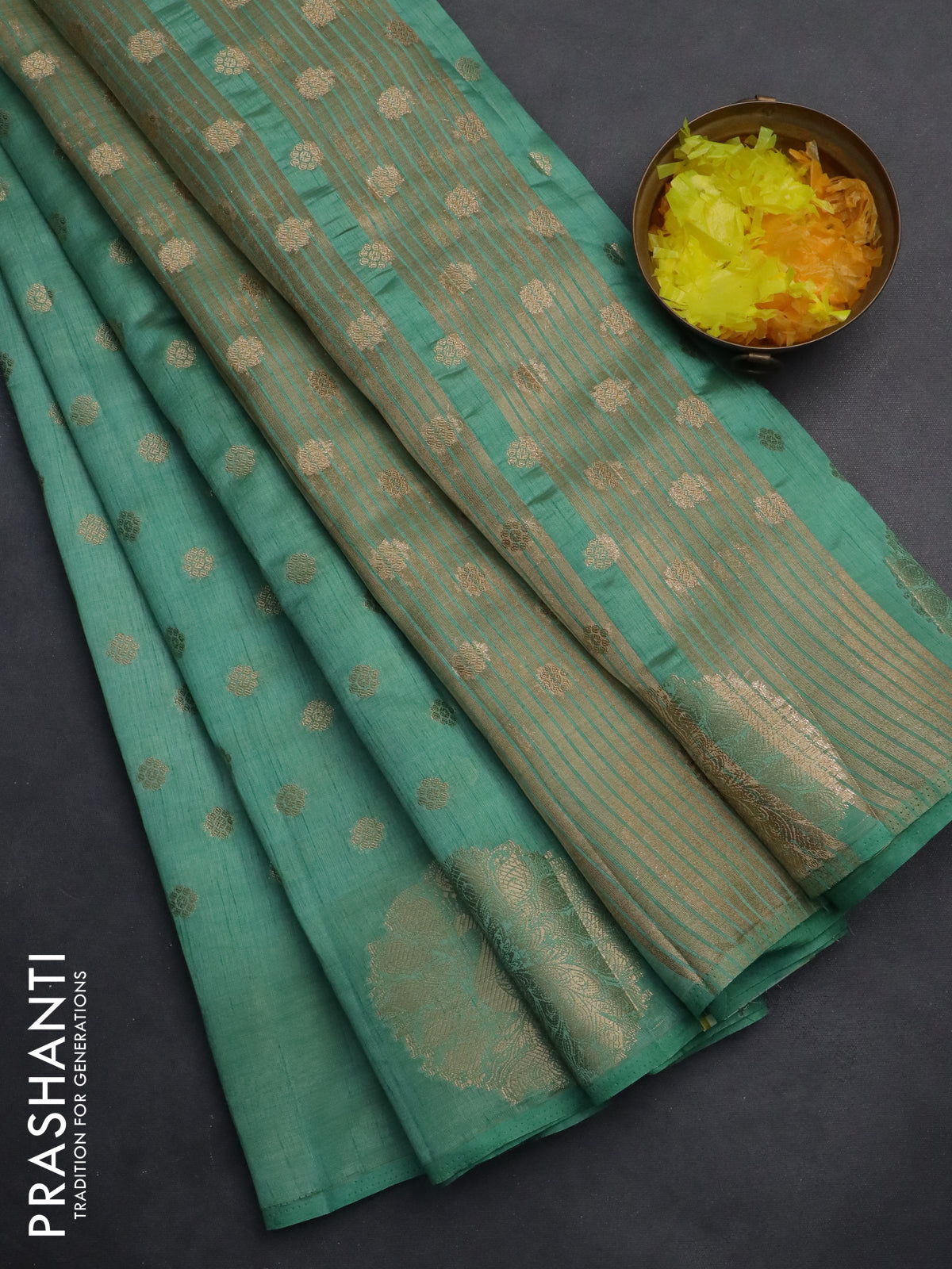 Semi raw silk saree pastel green with allover zari woven floral design 1000 buttas and zari woven butta border