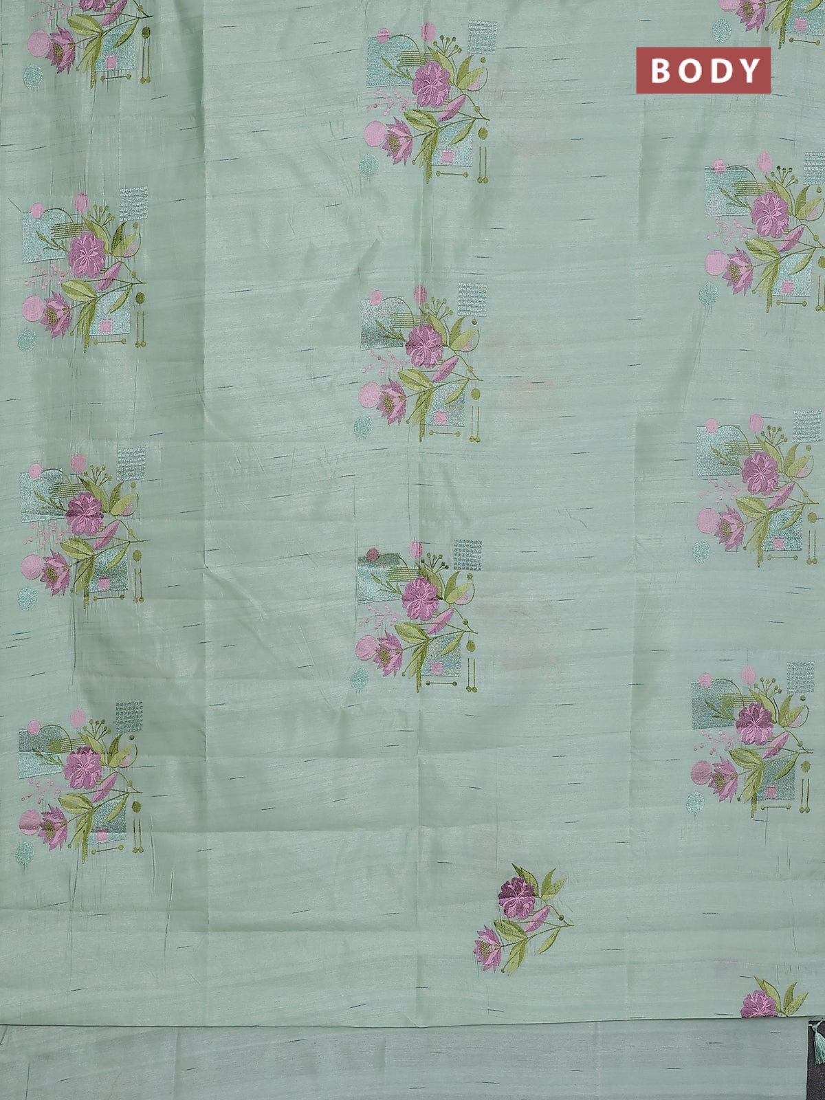 Semi raw silk saree pastel green with embroidery buttas in borderless style
