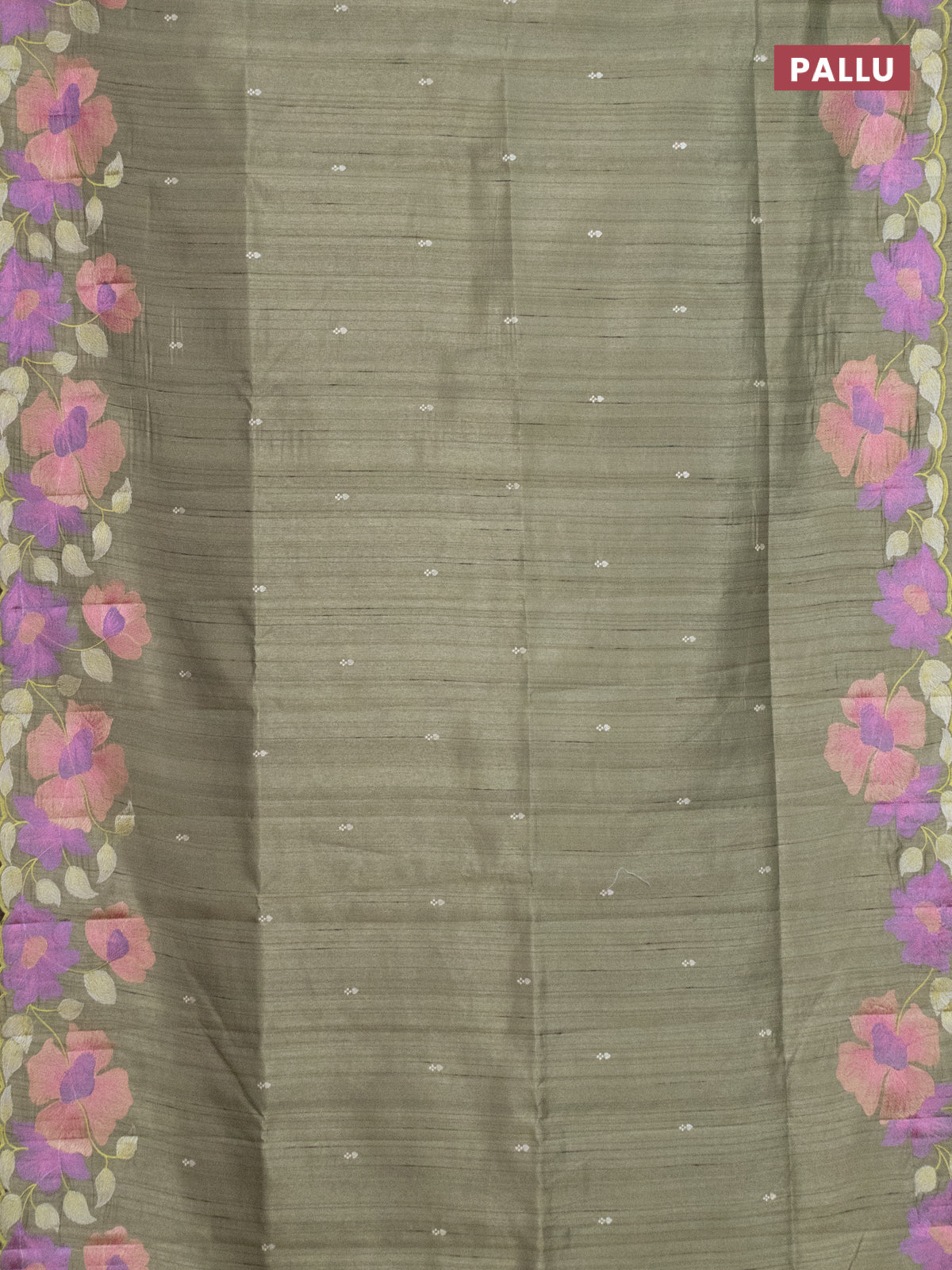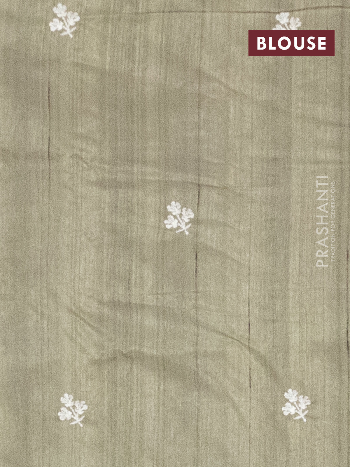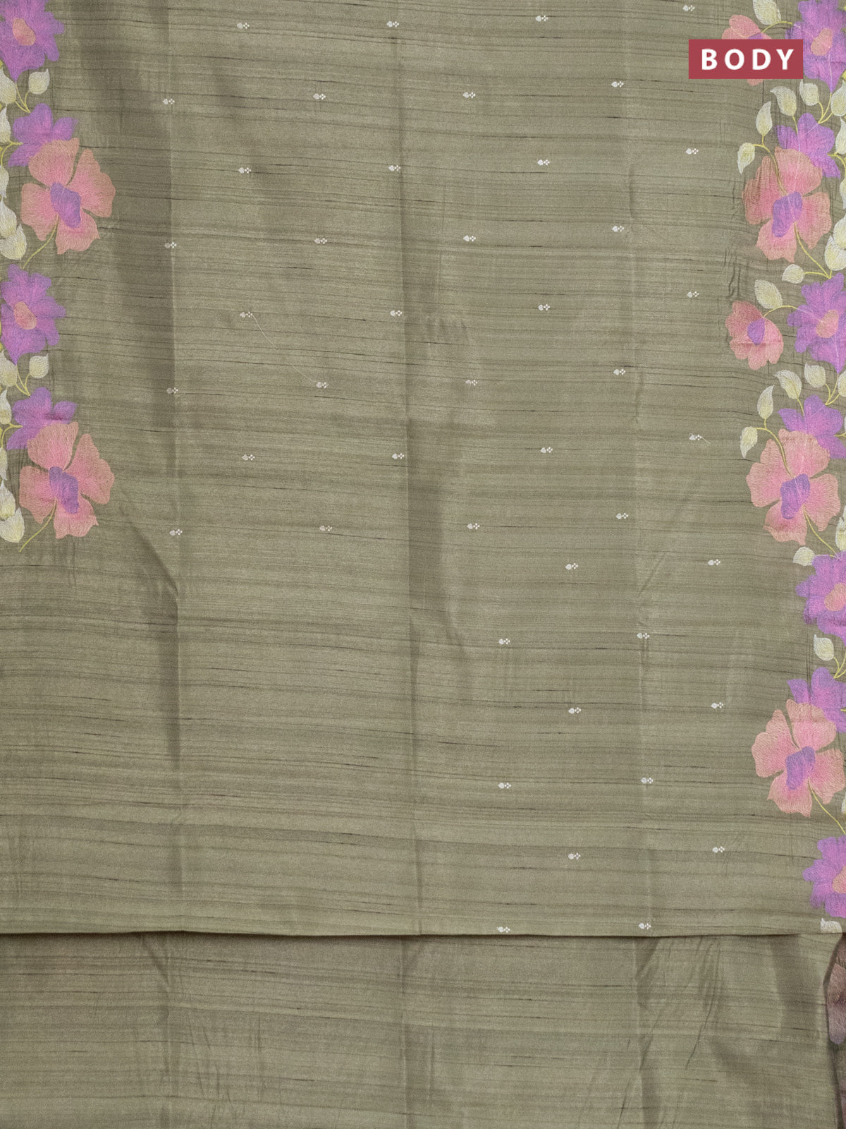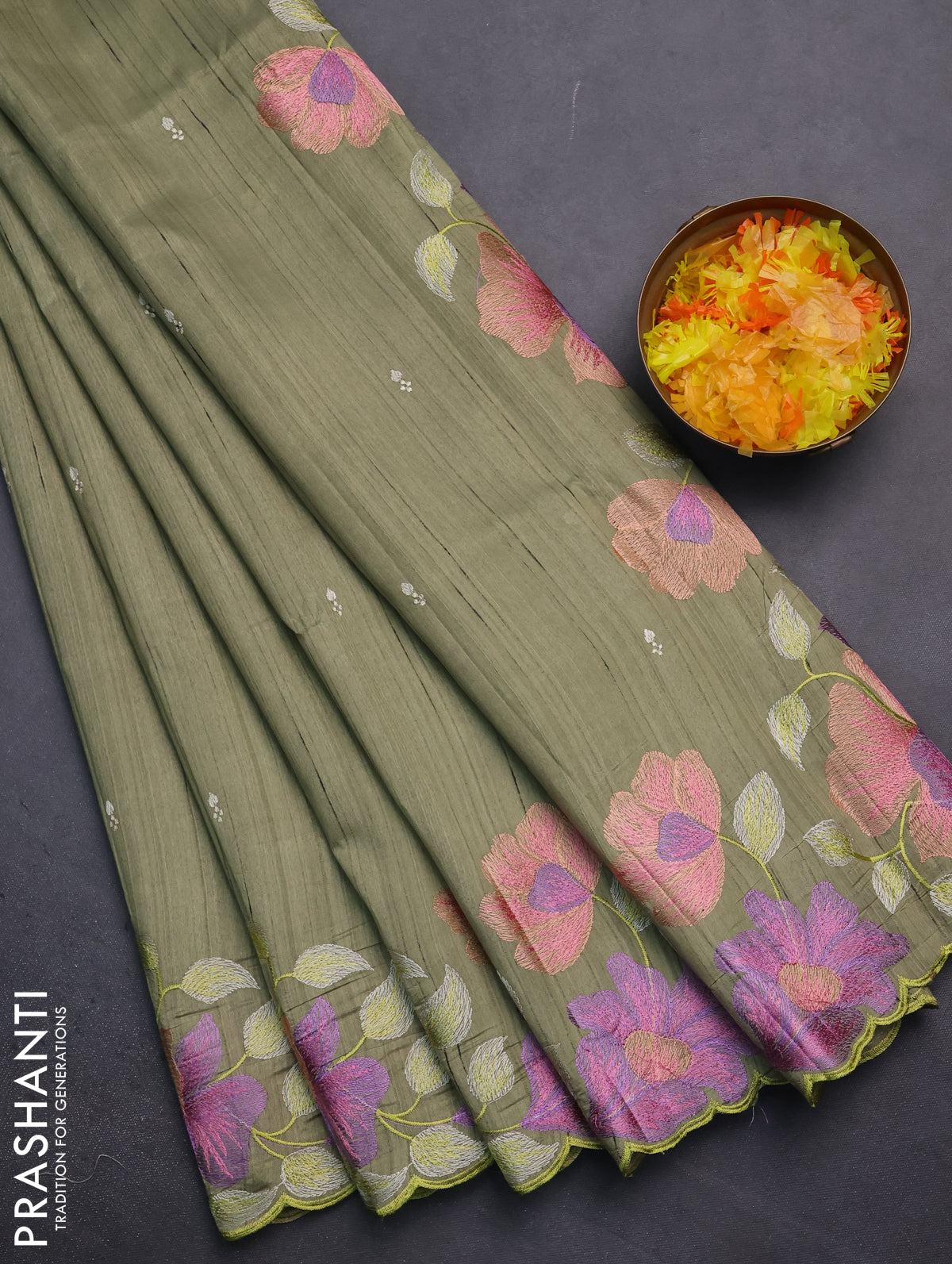 Semi raw silk saree pastel green with embroidery work buttas and floral embroidery border