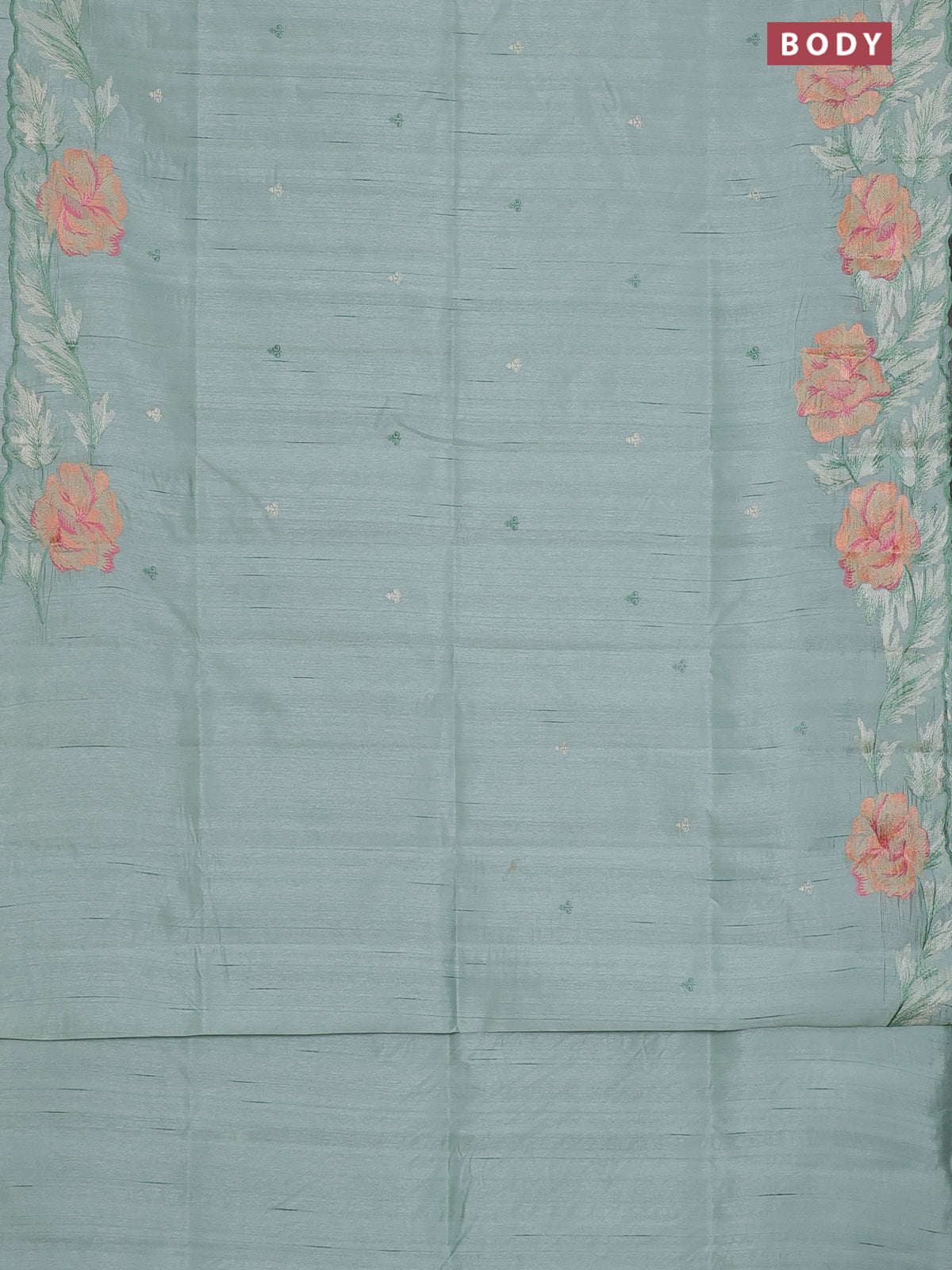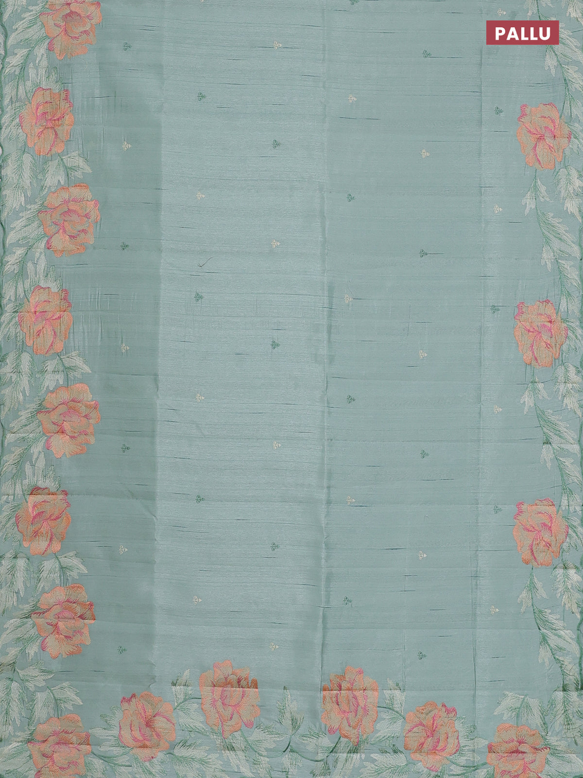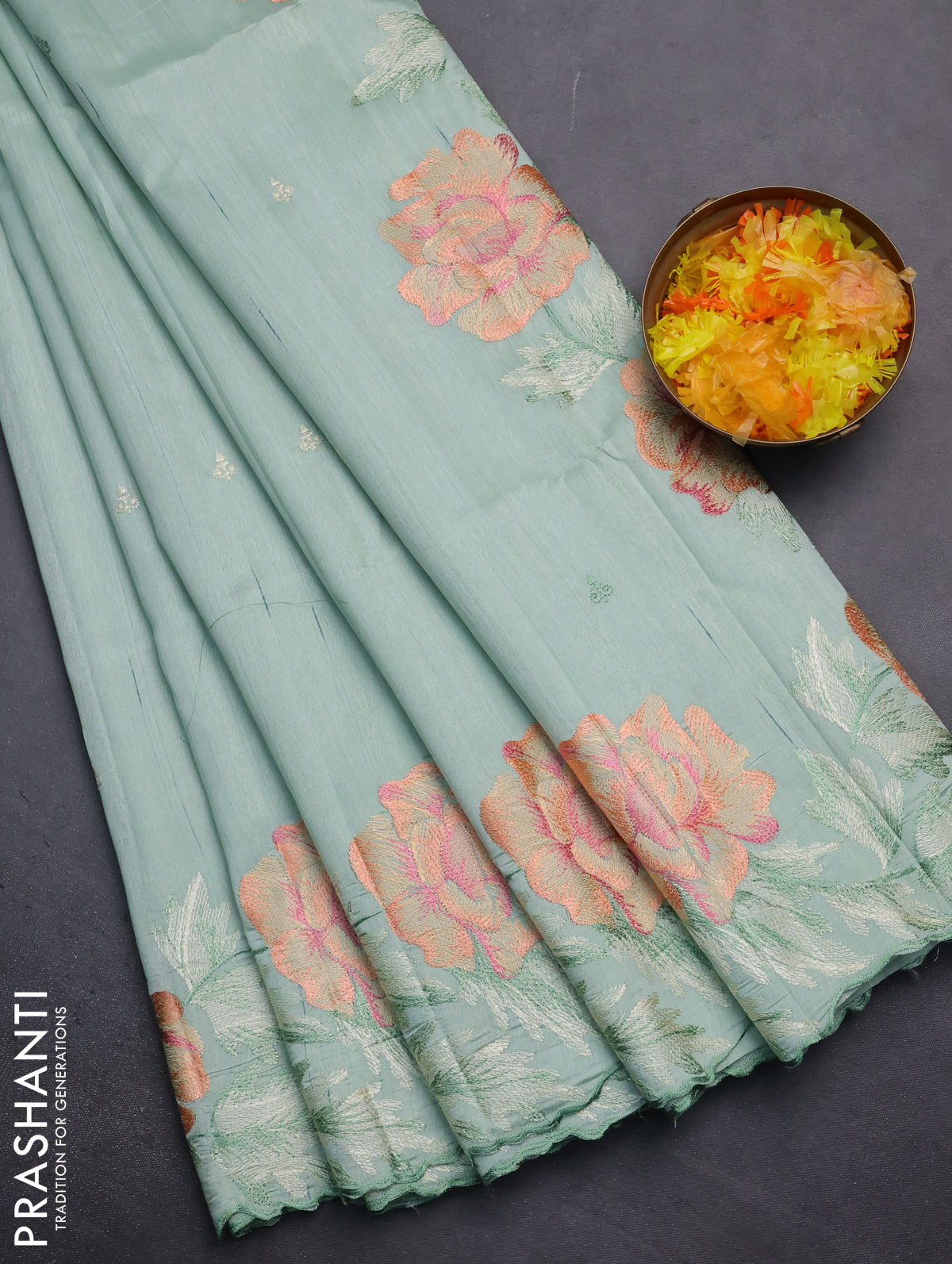 Semi raw silk saree pastel green with embroidery work buttas and floral embroidery border