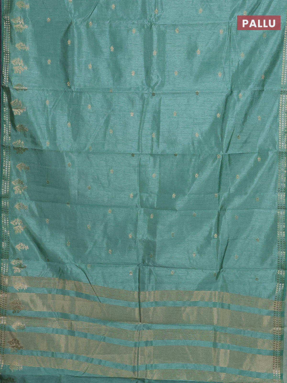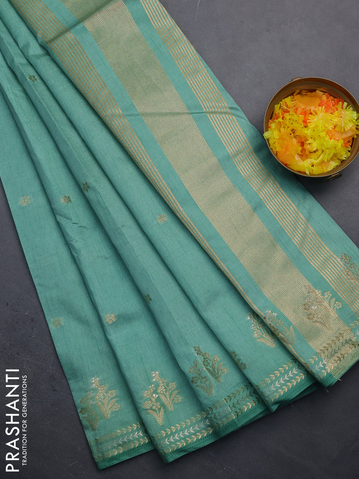 Semi raw silk saree pastel green with zari woven buttas and zari woven border