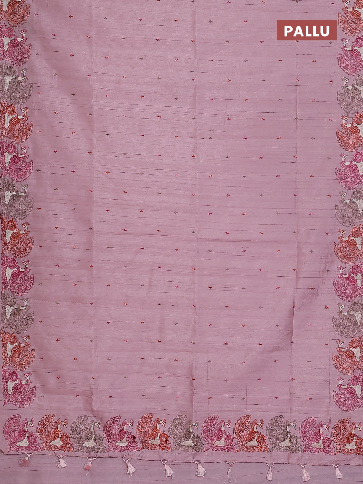 Semi raw silk saree pastel pink with allover embroidery work and peacock embroidery border