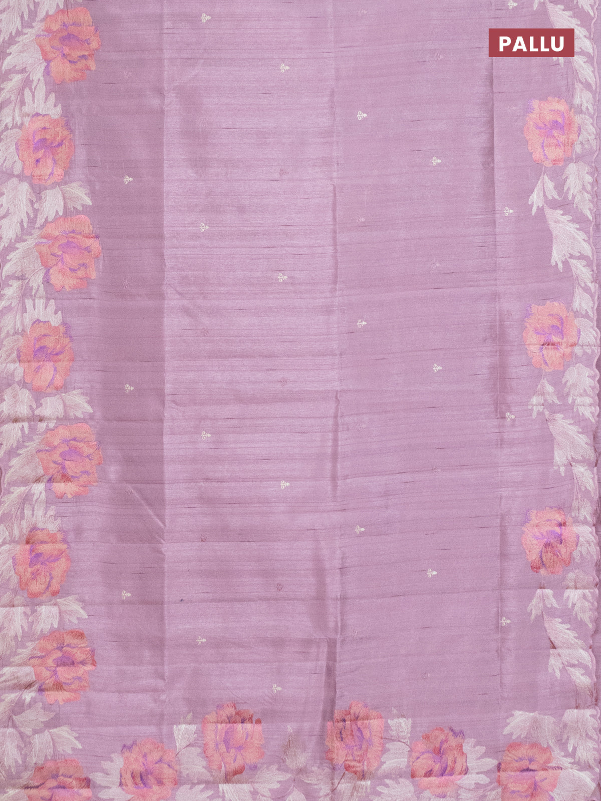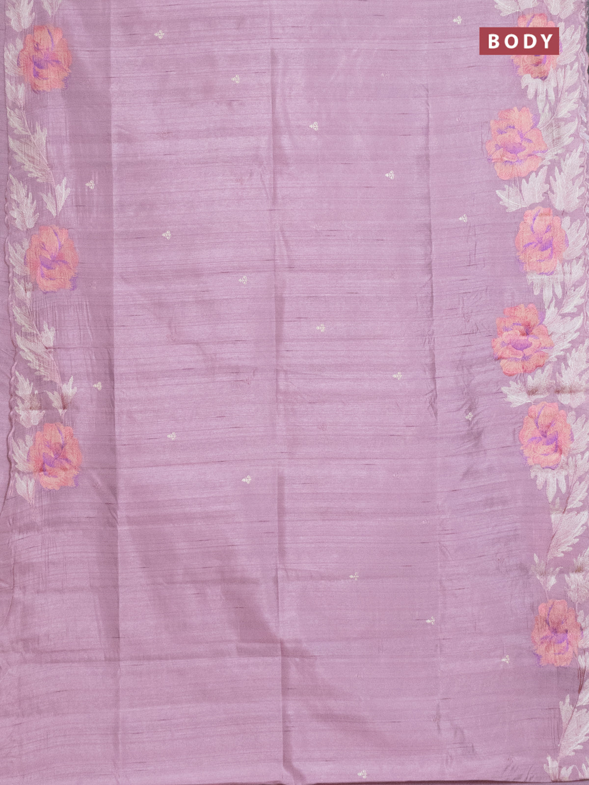 Semi raw silk saree pastel pink with embroidery work buttas and floral embroidery border