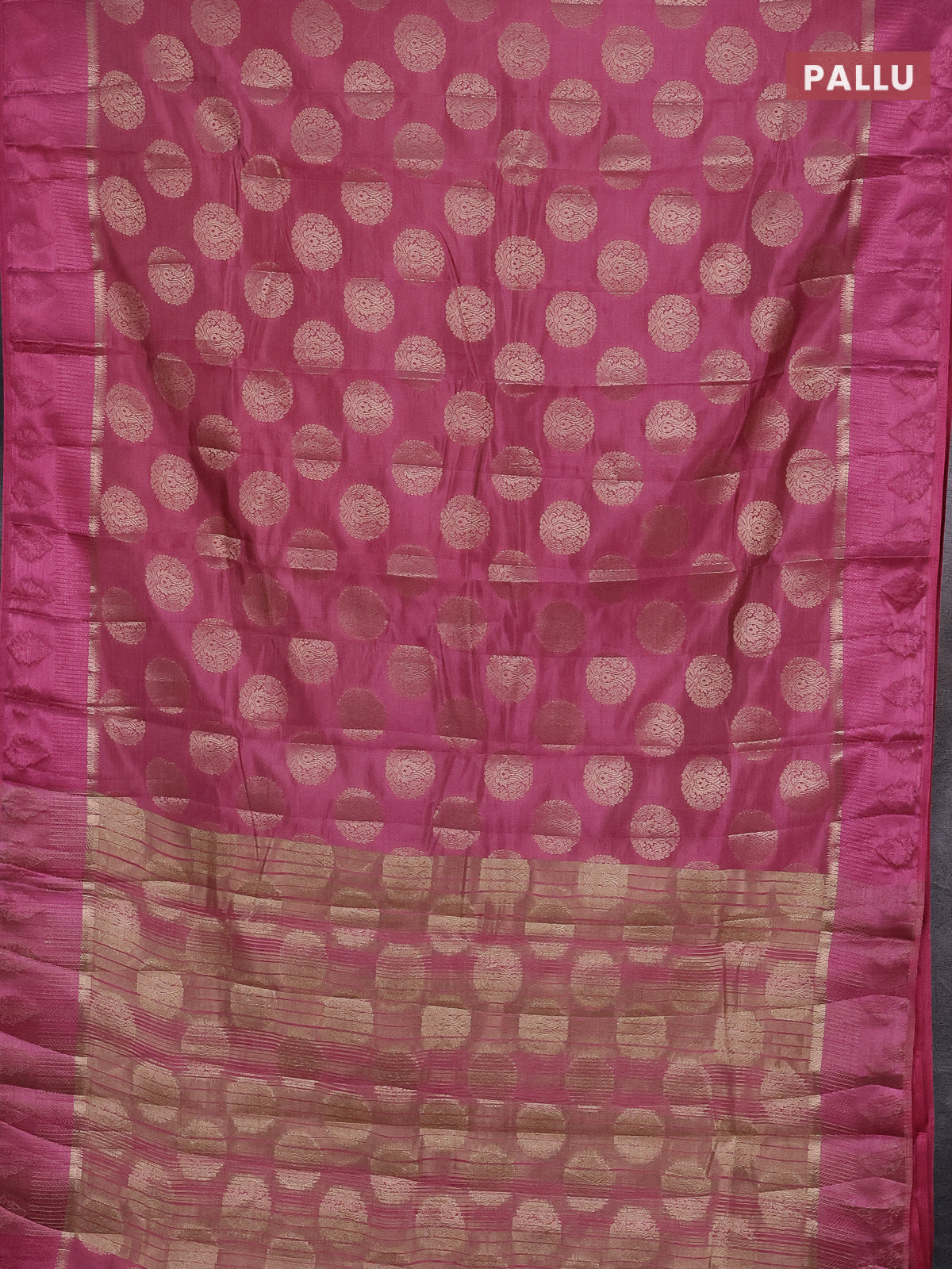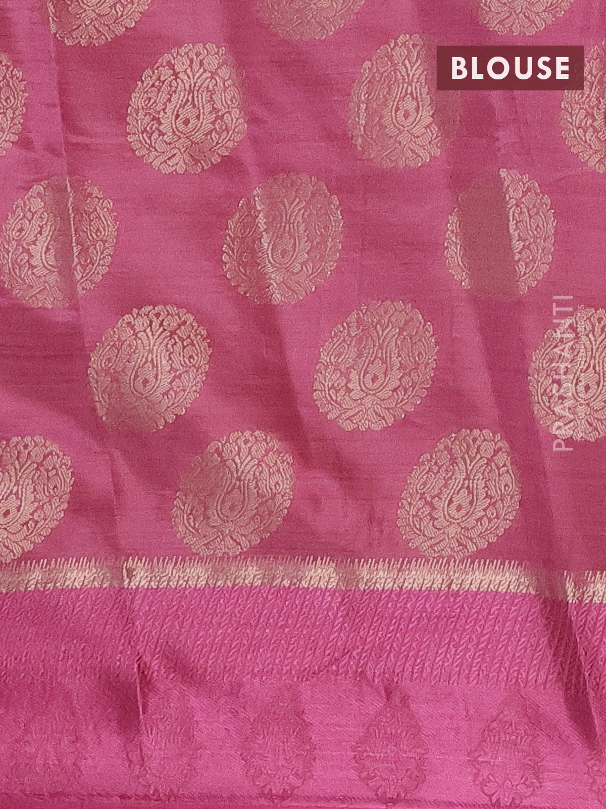 Semi raw silk saree pastel pink with zari woven buttas and zari woven simple border