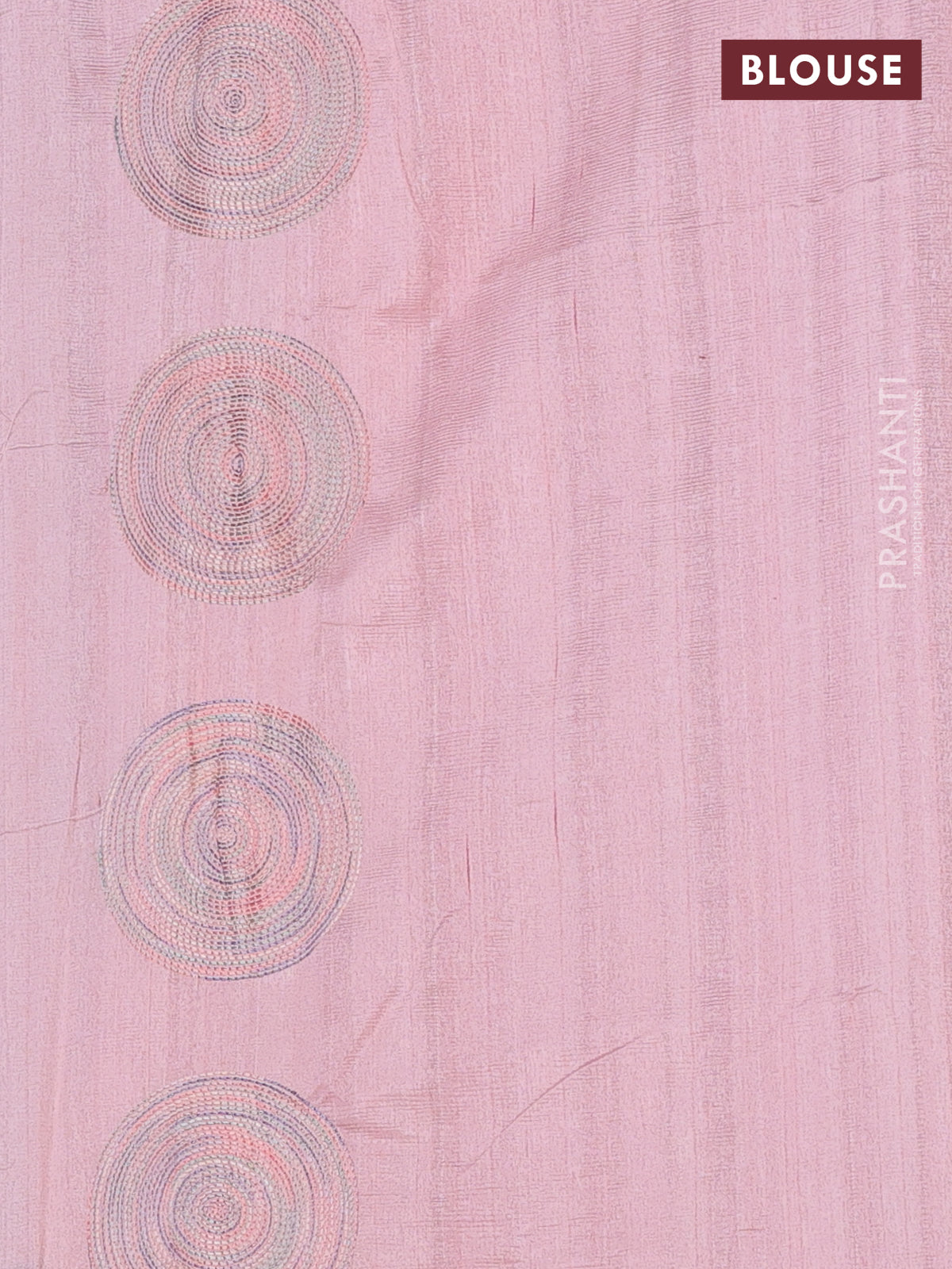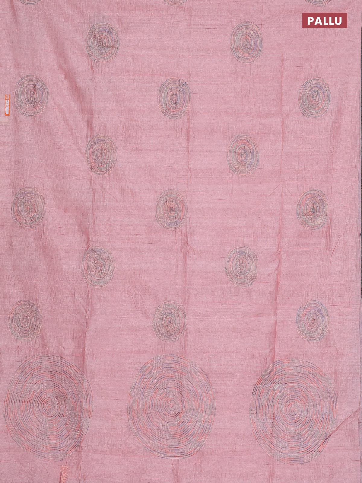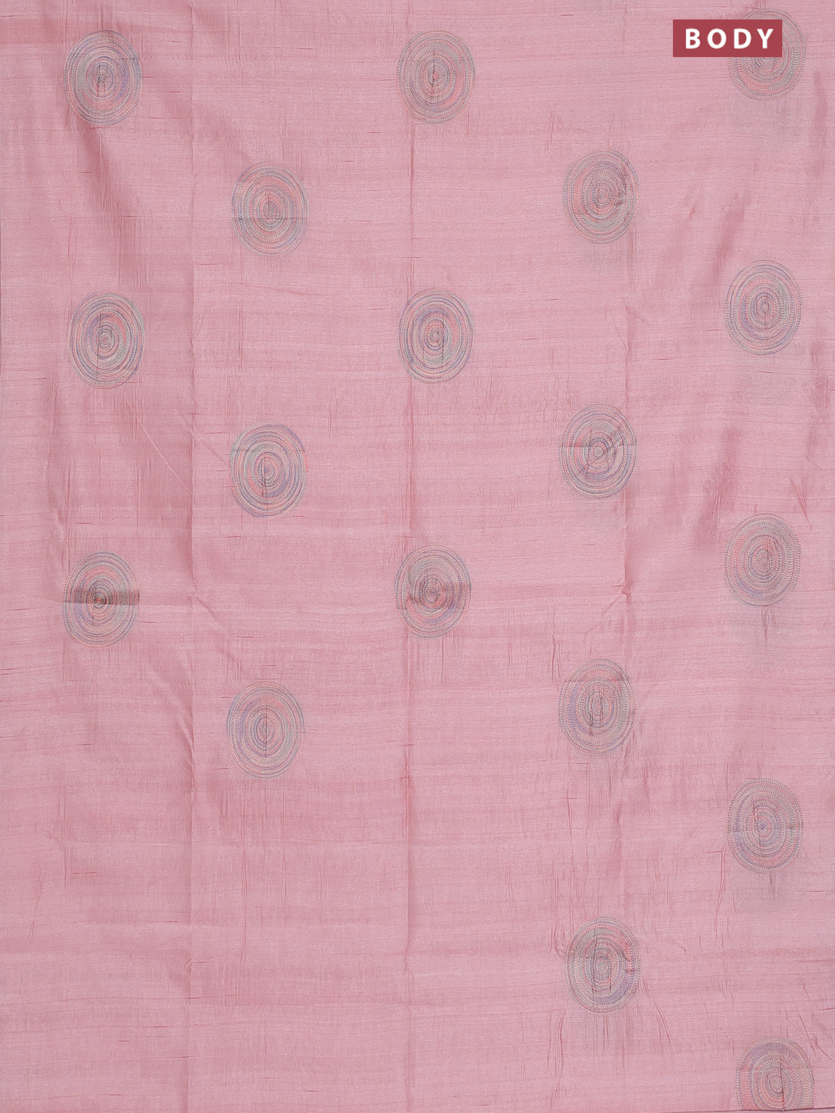 Semi raw silk saree peach shade with embroidery work buttas and geometric embroidery butta border