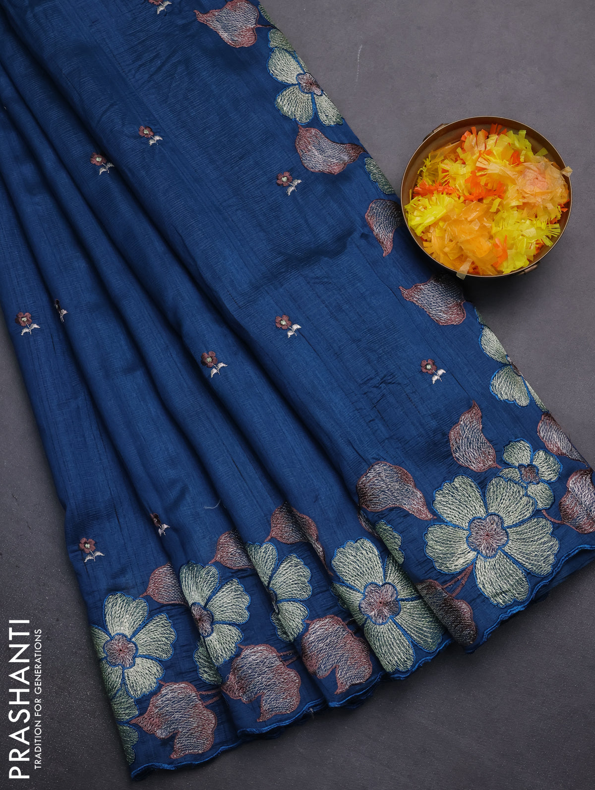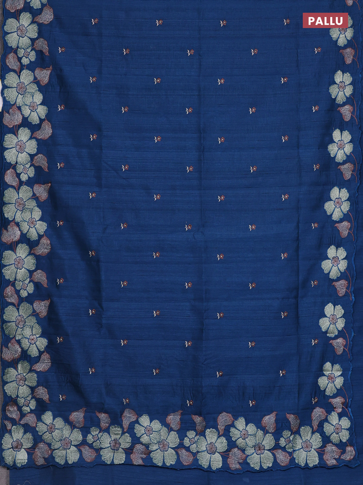 Semi raw silk saree peacock blue with embroidery work buttas and floral embroidery border