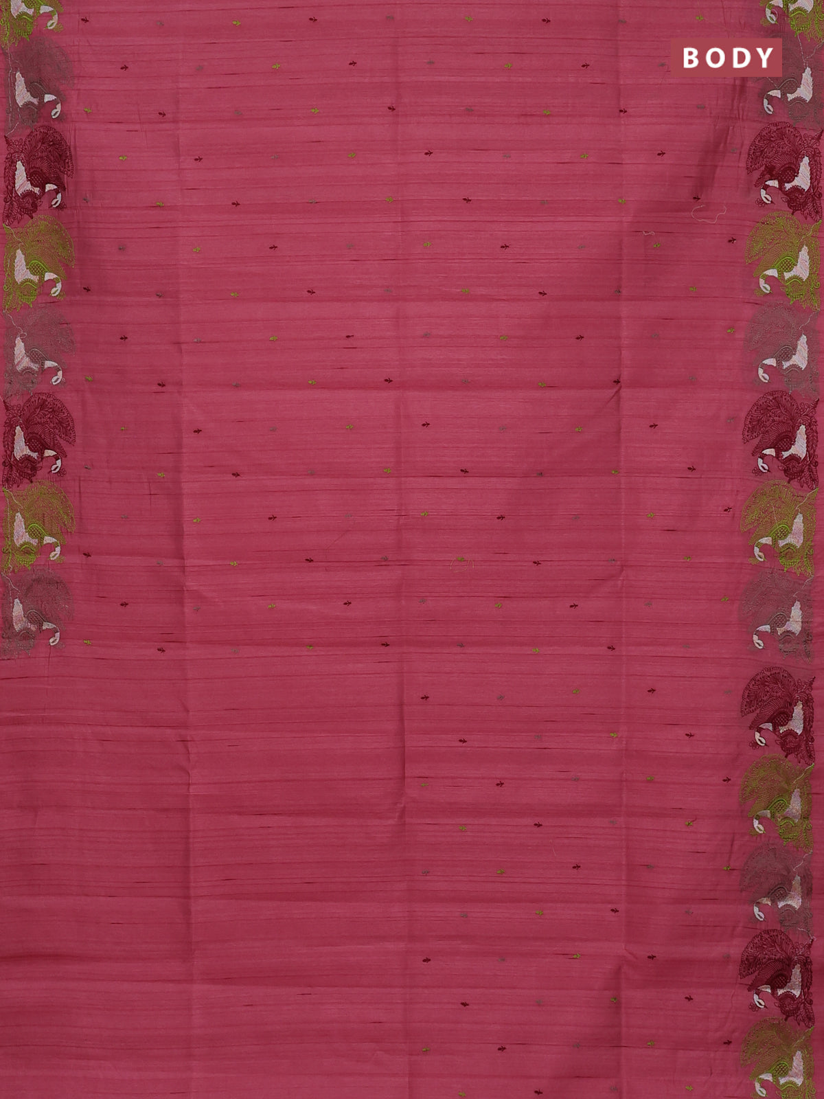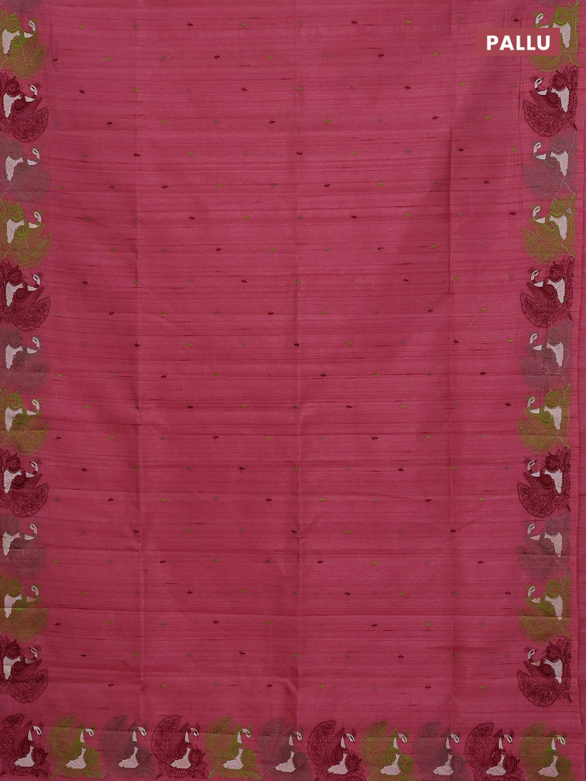 Semi raw silk saree peeach pink with allover embroidery work and peacock embroidery border