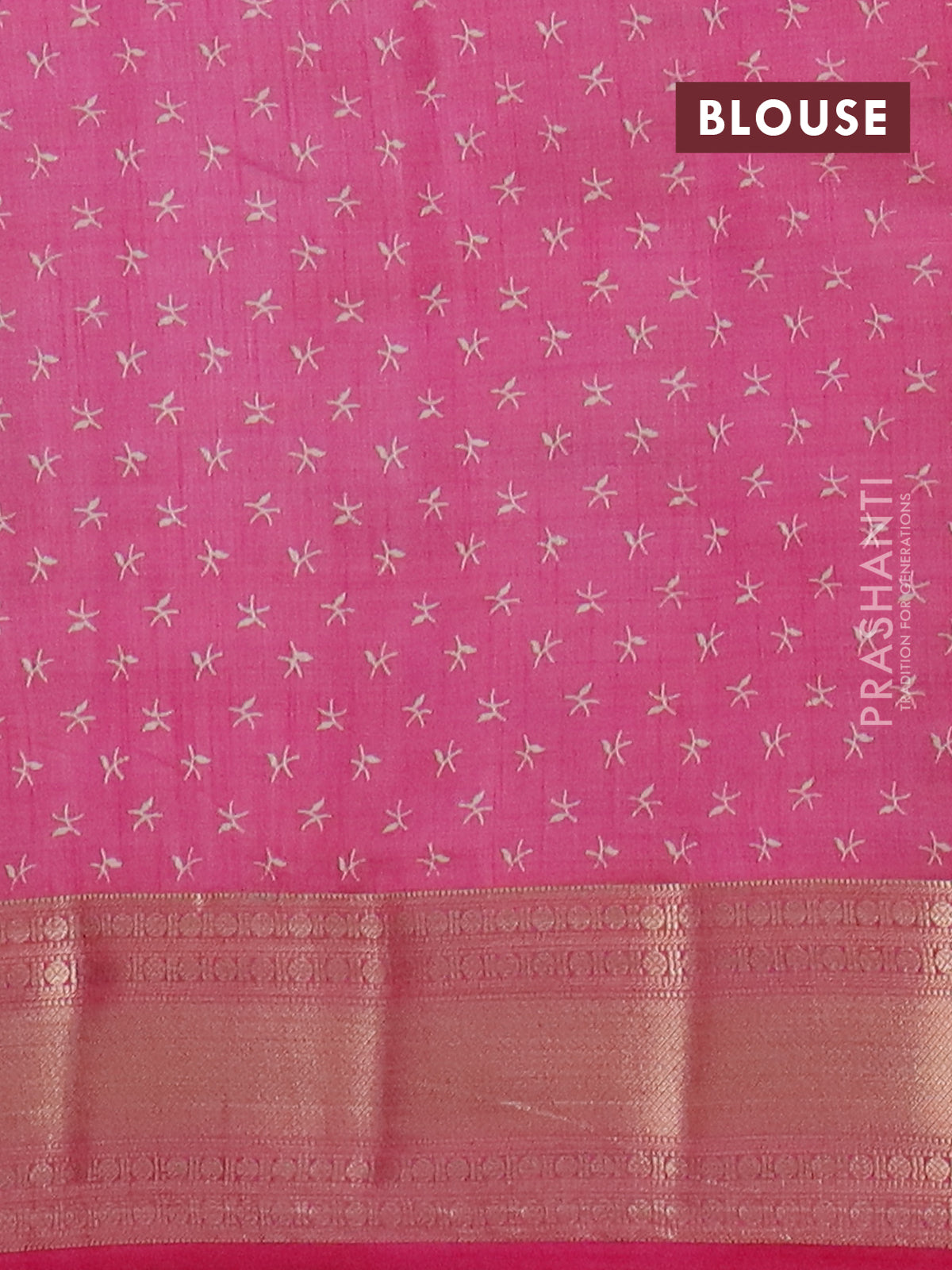 Material : Semi Raw Silk Blouse : Attached Length of saree : 6.2 mts (5.5 mts saree & 70 cms... Read more