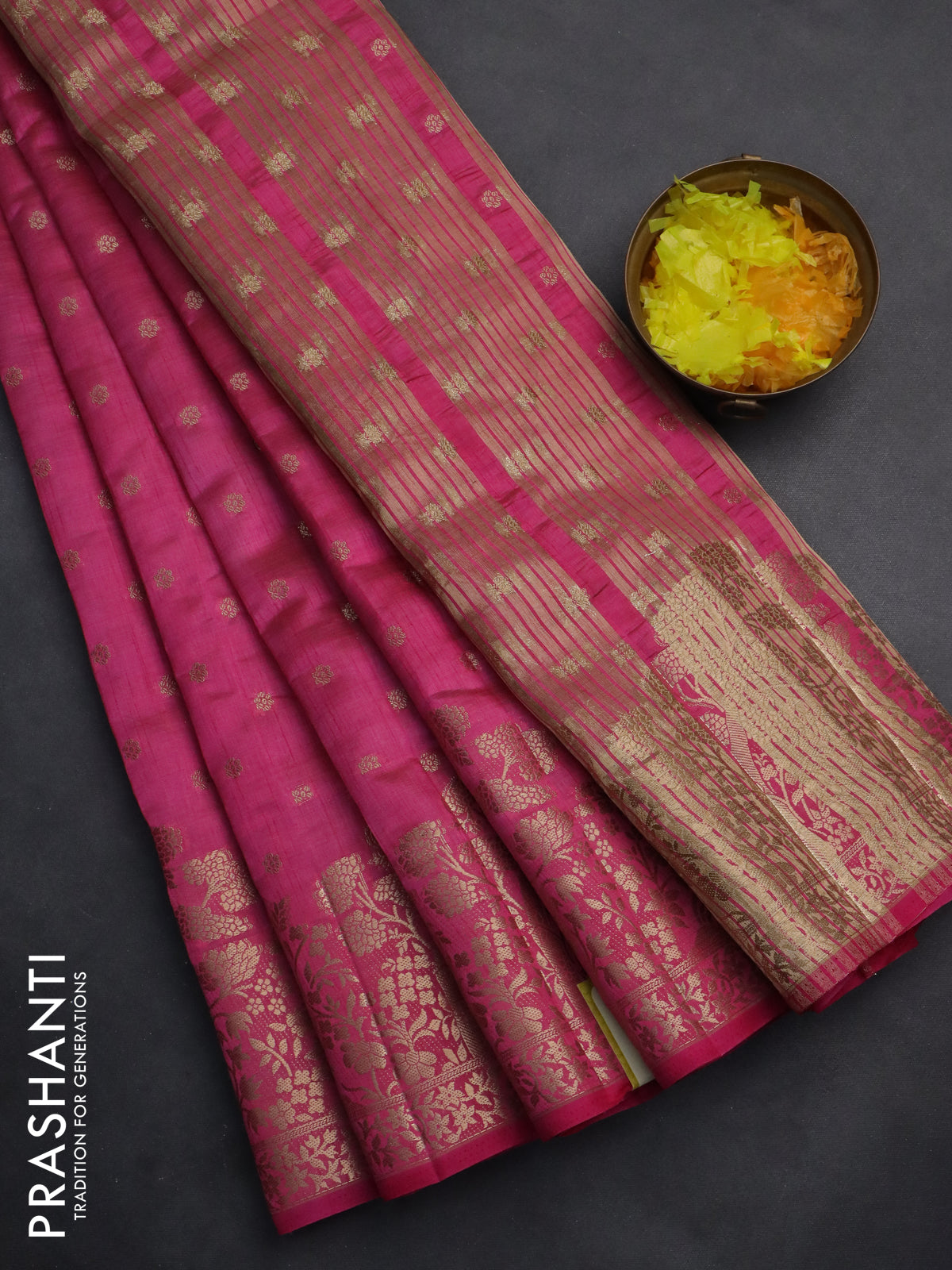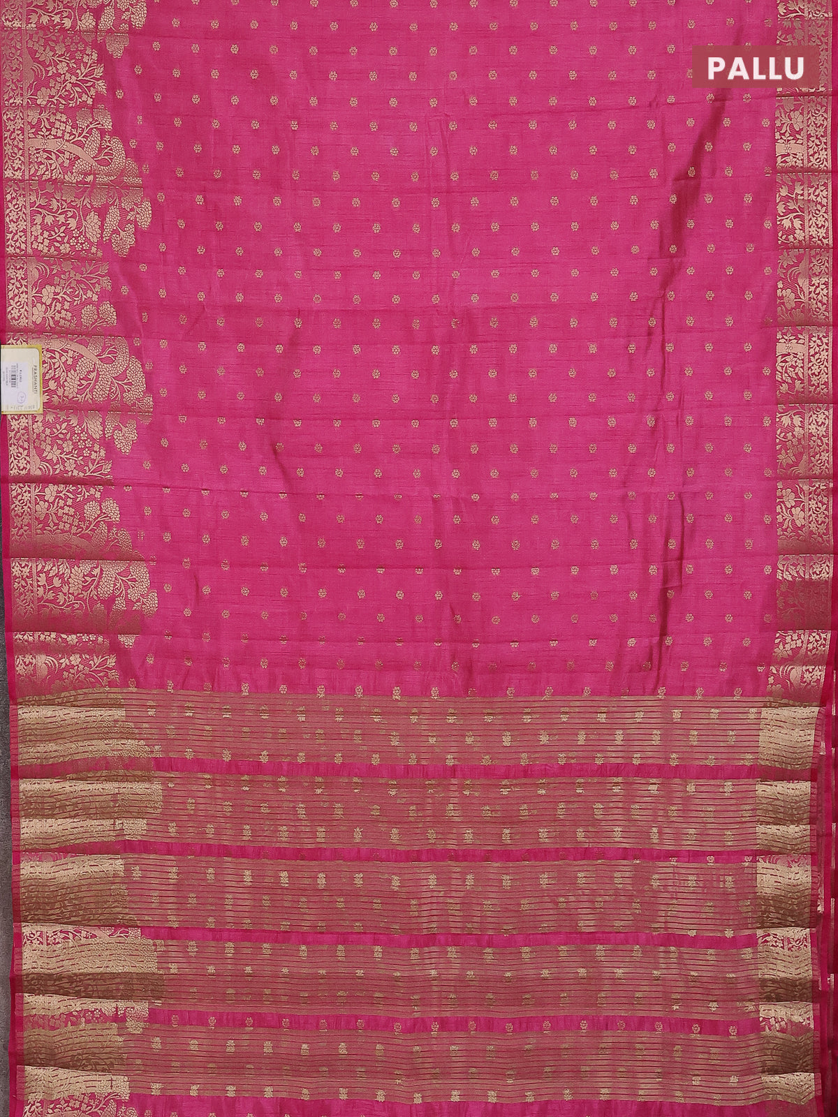 Semi raw silk saree pink with allover zari woven floral design 1000 buttas and rich zari woven border
