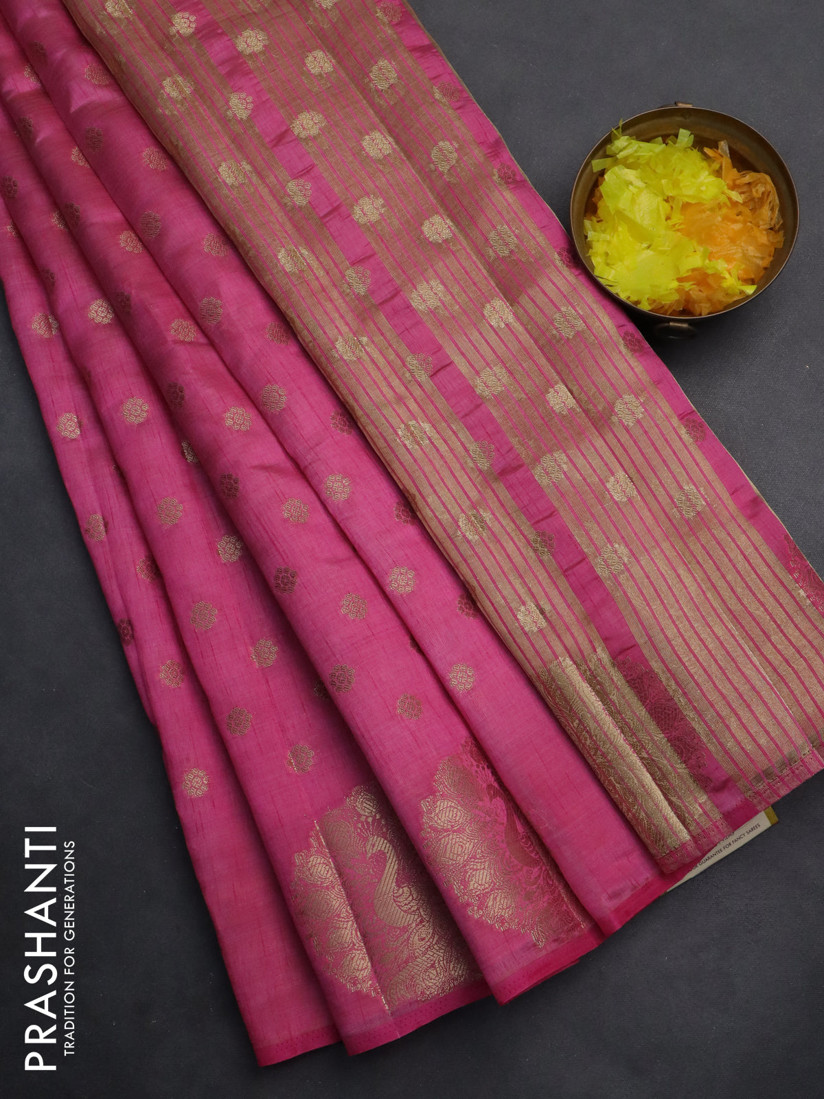 Semi raw silk saree pink with allover zari woven floral design 1000 buttas and zari woven butta border