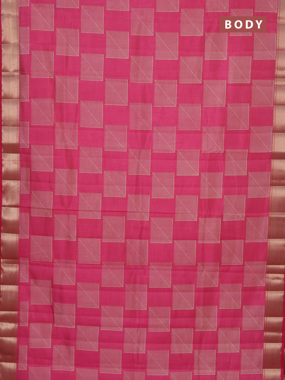 Semi raw silk saree pink with geometric prints and zari woven border