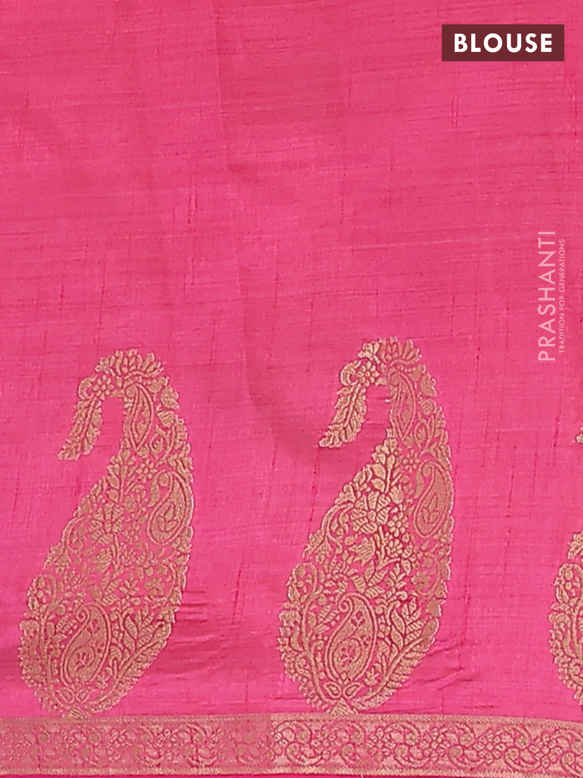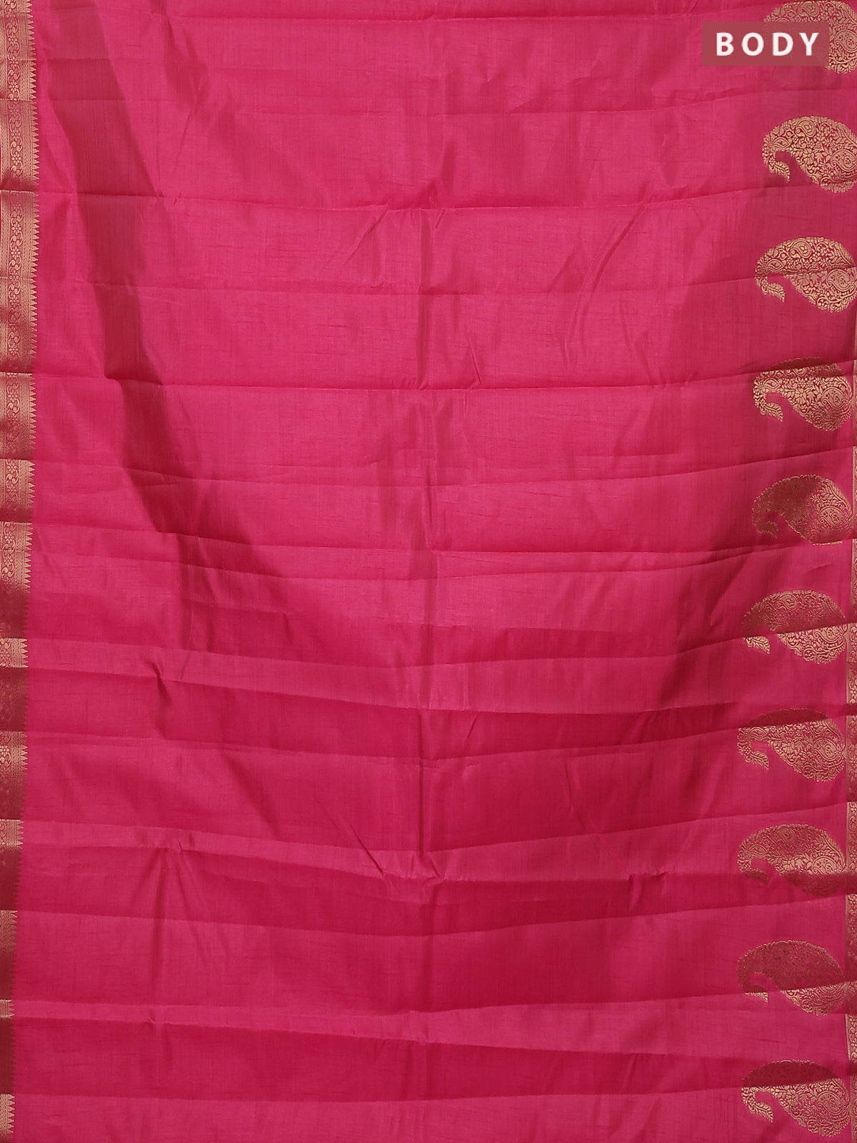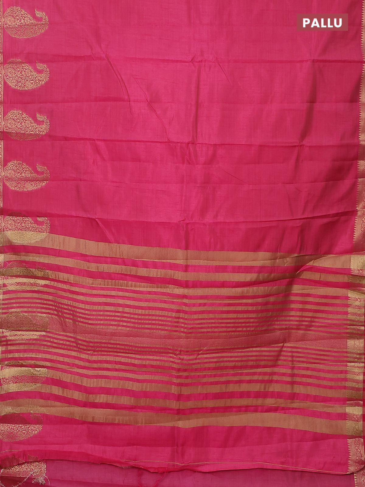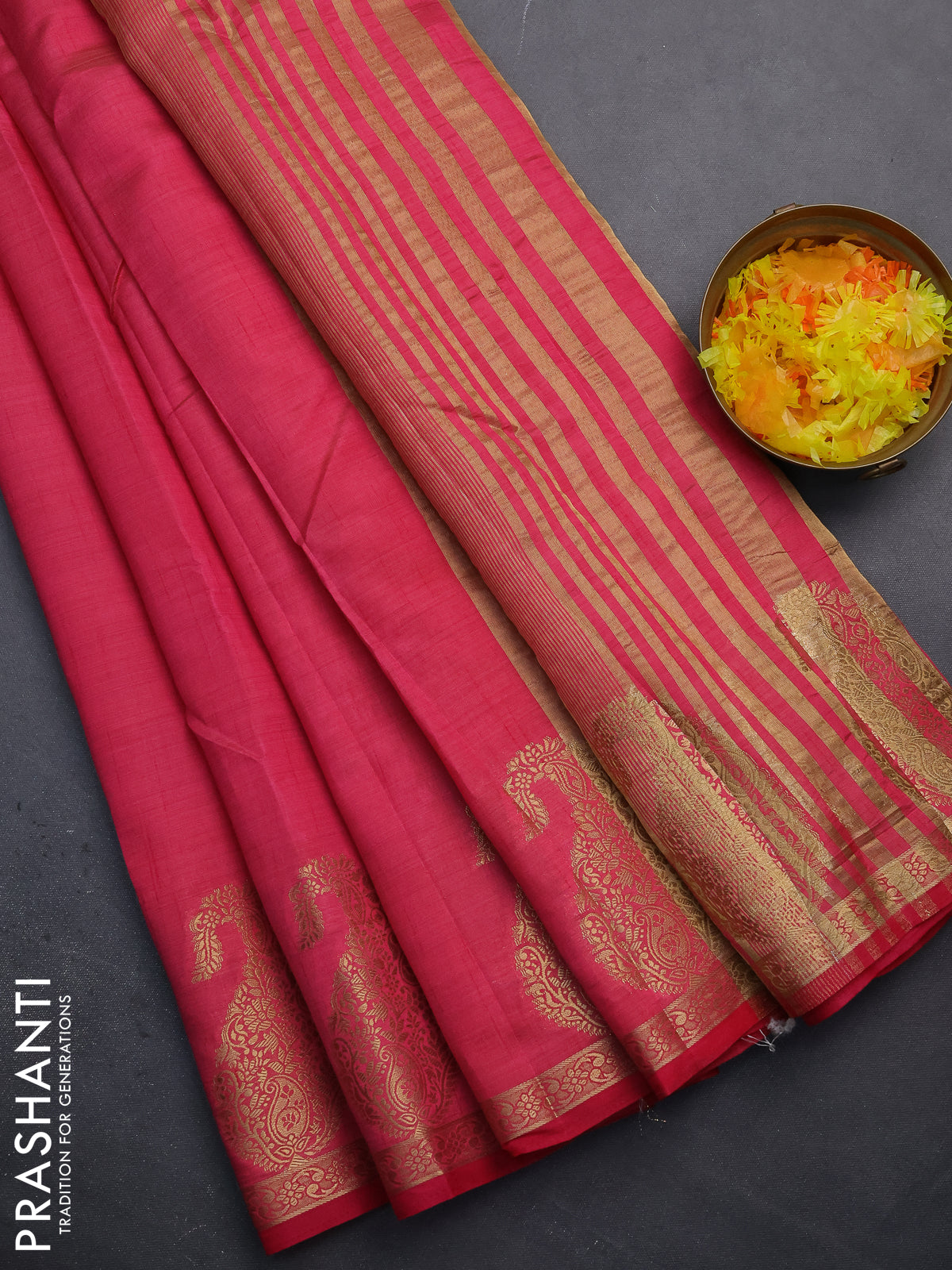 Semi raw silk saree pink with plain body and paisley design zari woven butta border