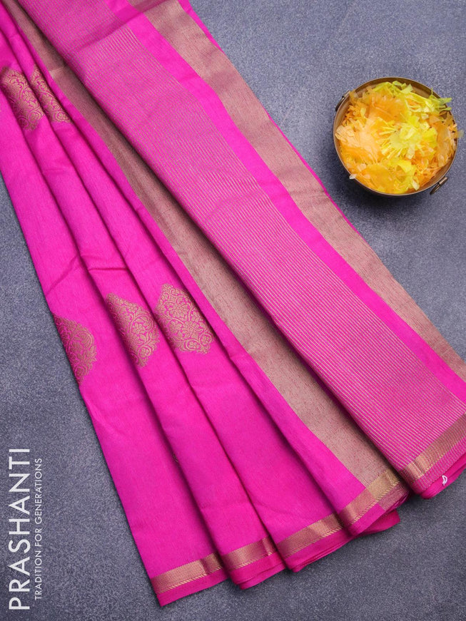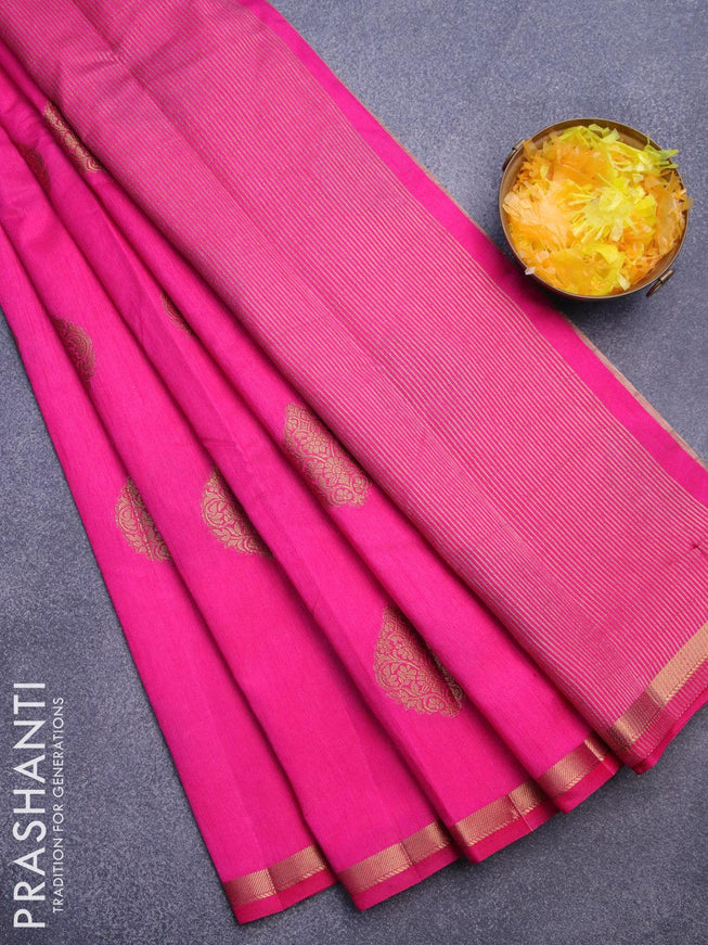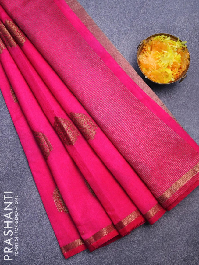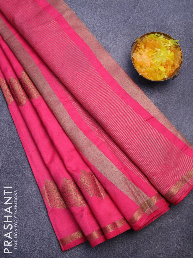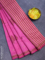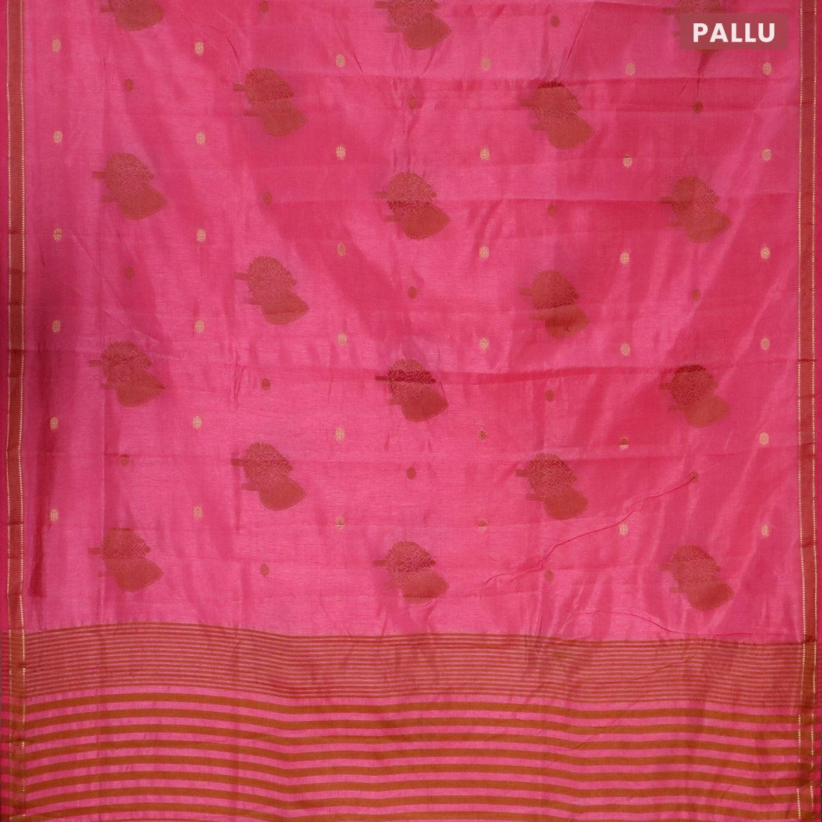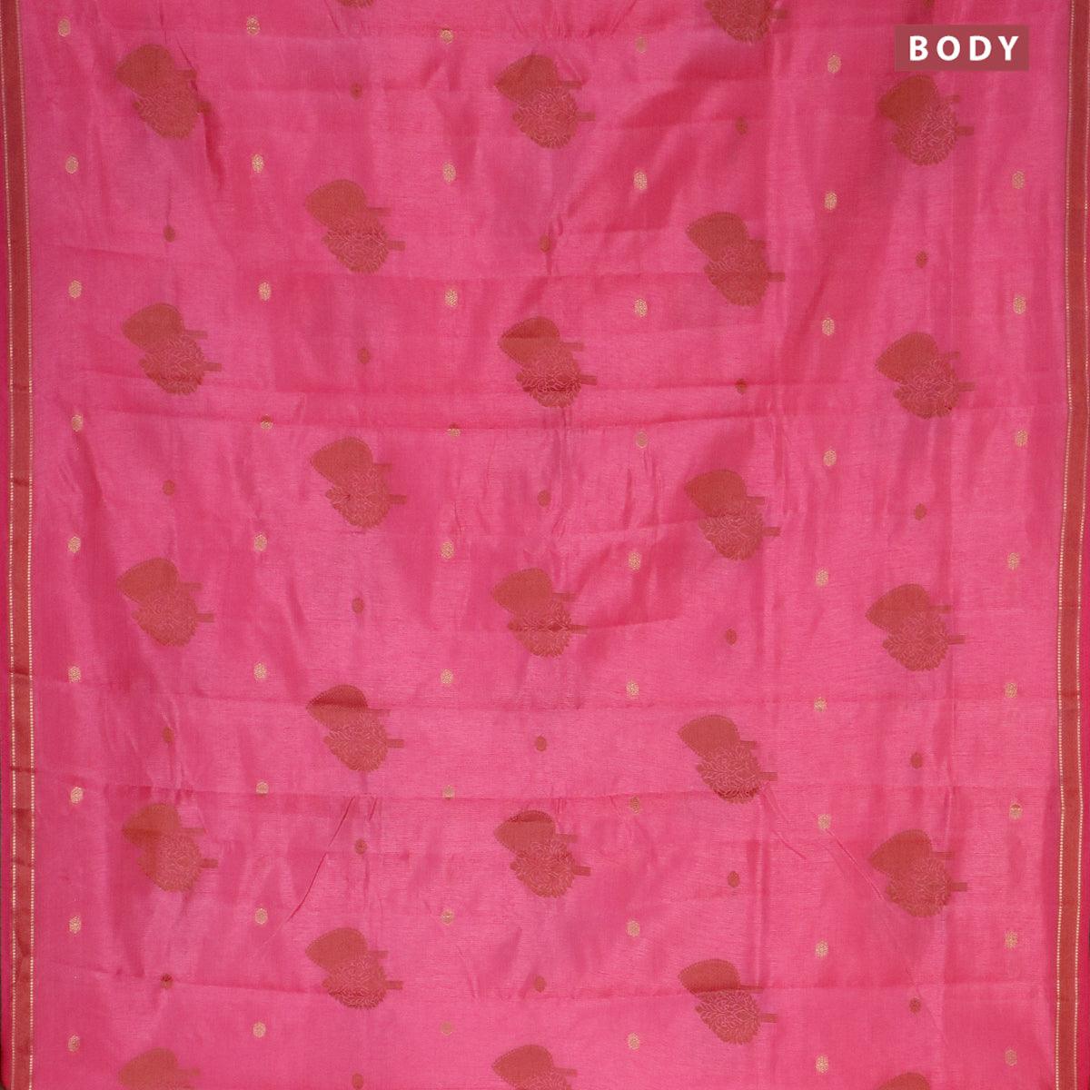 Semi raw silk saree pink with thread & zari woven buttas and small zari woven border