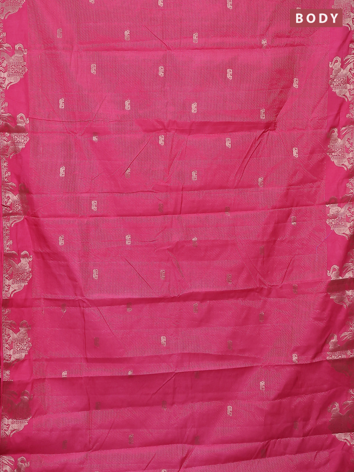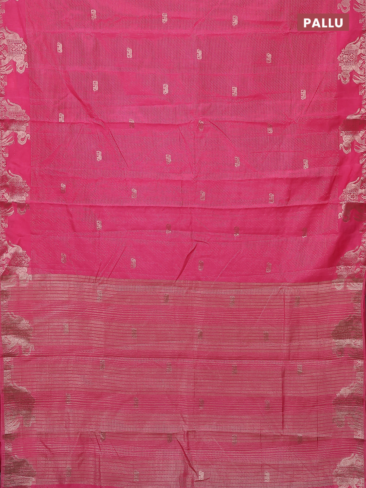 Semi raw silk saree pink with zari weaves & elephant buttas and elephant design zari woven border