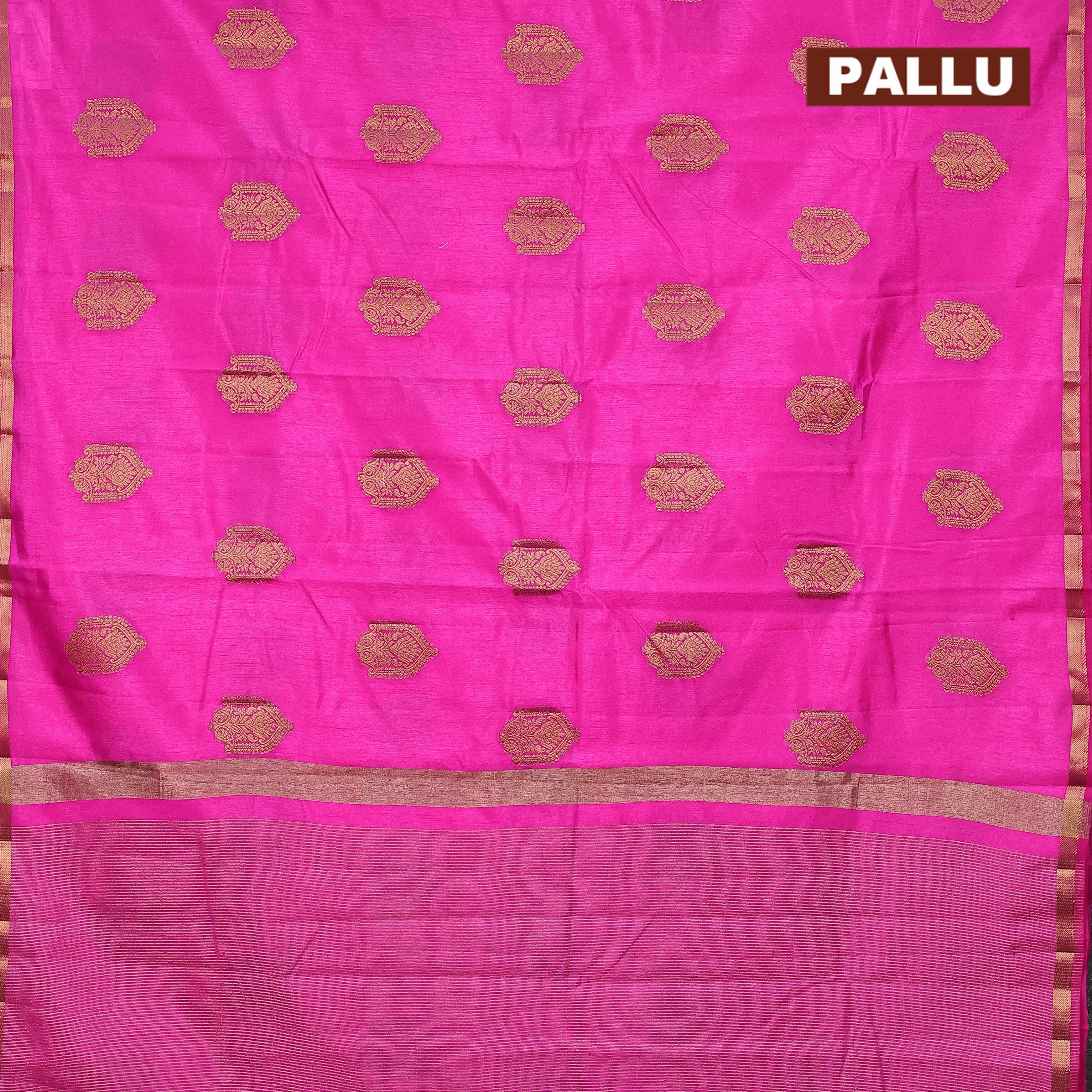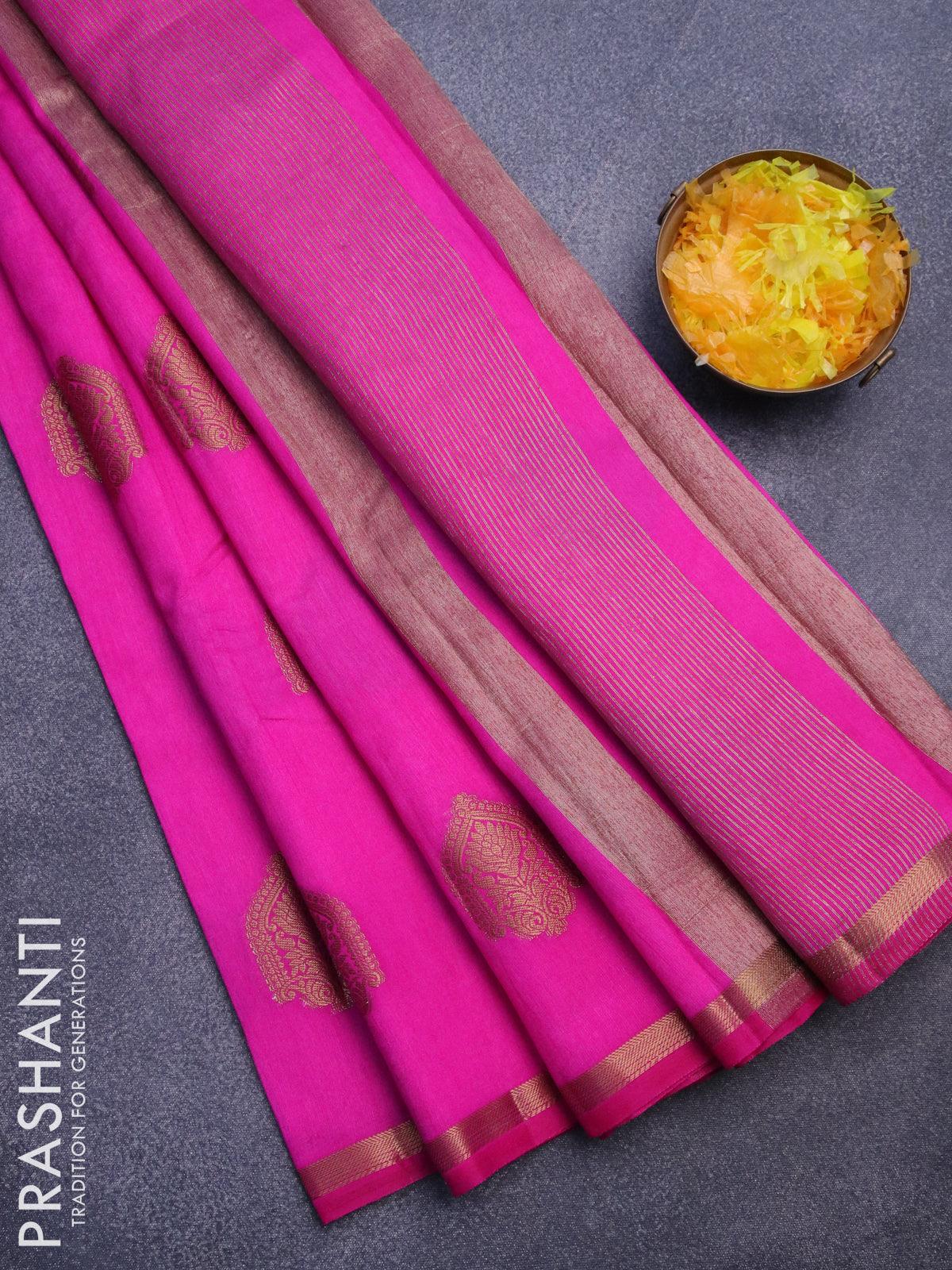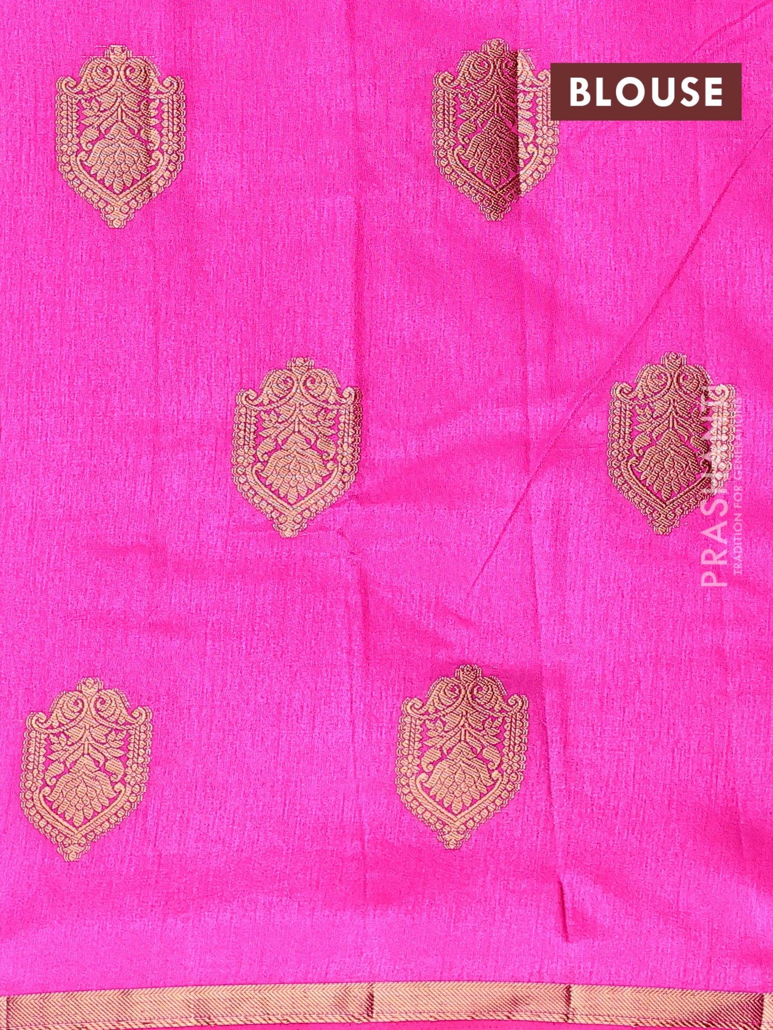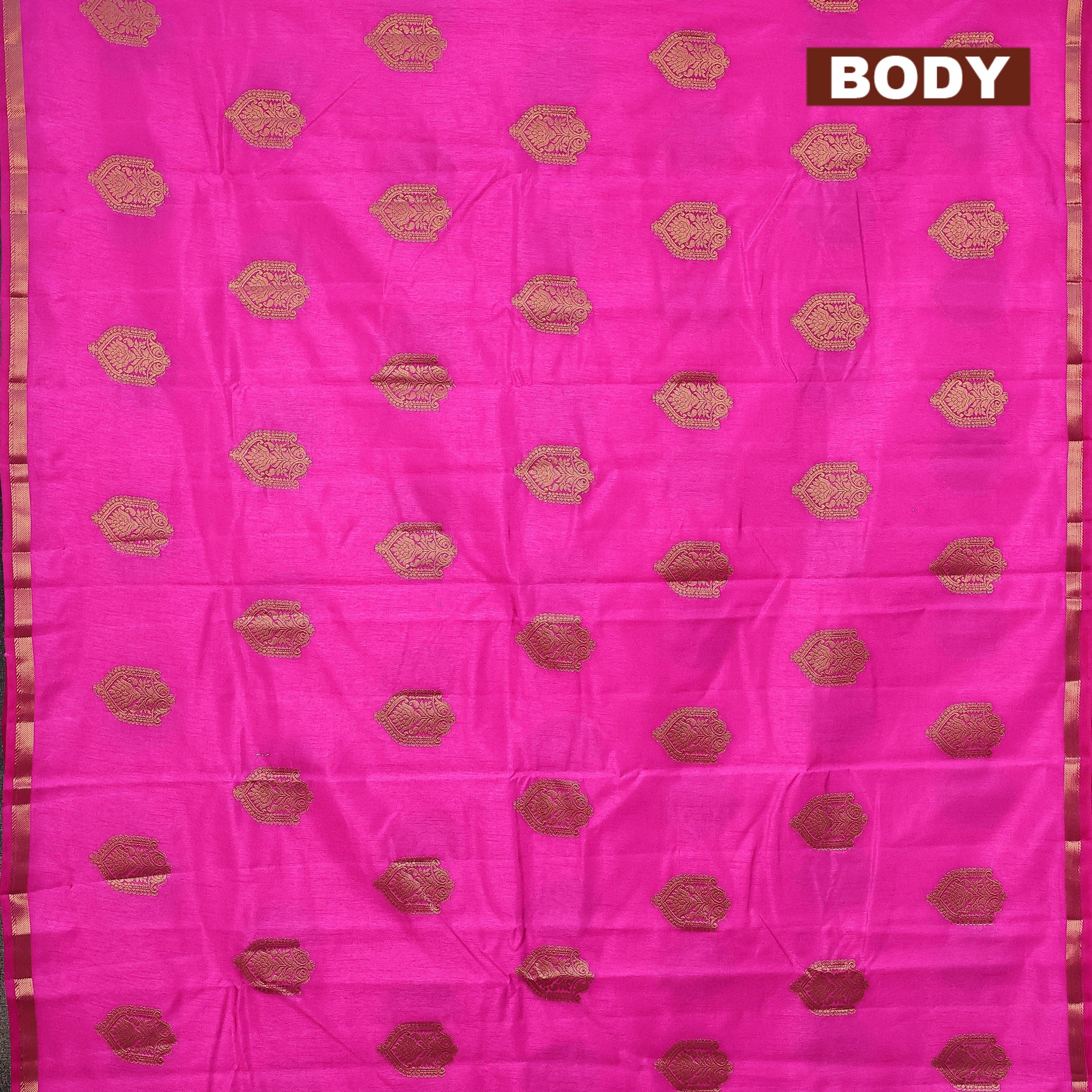 Semi raw silk saree pink with zari woven buttas and small zari woven border
