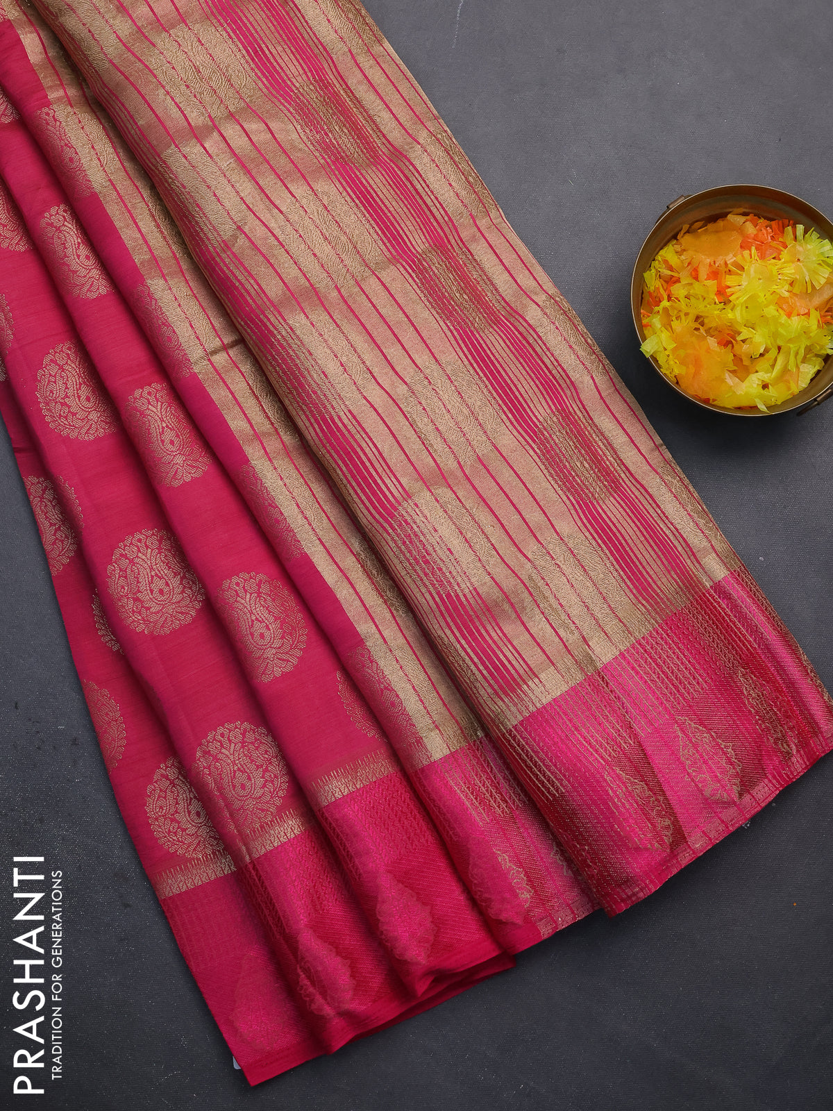 Semi raw silk saree pink with zari woven buttas and zari woven simple border
