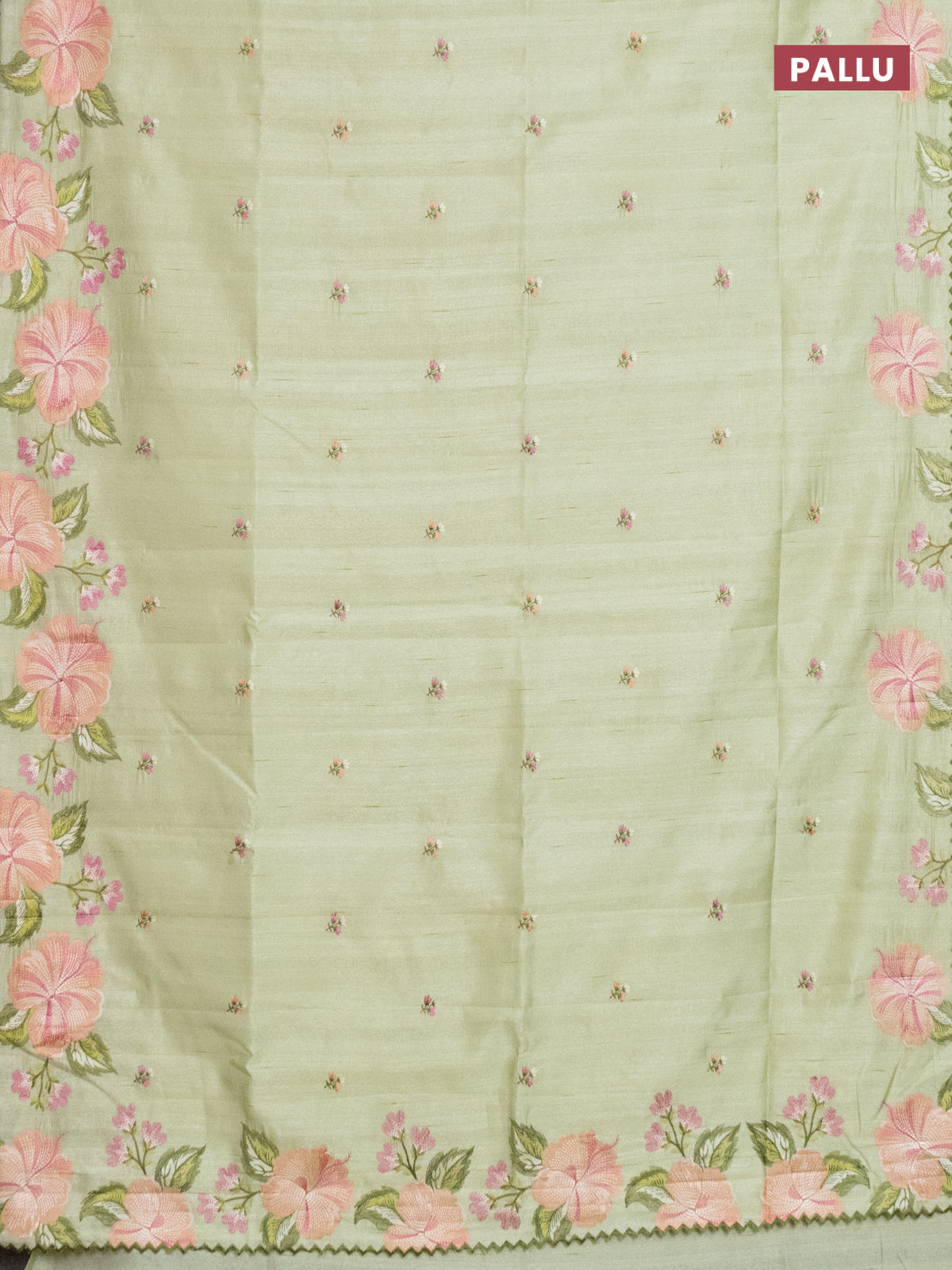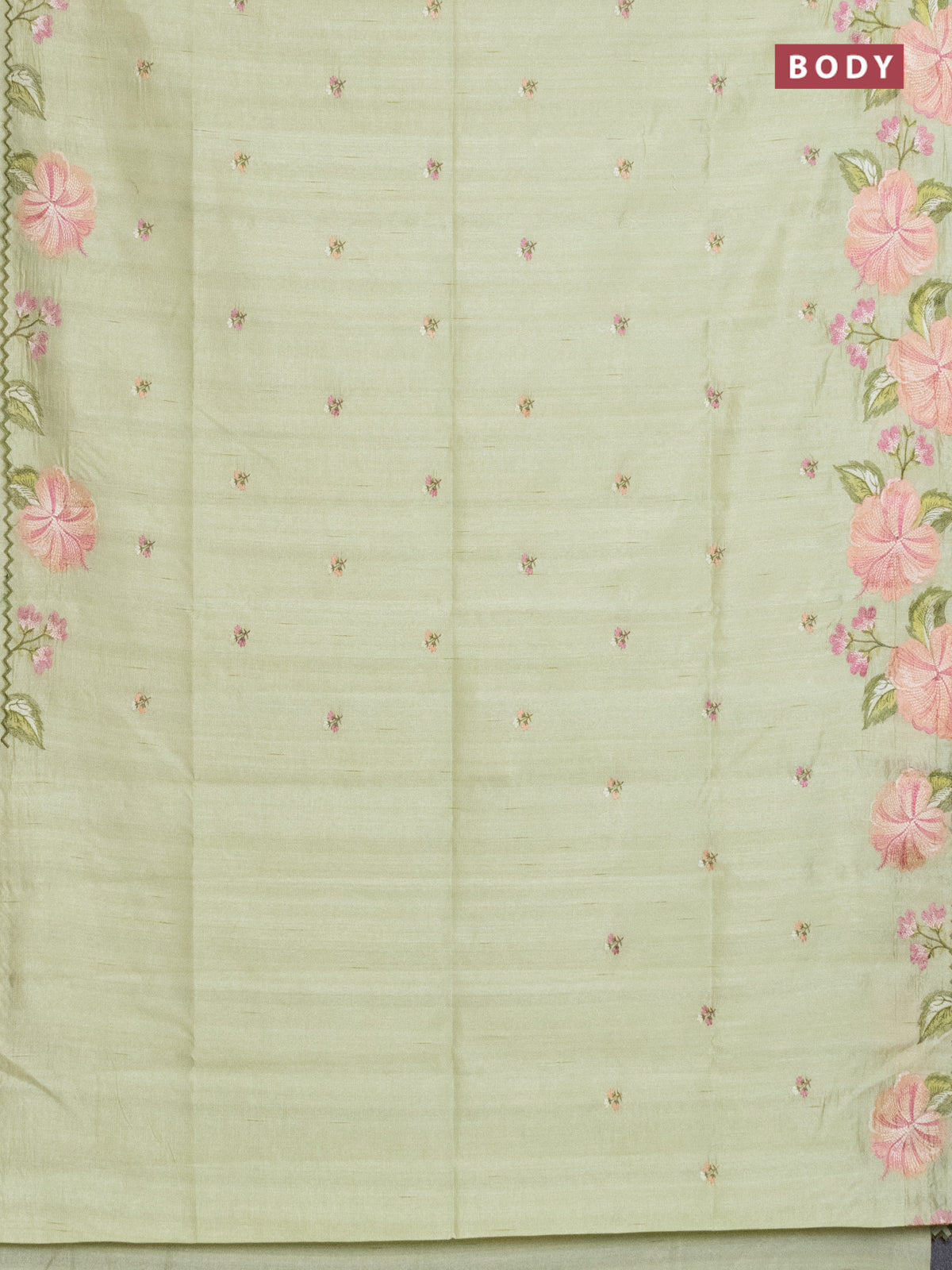 Semi raw silk saree pista green with embroidery work buttas and floral embroidery border
