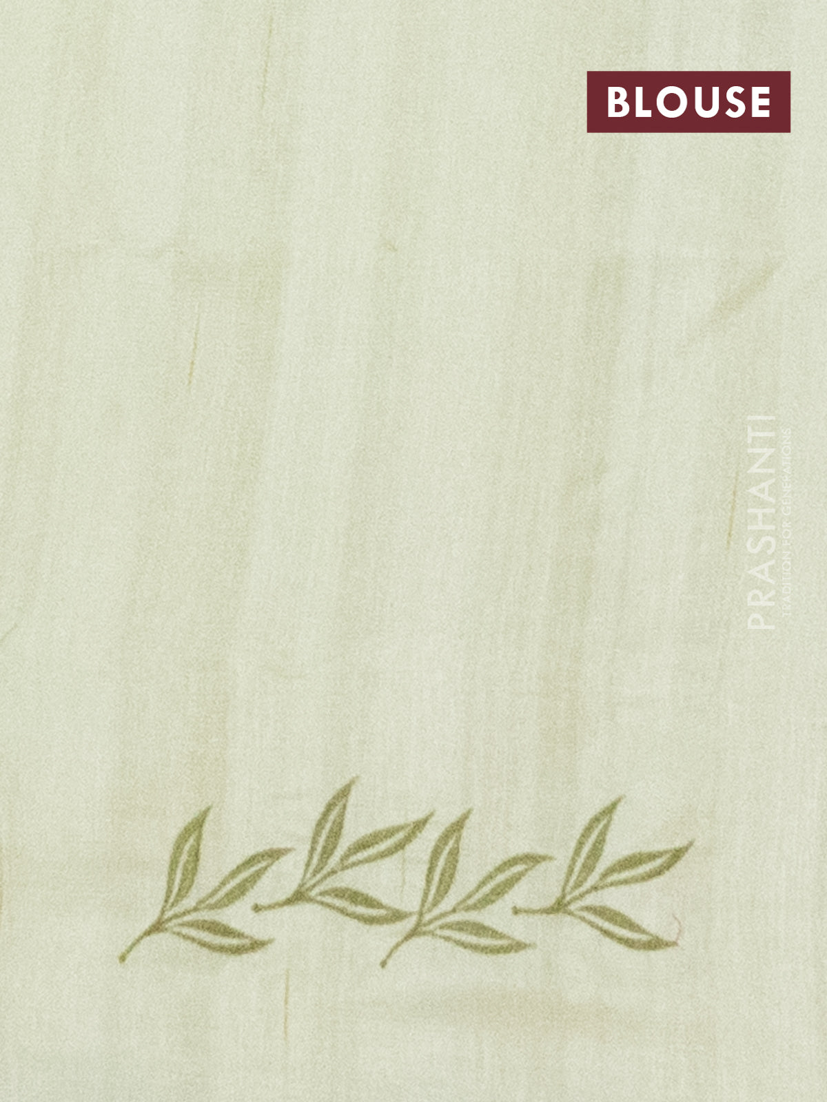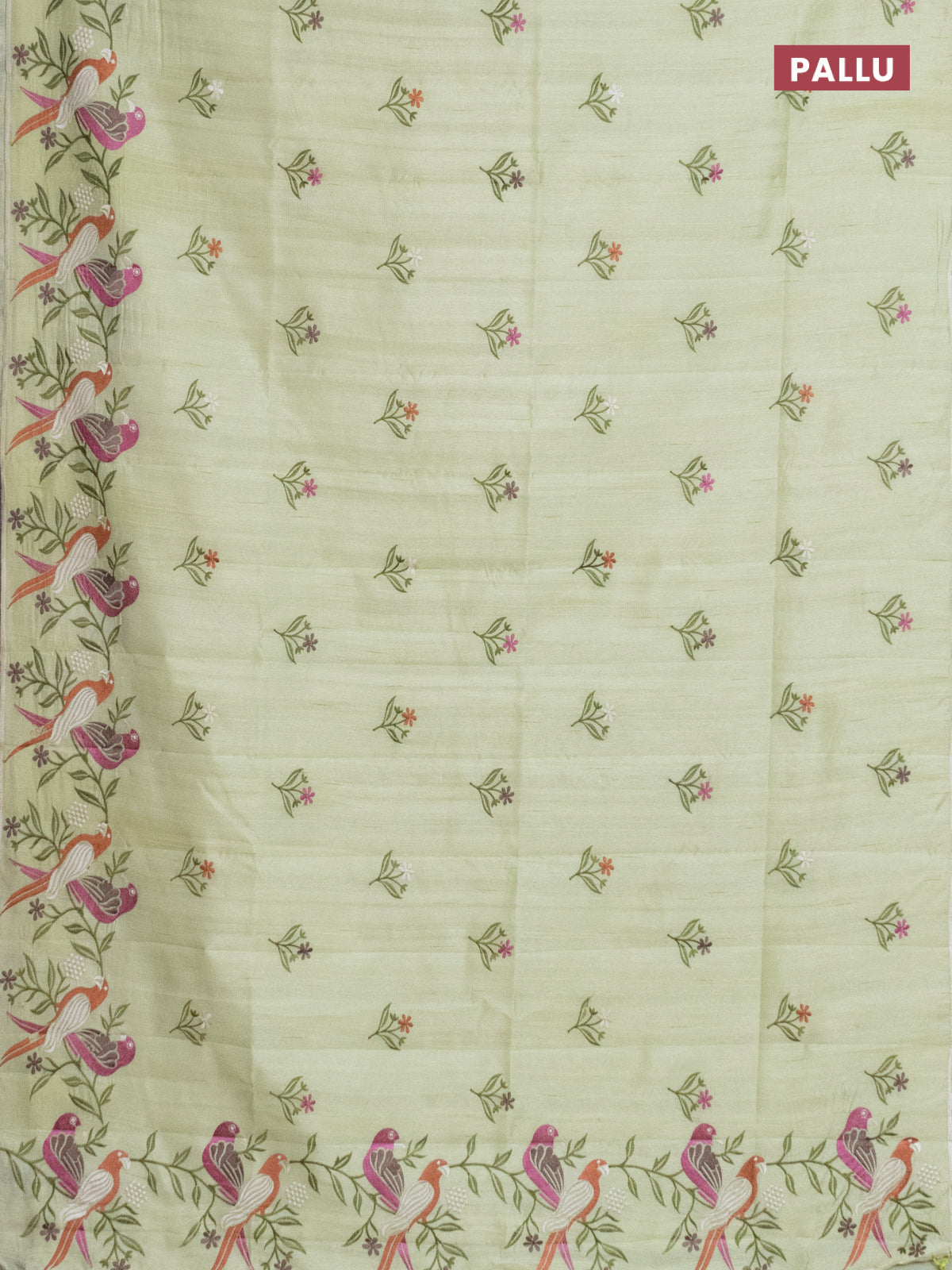 Semi raw silk saree pista green with embroidery work buttas and parrot design embroidery butta border