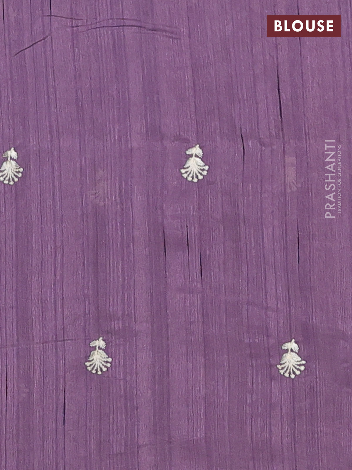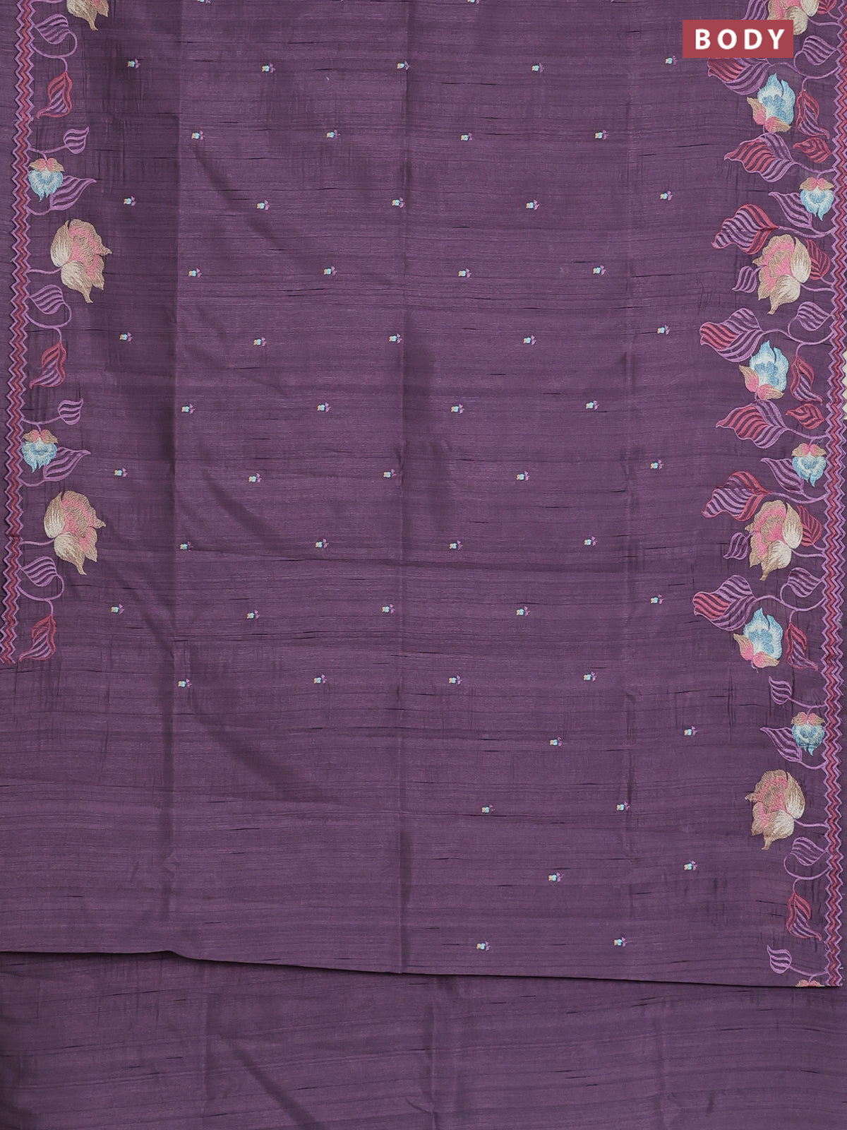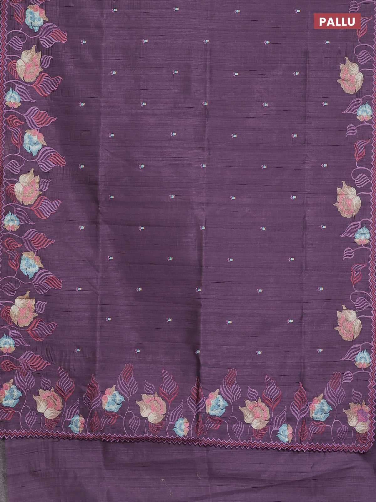 Semi raw silk saree purple shade with embroidery work buttas and floral embroidery border
