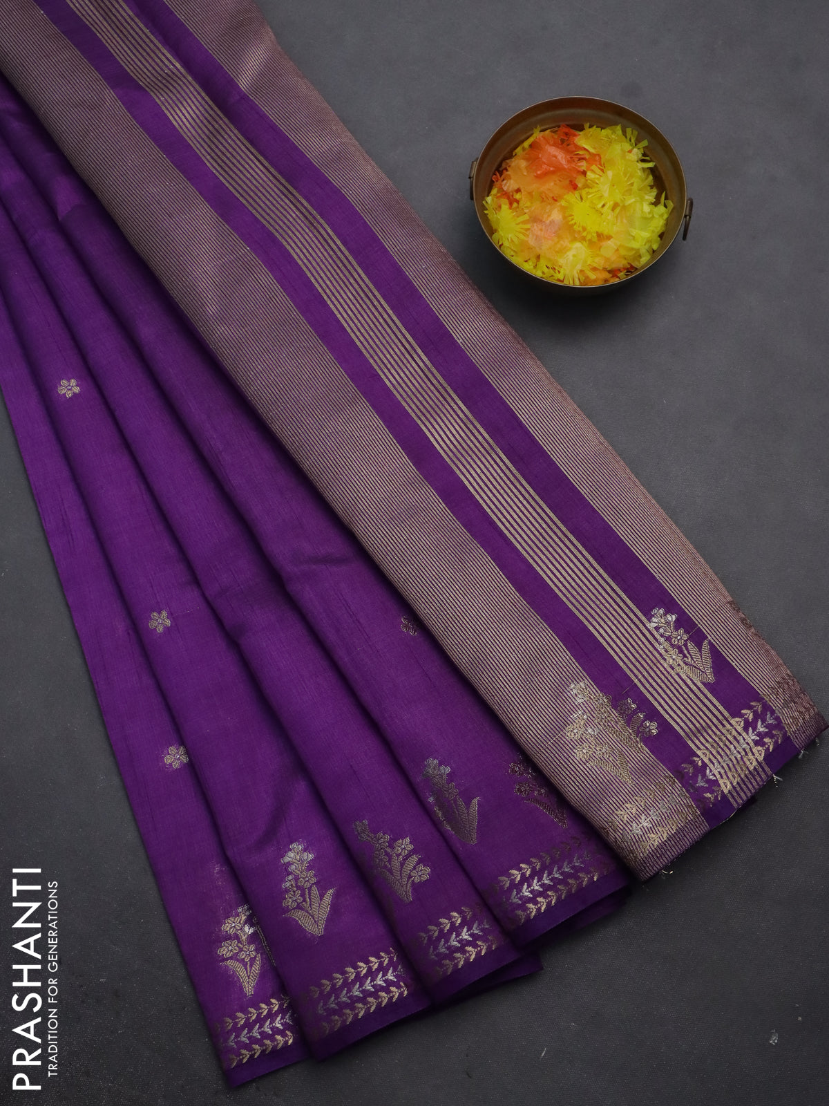 Semi raw silk saree purple with zari woven buttas and zari woven border