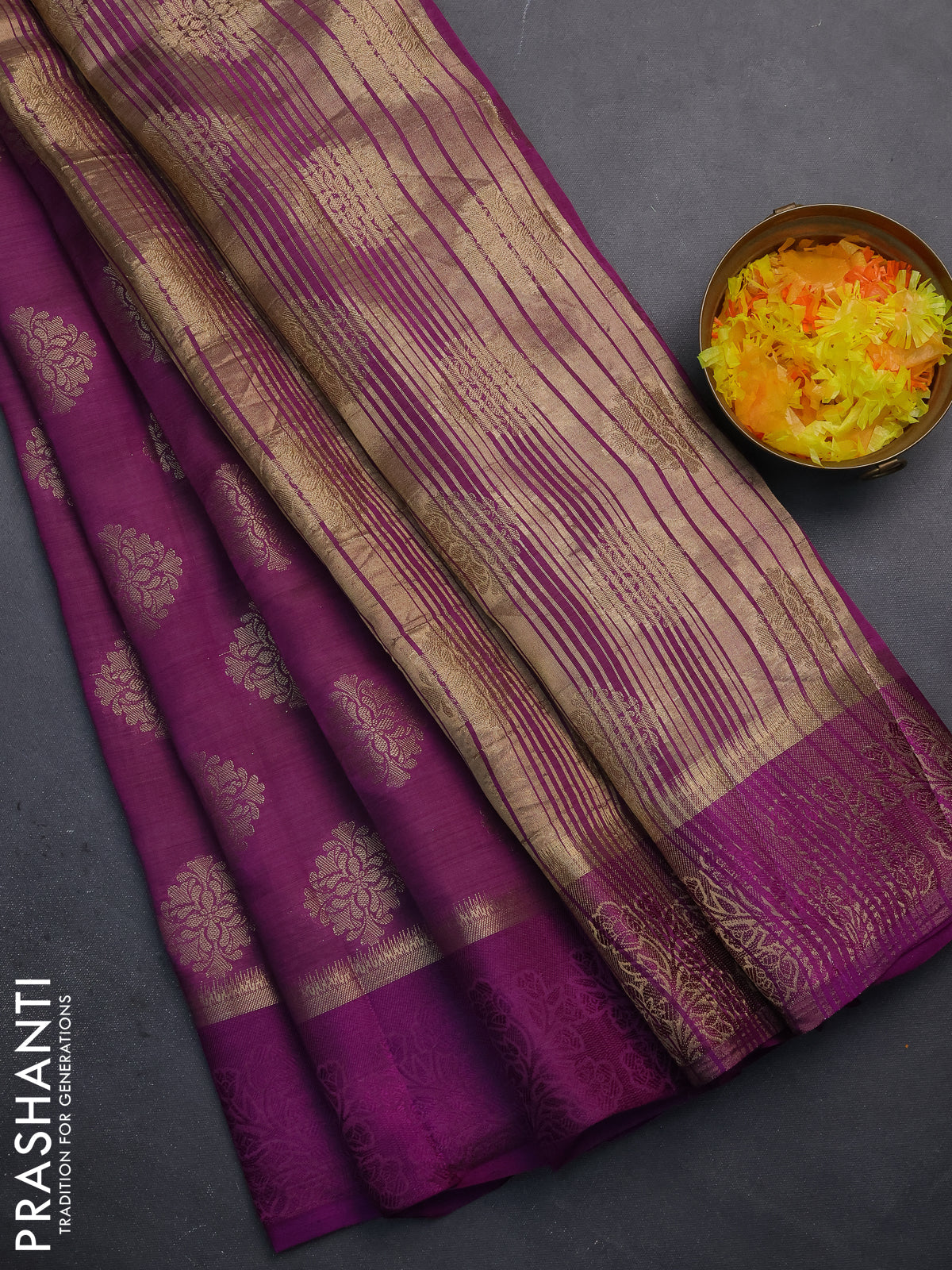 Semi raw silk saree purple with zari woven buttas and zari woven simple border